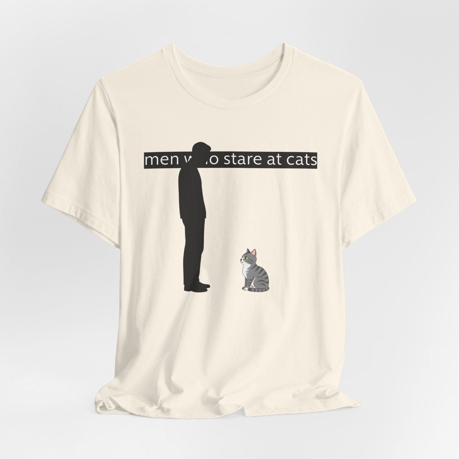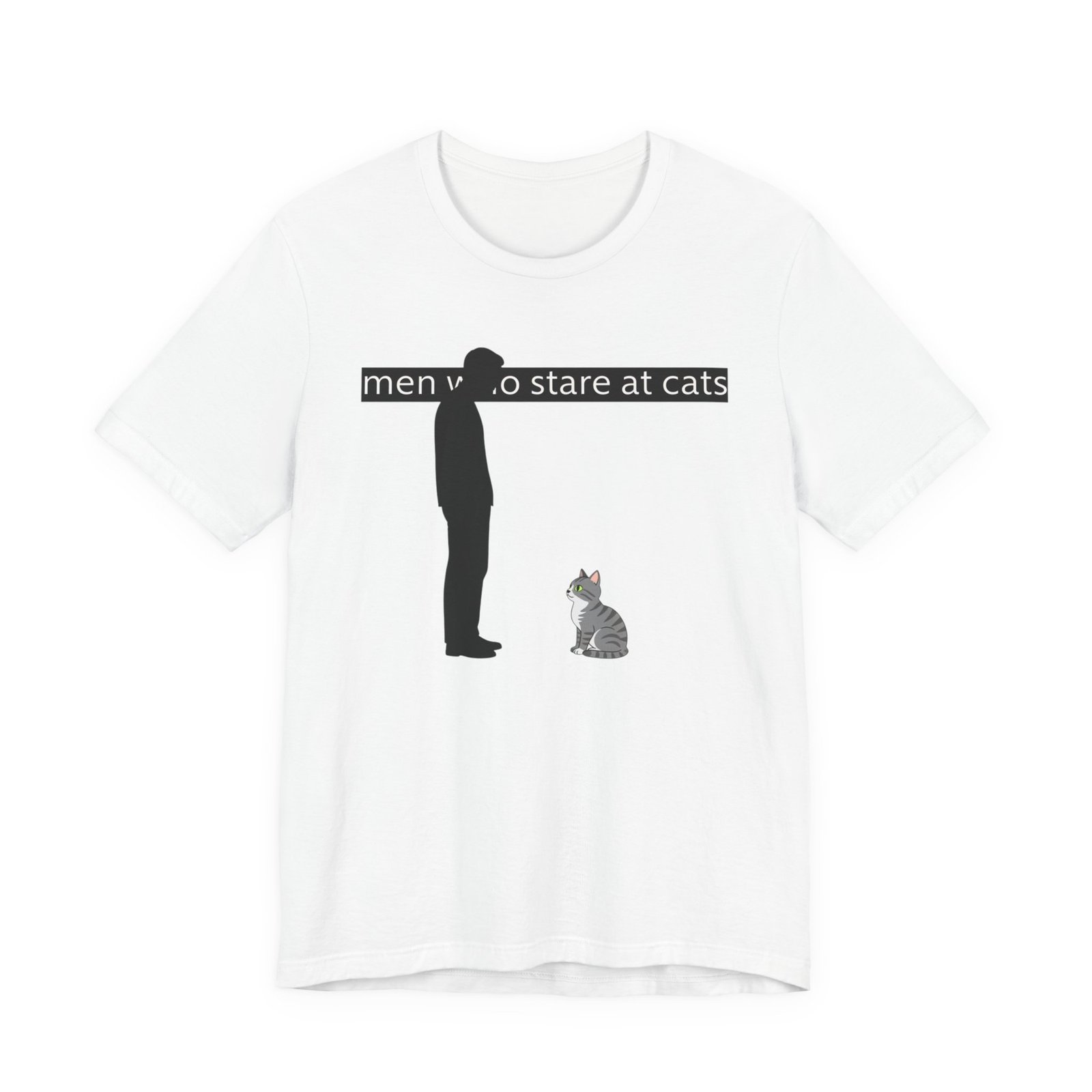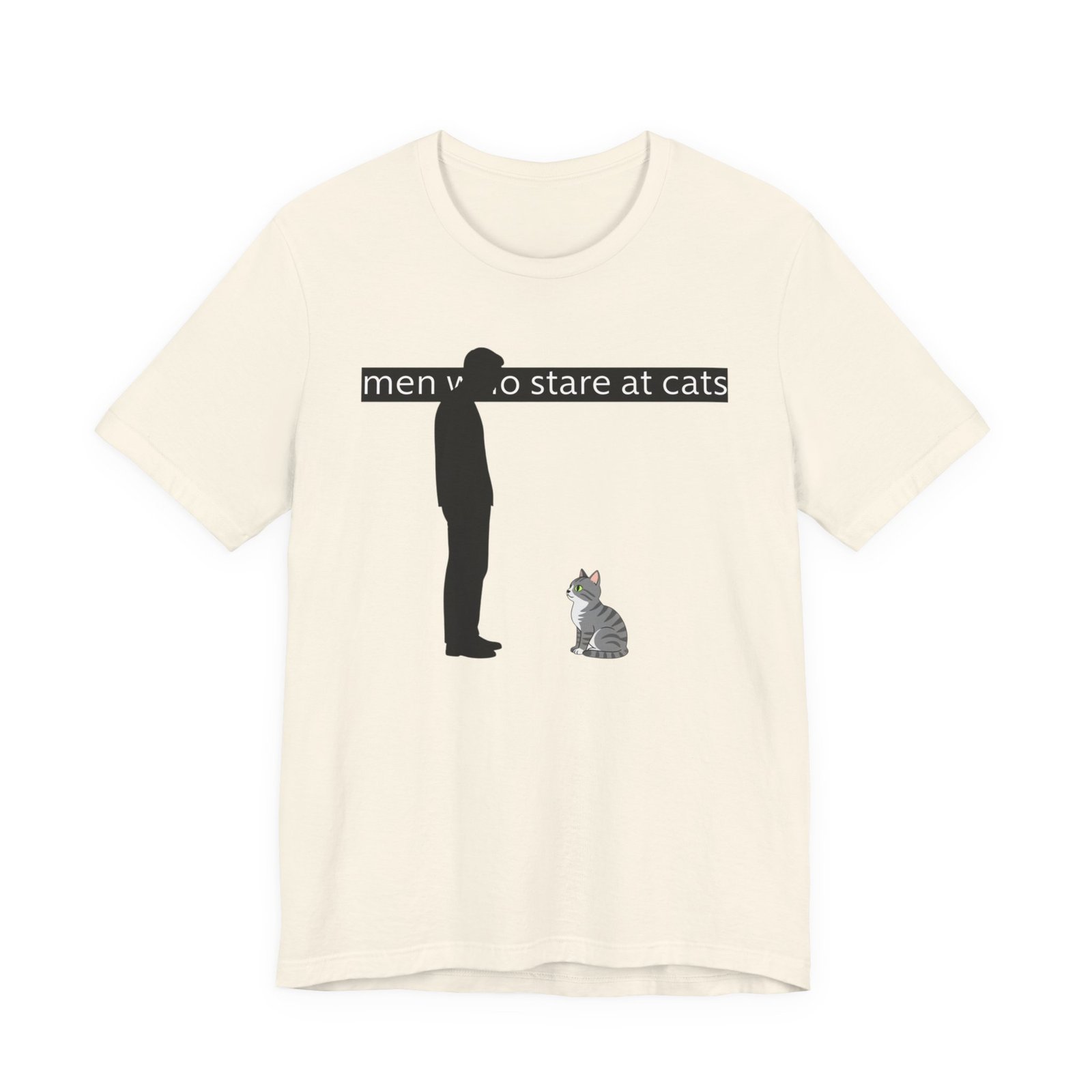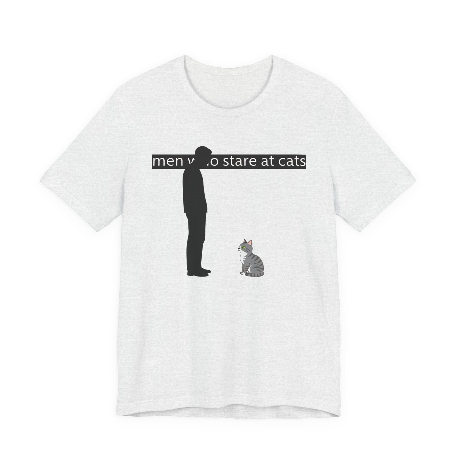A lightweight, everyday tee for people who find quiet joy in the small, strange moments—like standing nose-to-nose with a cat. The clean white canvas puts a simple, humorous illustration front and center: a silhouetted figure meeting the steady gaze of a seated kitty beneath a subtle caption. Breathable Airlume cotton keeps you cool while the retail crew neck and slim-but-comfortable cut make this shirt easy to layer or wear alone. It wears like a familiar friend during errands, lazy weekends, and low-key hangouts with fellow cat-lovers.