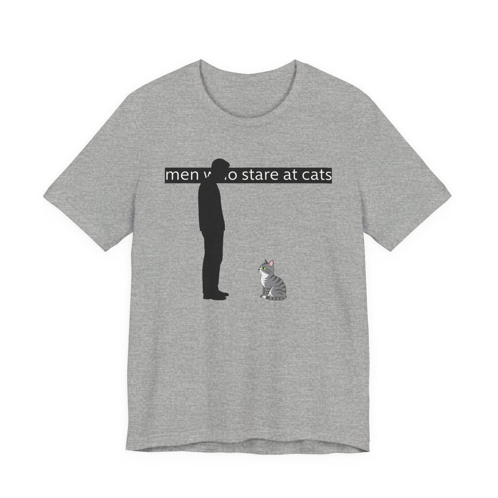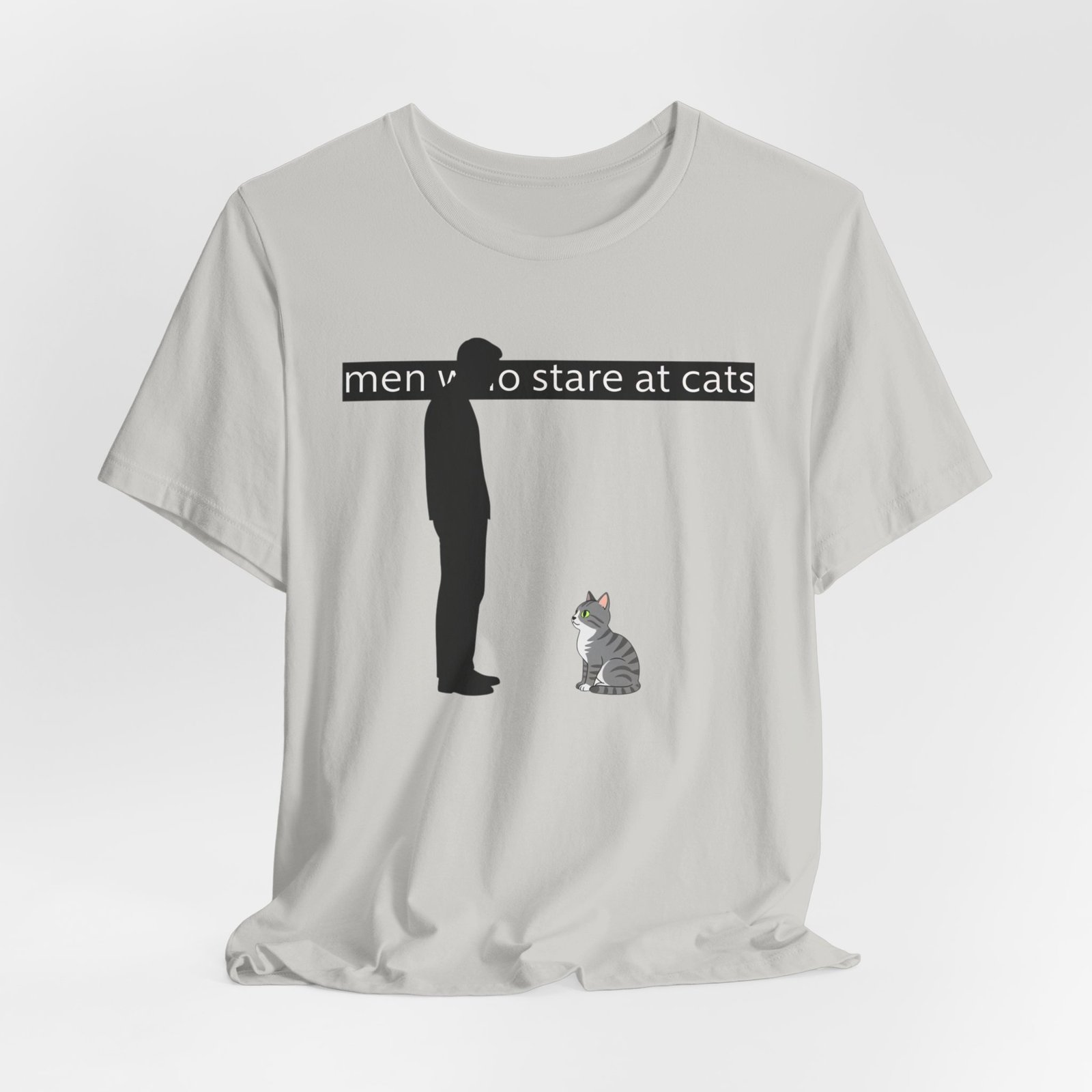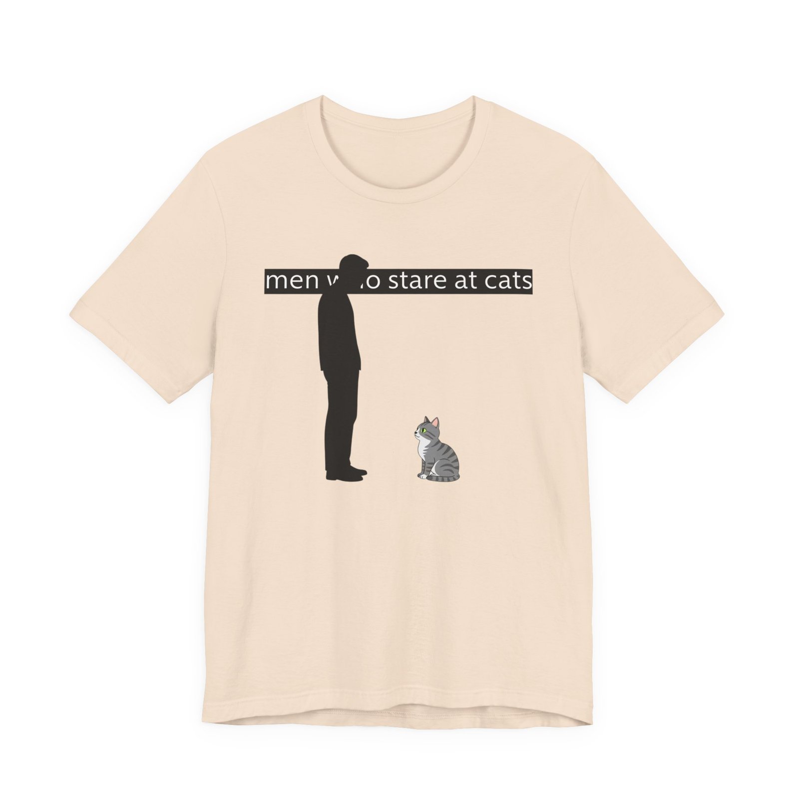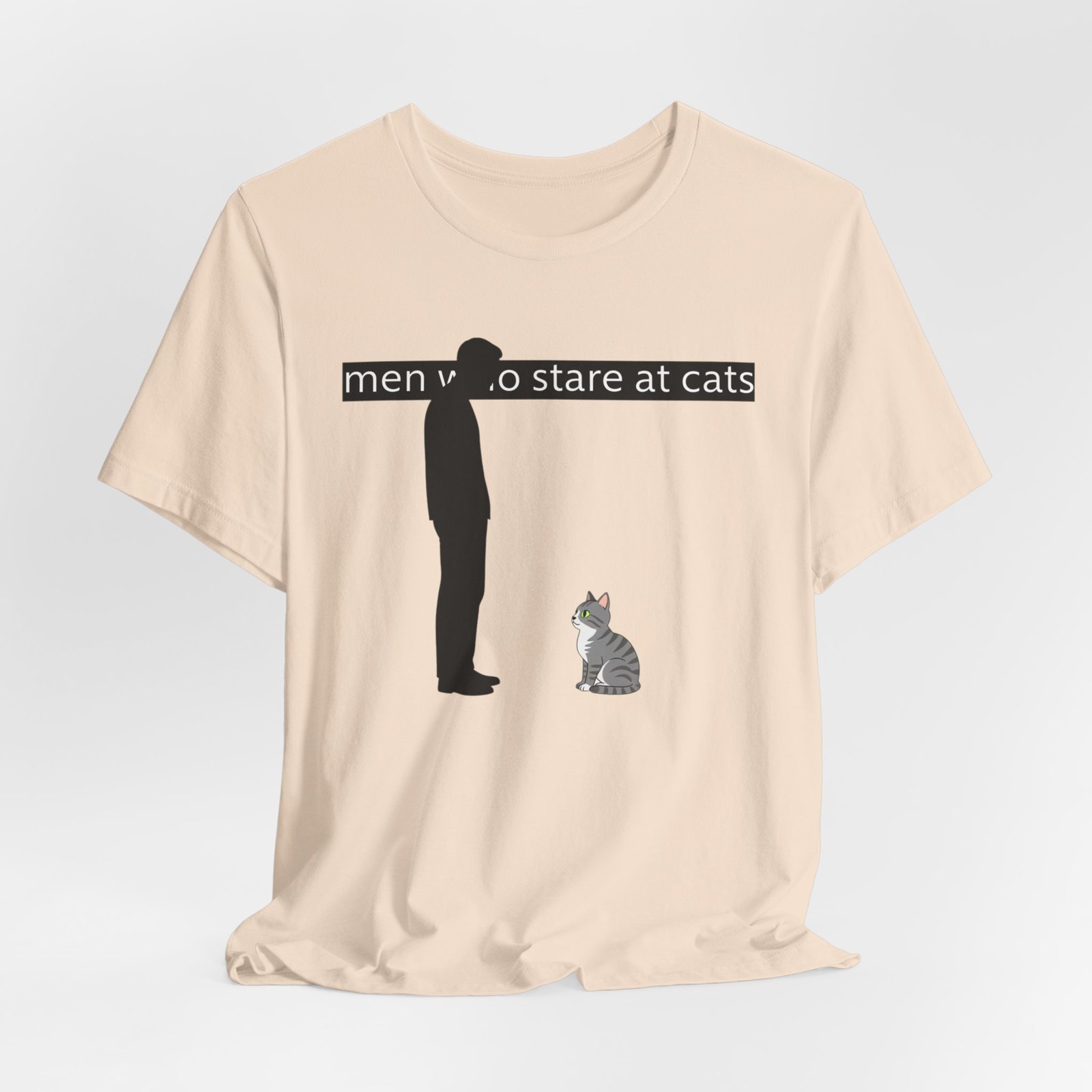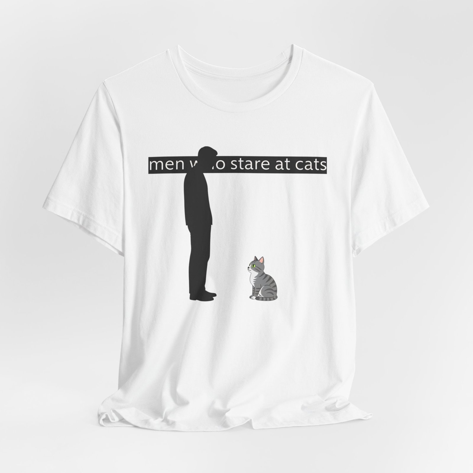 A lightweight, everyday tee for people who find quiet joy in the small, strange moments—like standing nose-to-nose with a cat. The clean white canvas puts a simple, humorous illustration front and center: a silhouetted figure meeting the steady gaze of a seated kitty beneath a subtle caption. Breathable Airlume cotton keeps you cool while the retail crew neck and slim-but-comfortable cut make this shirt easy to layer or wear alone. It wears like a familiar friend during errands, lazy weekends, and low-key hangouts with fellow cat-lovers.