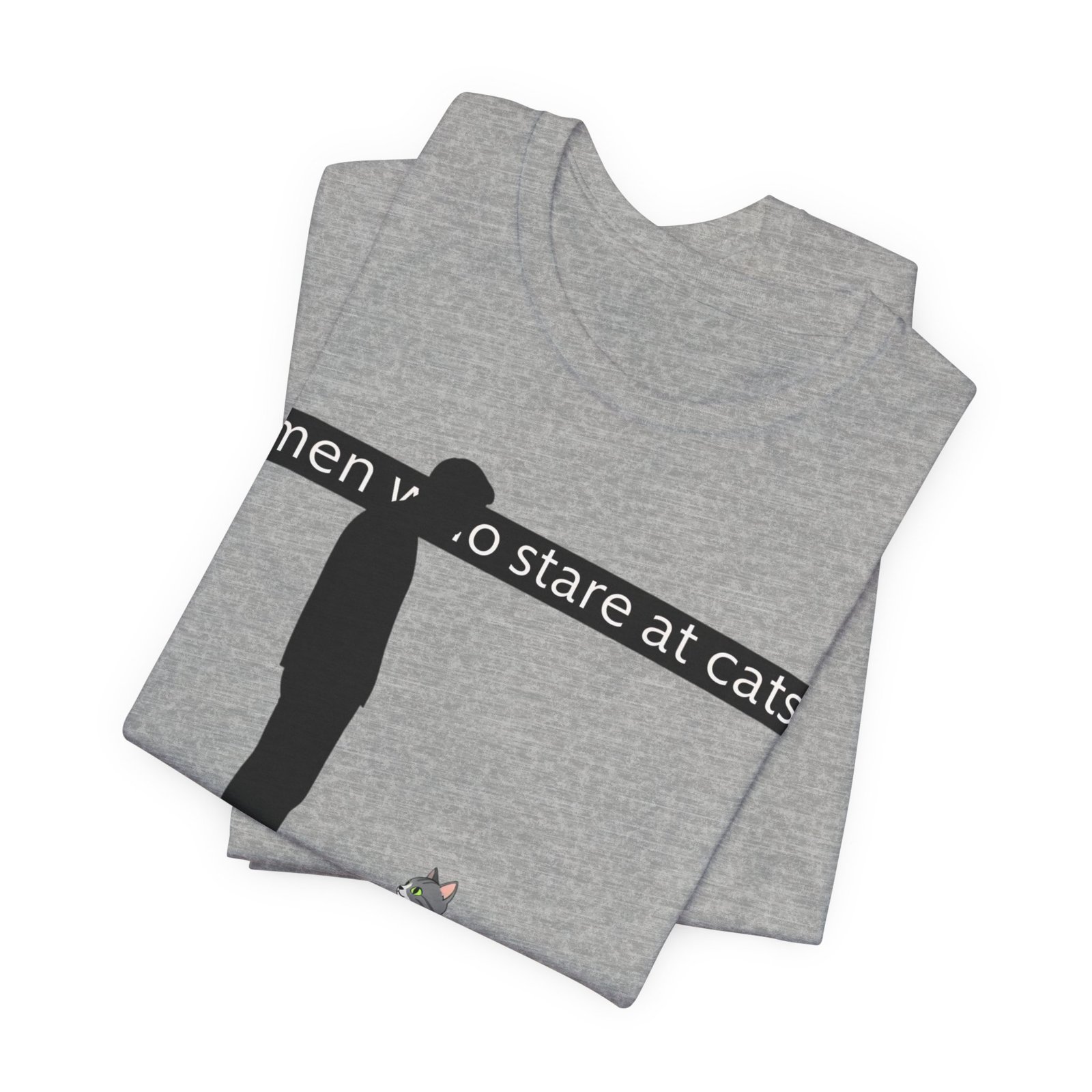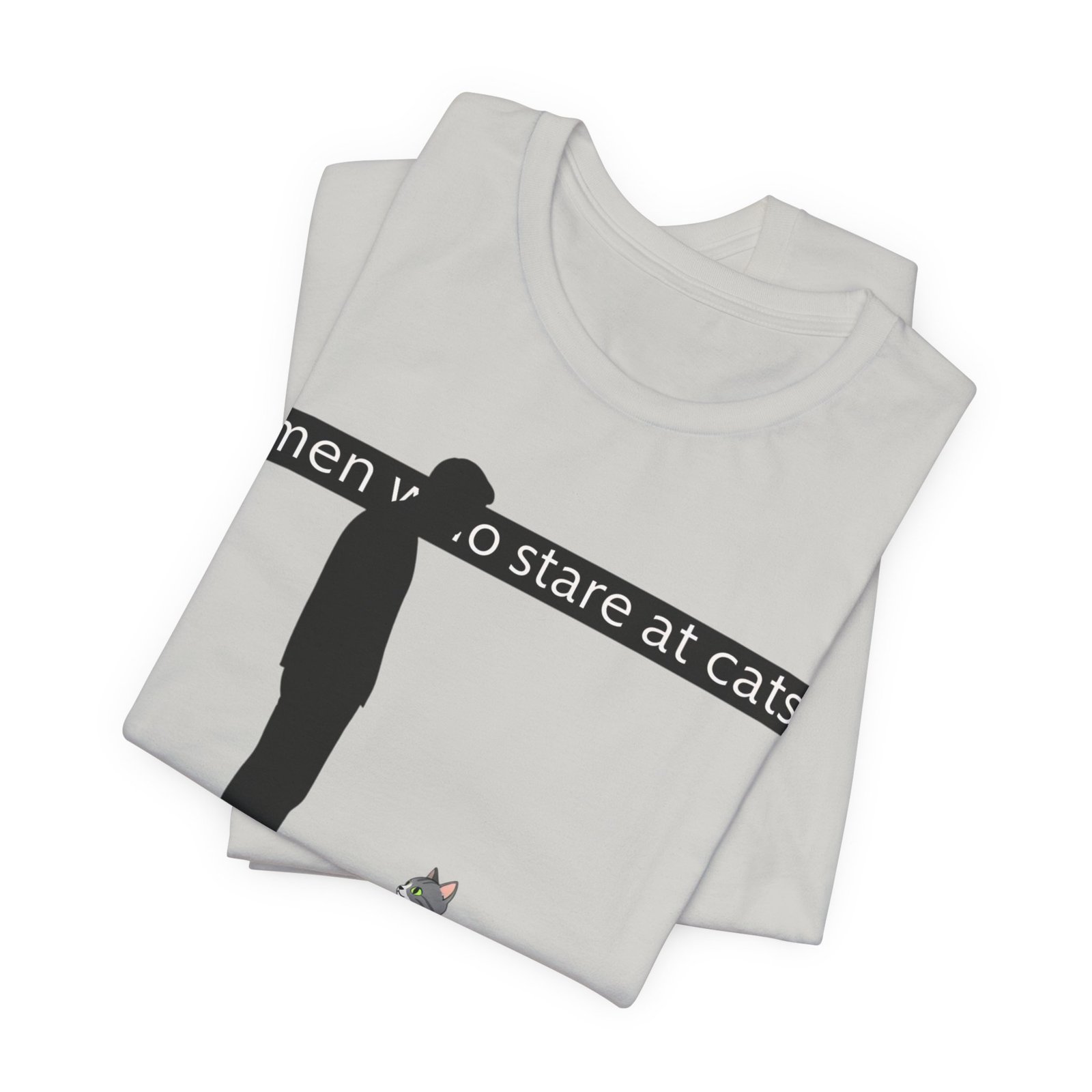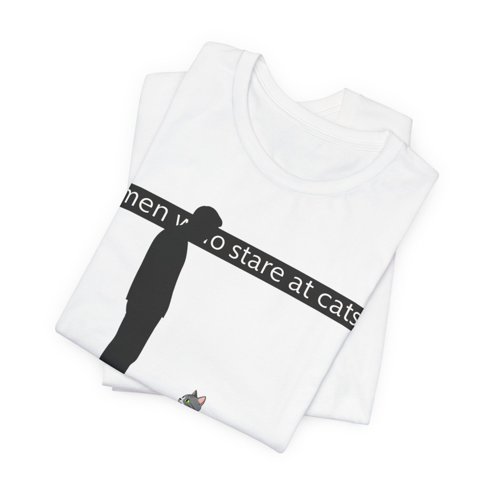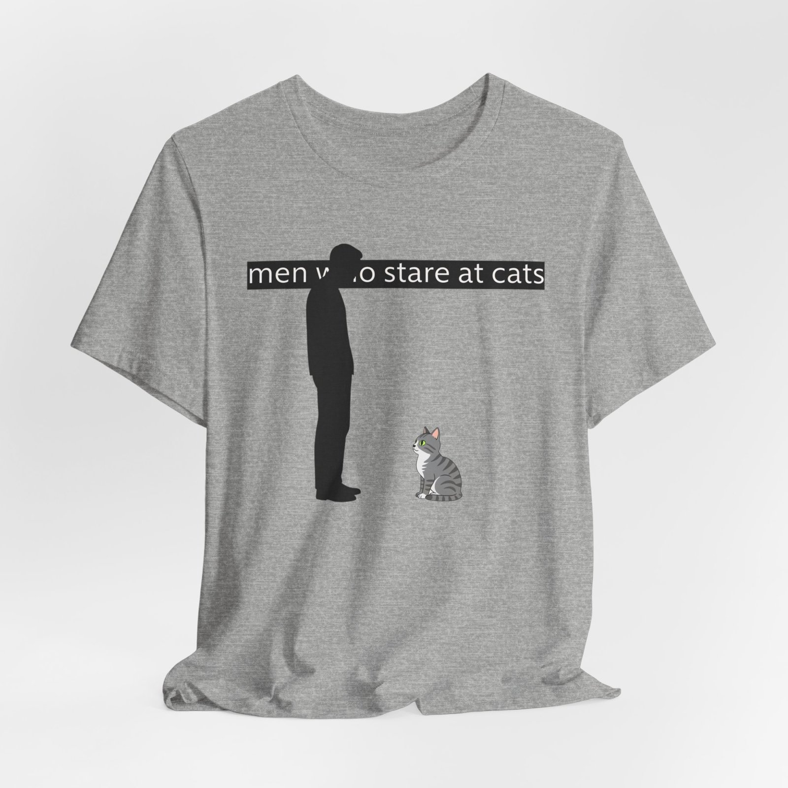 A lightweight, everyday tee for people who find quiet joy in the small, strange moments—like standing nose-to-nose with a cat. The clean white canvas puts a simple, humorous illustration front and center: a silhouetted figure meeting the steady gaze of a seated kitty beneath a subtle caption. Breathable Airlume cotton keeps you cool while the retail crew neck and slim-but-comfortable cut make this shirt easy to layer or wear alone. It wears like a familiar friend during errands, lazy weekends, and low-key hangouts with fellow cat-lovers.