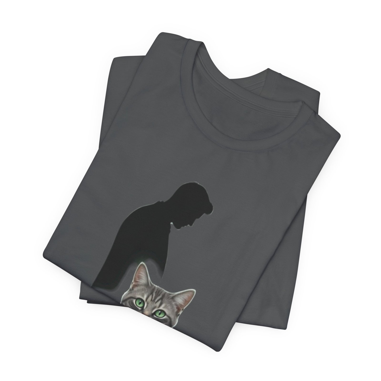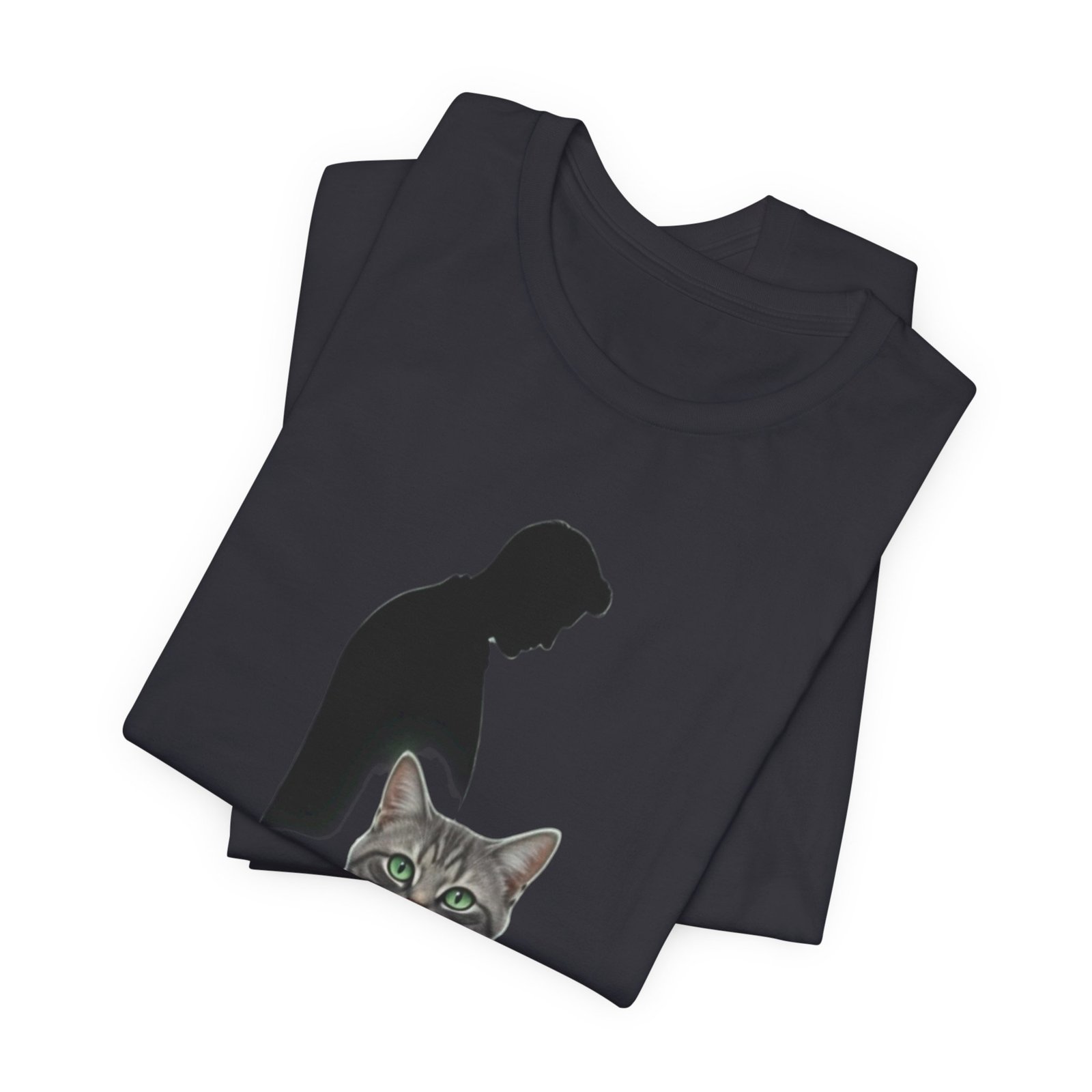 Soft, breathable, and built to last — this lightweight jersey tee slips into daily life with quiet confidence. The front art pairs a thoughtful silhouette with a calm, detailed tabby, and the understated caption nudges a smile without shouting. Wear it while lounging on the couch, reading on a rainy morning, or strolling to the cafe with a carrier of treats for your cat. The crew neck and retail fit keep the look neat and easy to layer under jackets or over thermal shirts. Ethically made and REACH certified, this tee feels as good to wear as it does to choose.