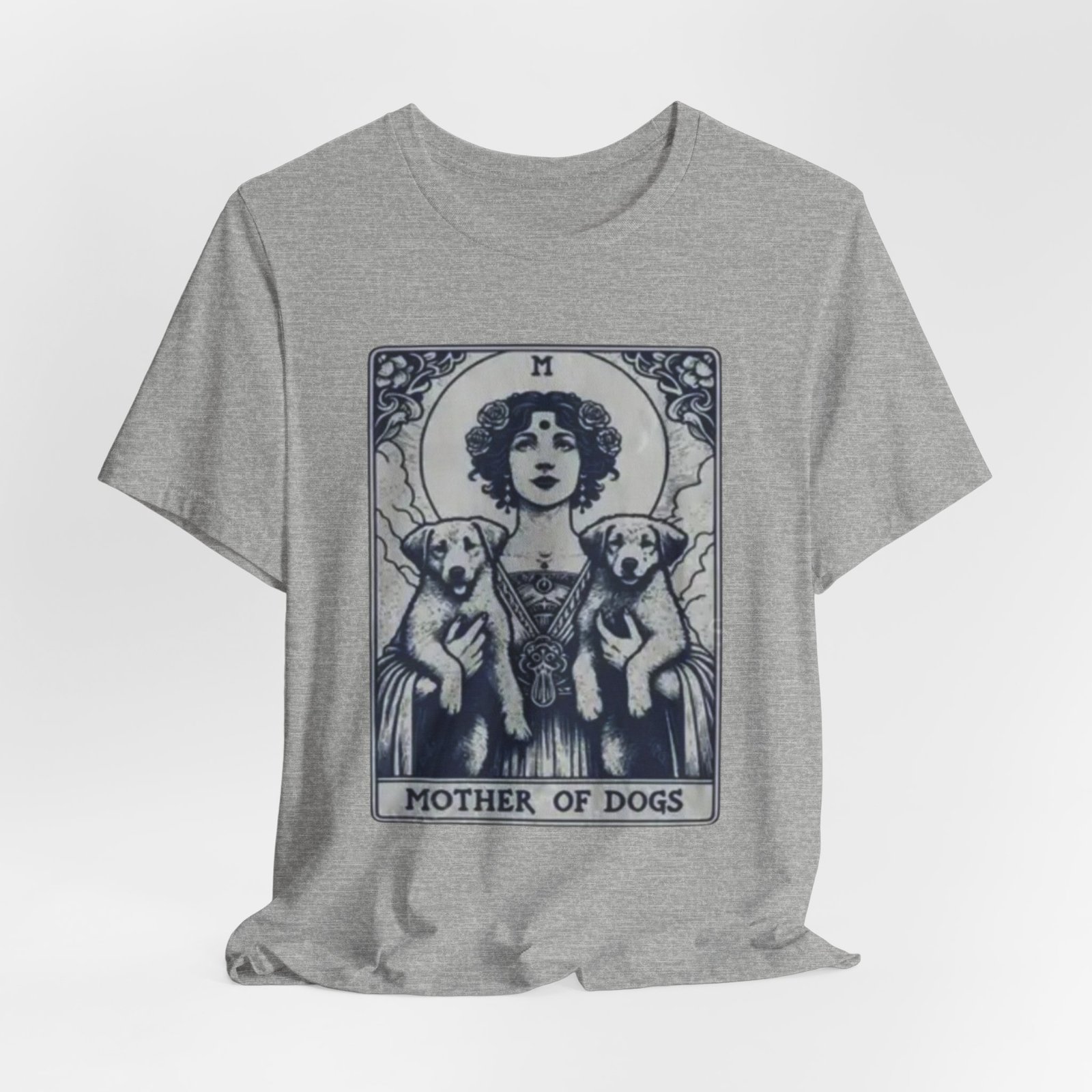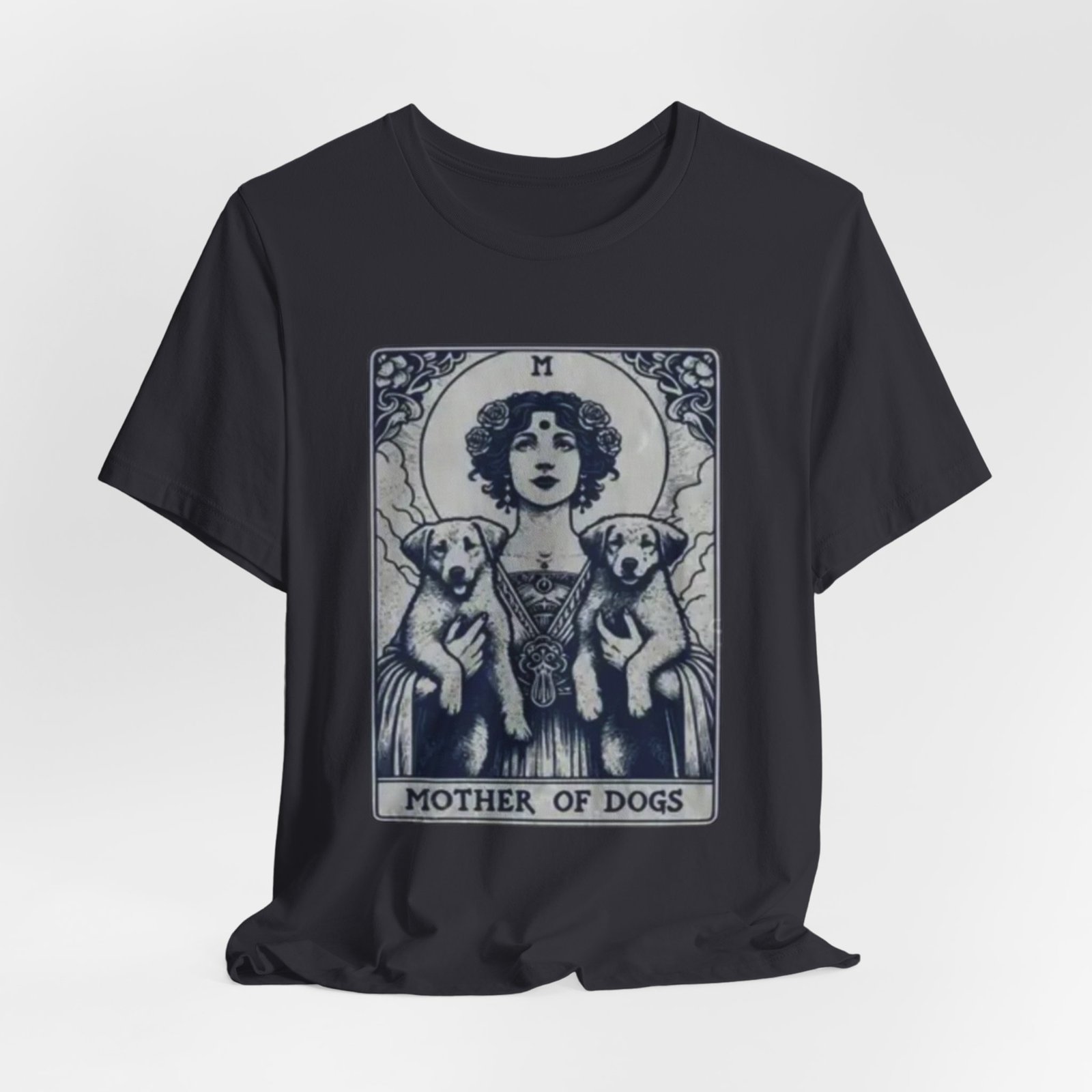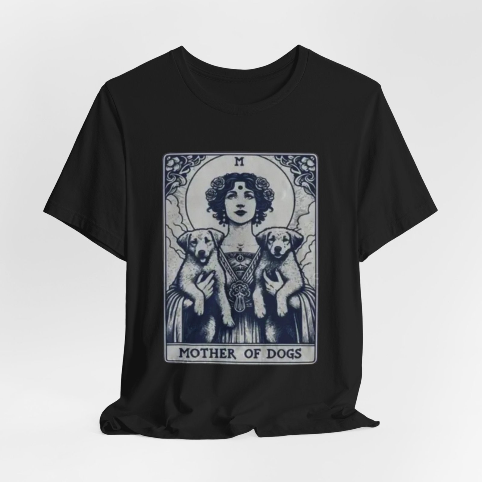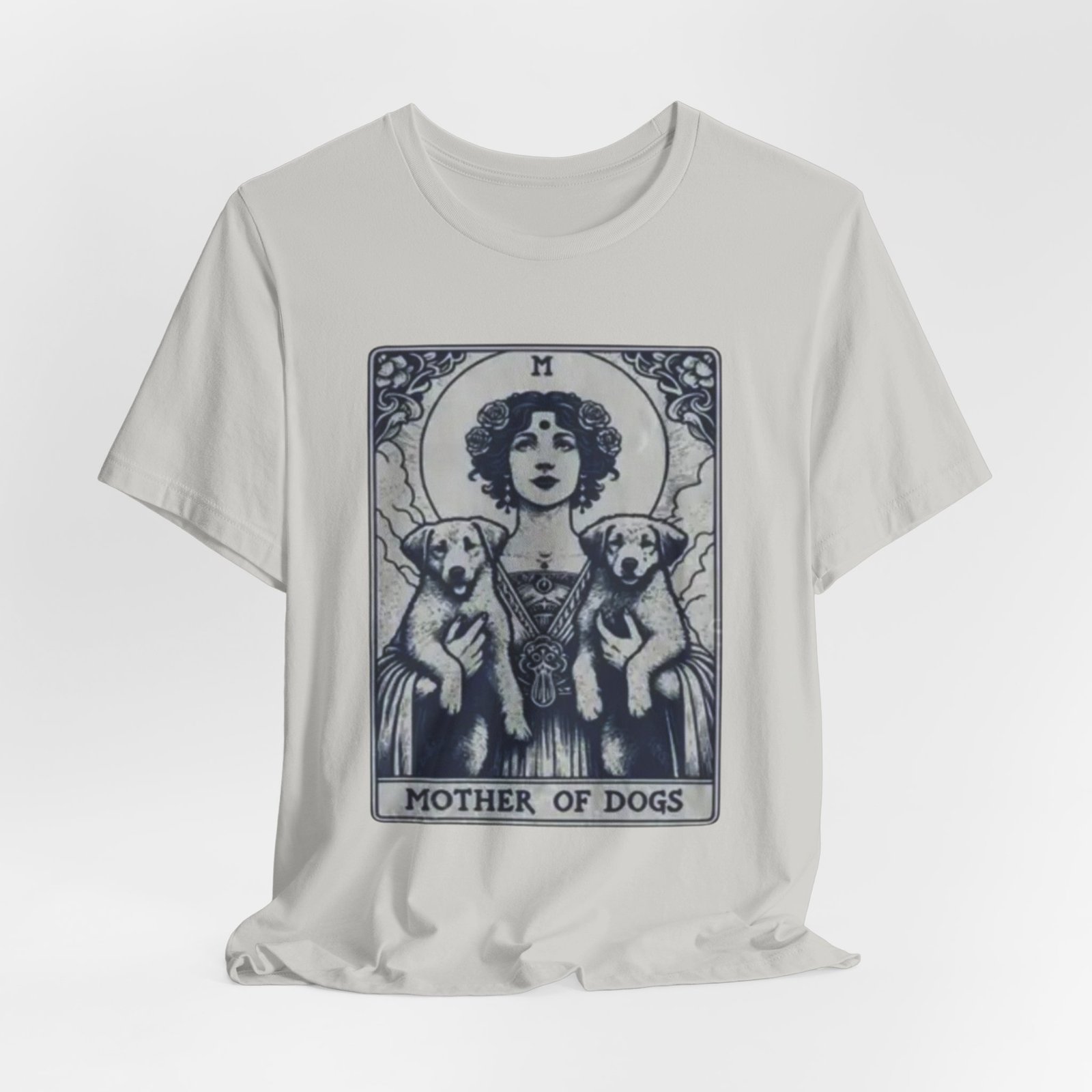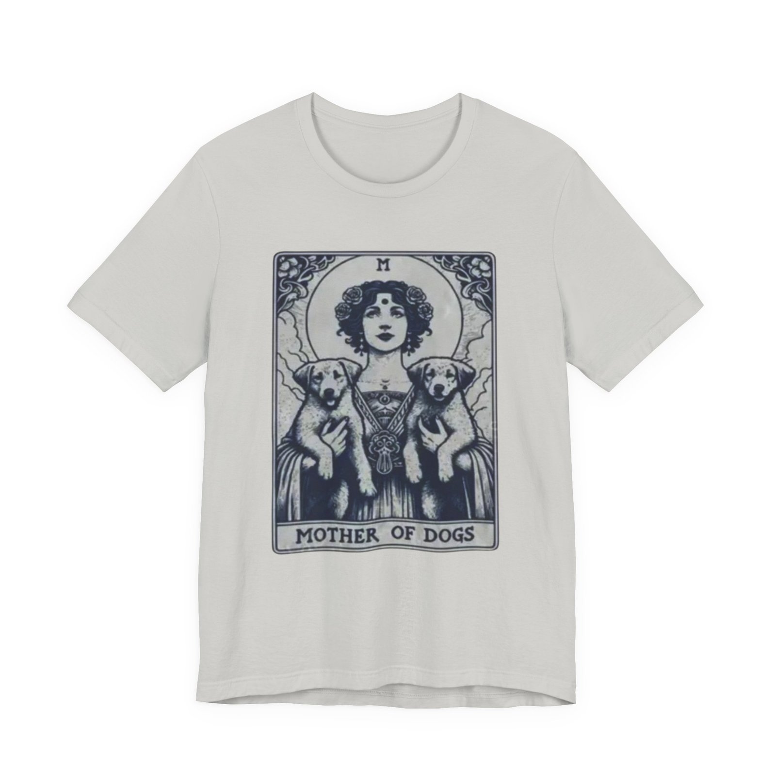 Wear the quiet devotion of a dog-lover who sees the sacred in everyday companionship. This lightweight jersey tee features an art-nouveau inspired illustration of a serene figure cradling two dogs, captioned ‘Mother of Dogs.’ Soft and breathable, it layers easily under jackets or stands on its own when you want your loyalty to show. The muted, detailed print reads like a small, personal icon—subtle enough for daily wear, expressive enough to spark conversations on walks, at the dog park, or during low-key gatherings.