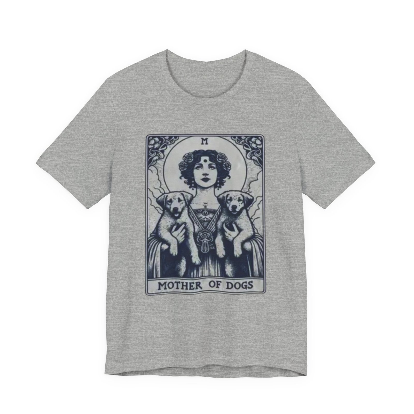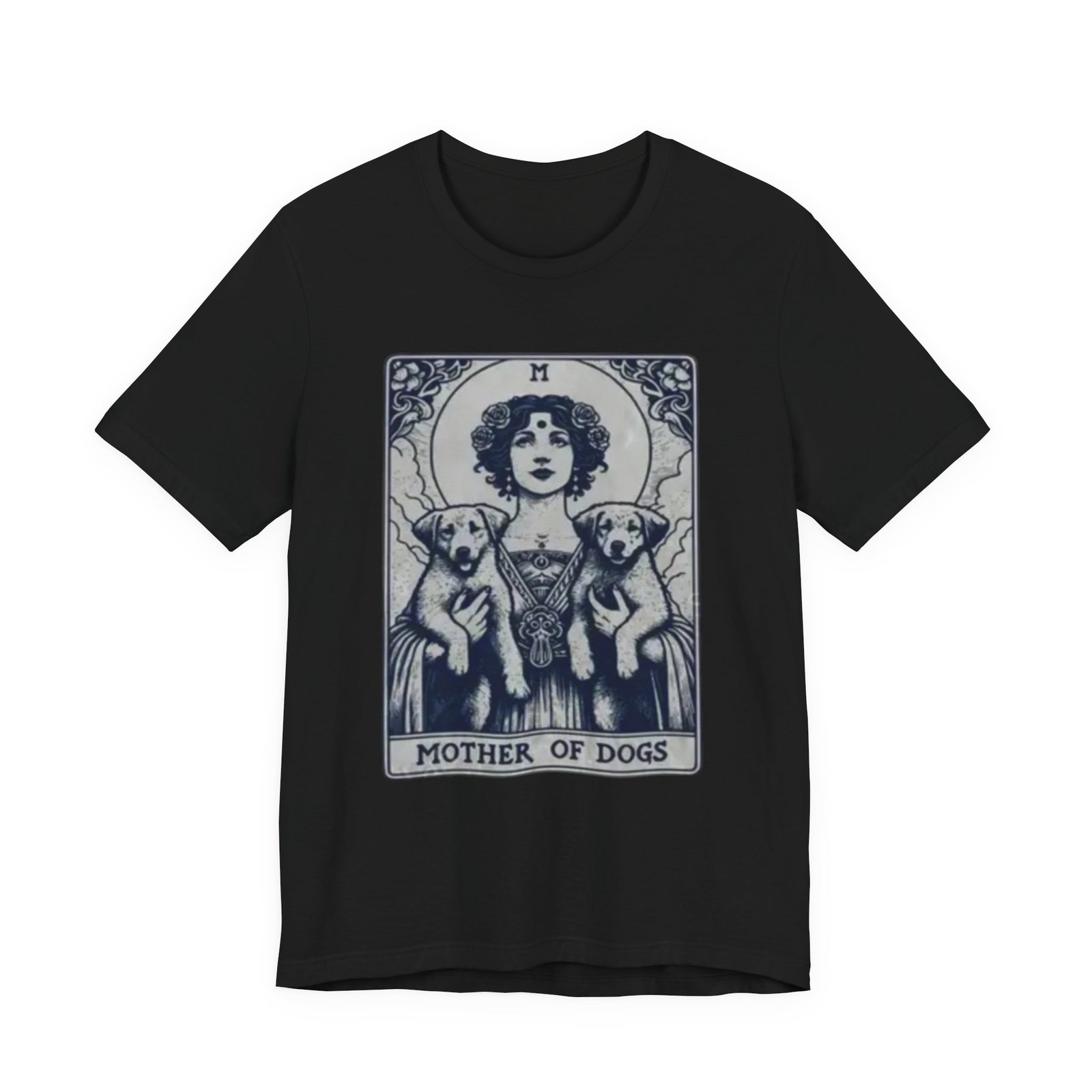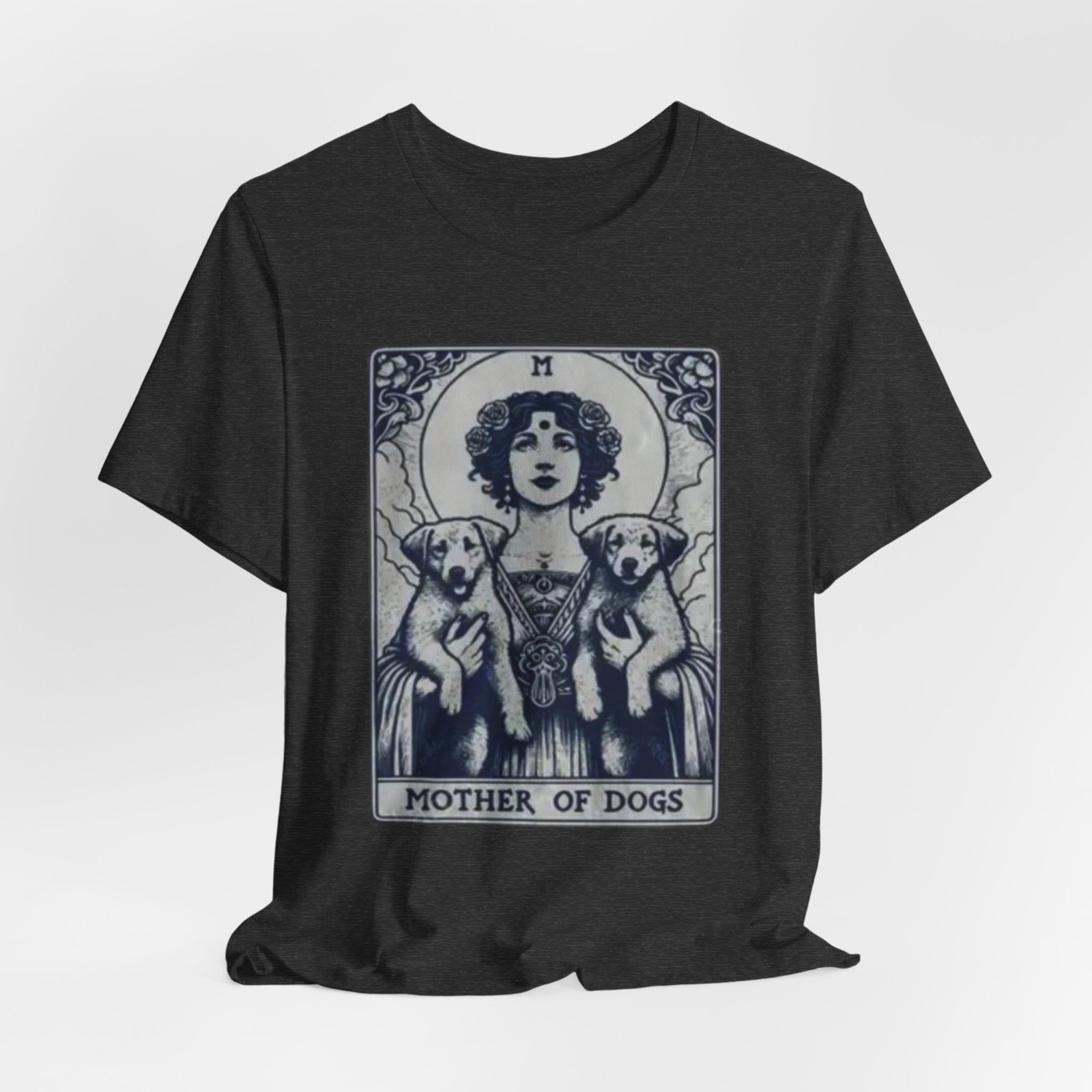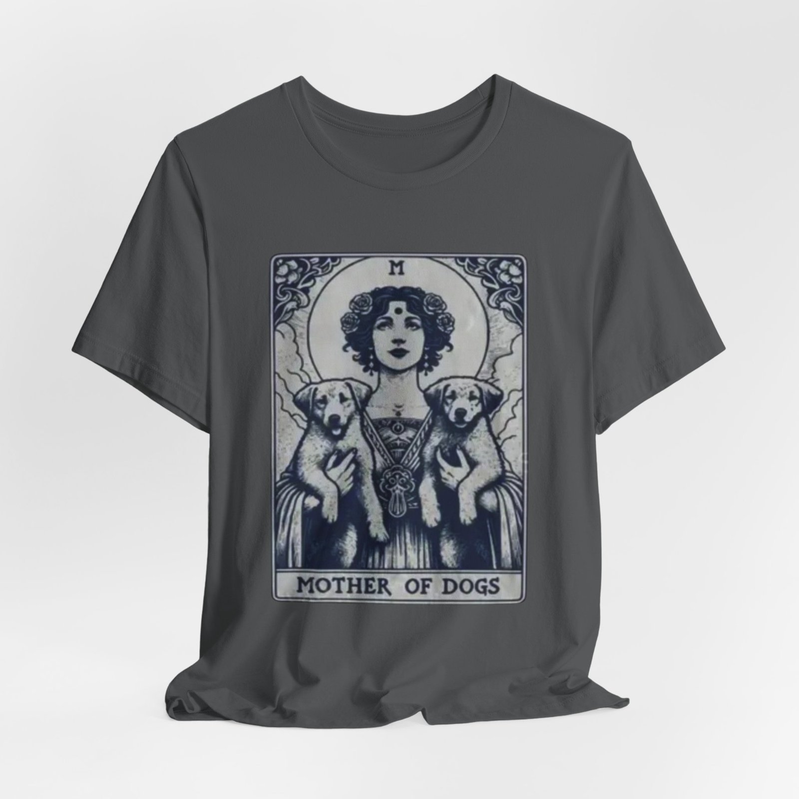 Wear the quiet devotion of a dog-lover who sees the sacred in everyday companionship. This lightweight jersey tee features an art-nouveau inspired illustration of a serene figure cradling two dogs, captioned ‘Mother of Dogs.’ Soft and breathable, it layers easily under jackets or stands on its own when you want your loyalty to show. The muted, detailed print reads like a small, personal icon—subtle enough for daily wear, expressive enough to spark conversations on walks, at the dog park, or during low-key gatherings.