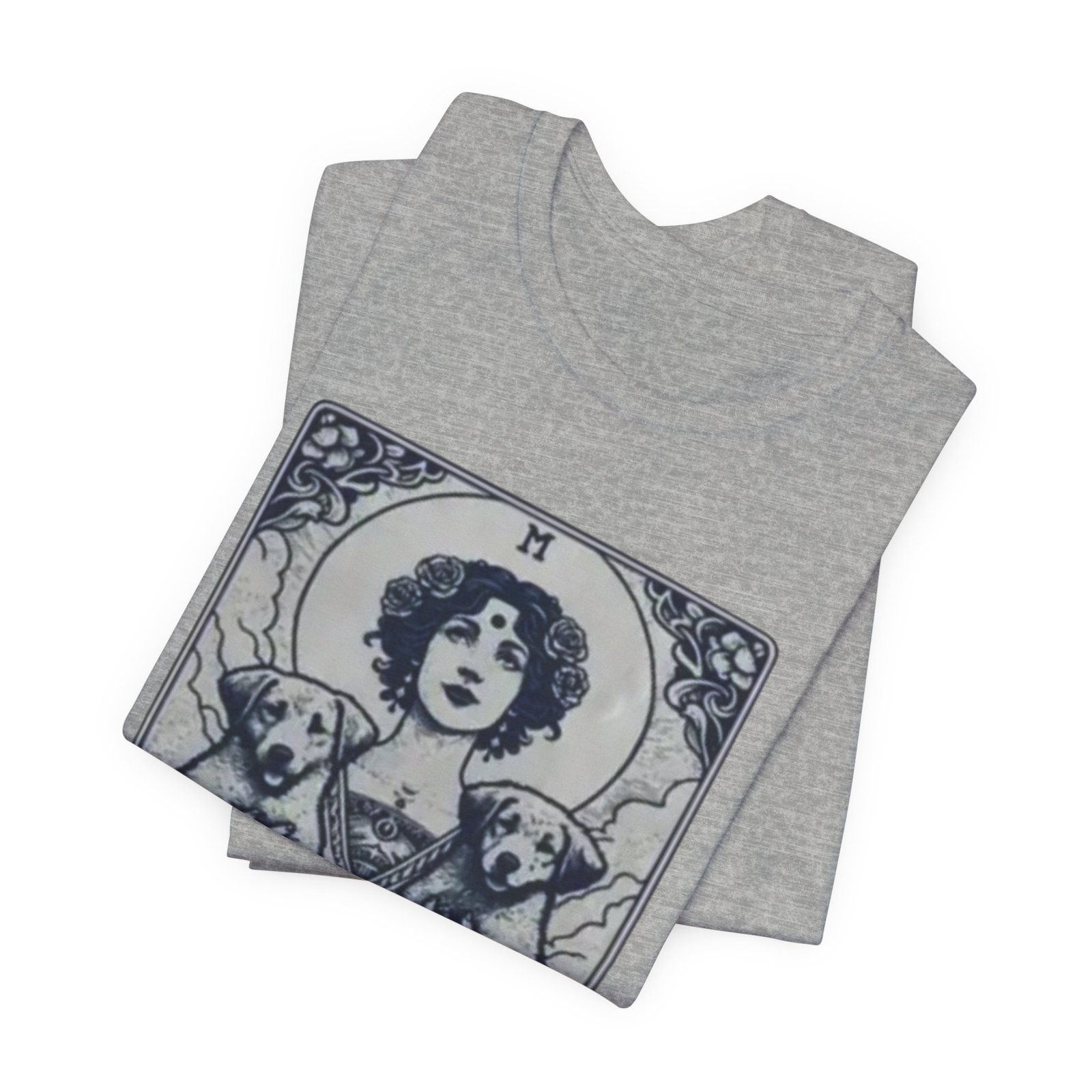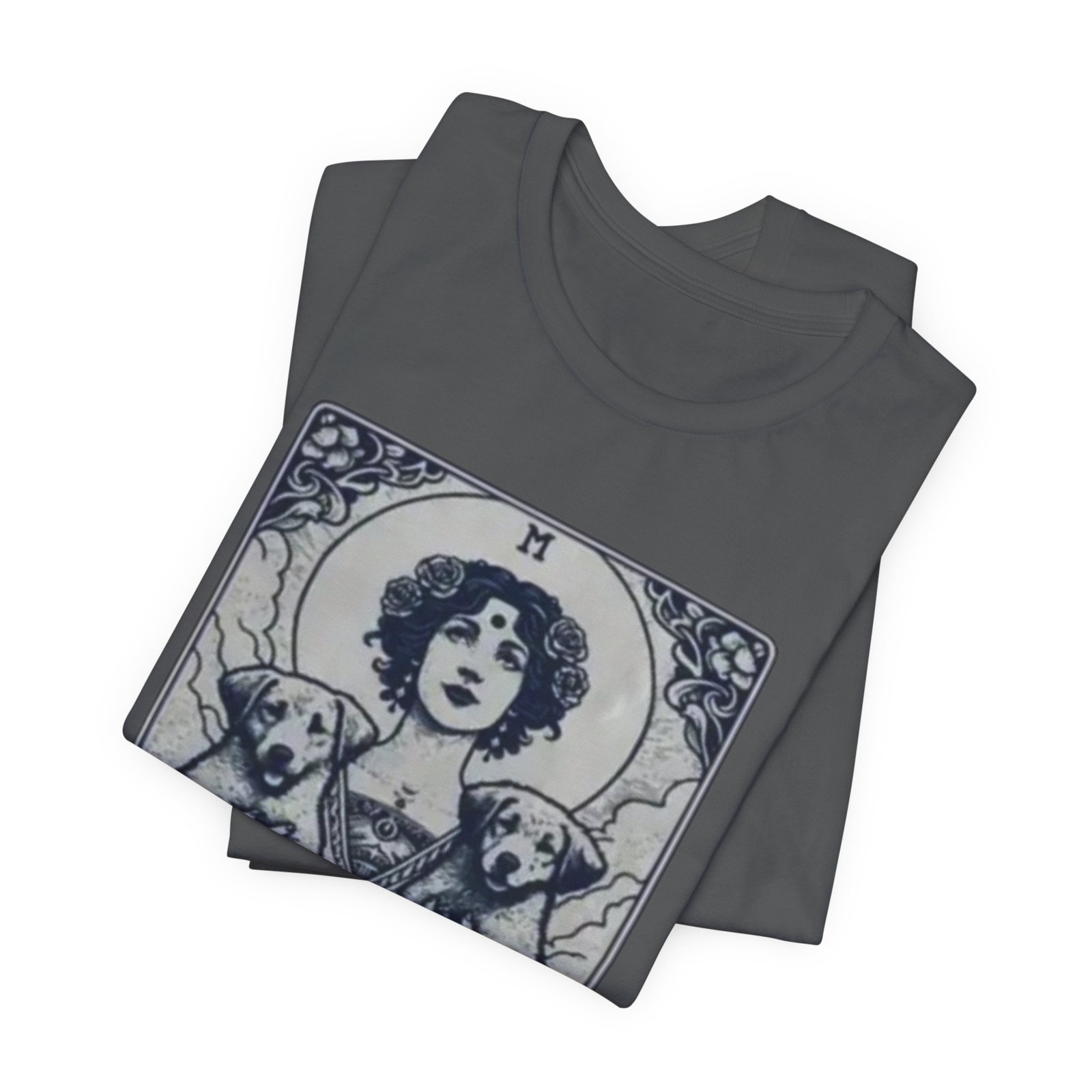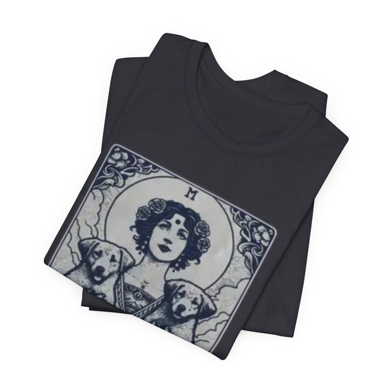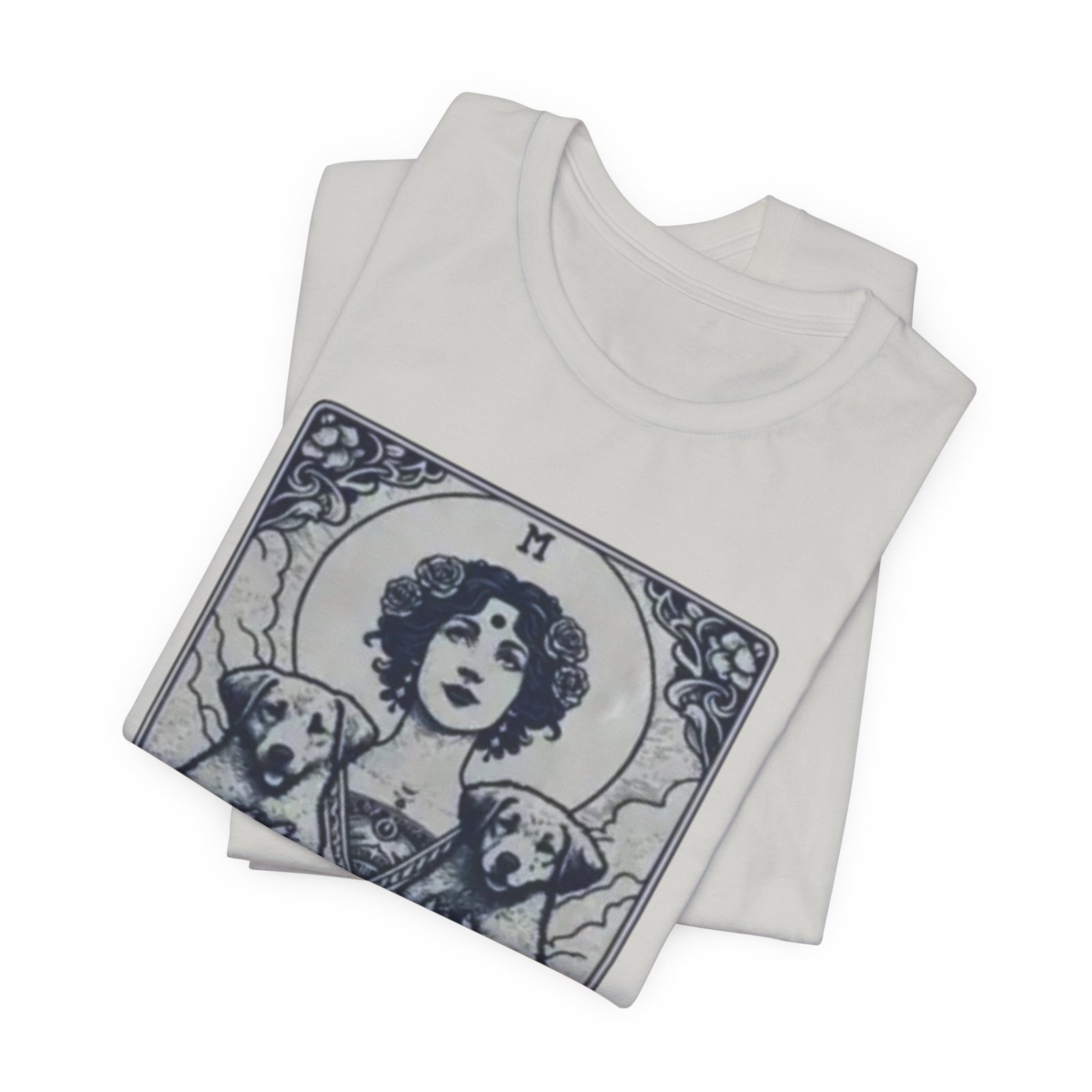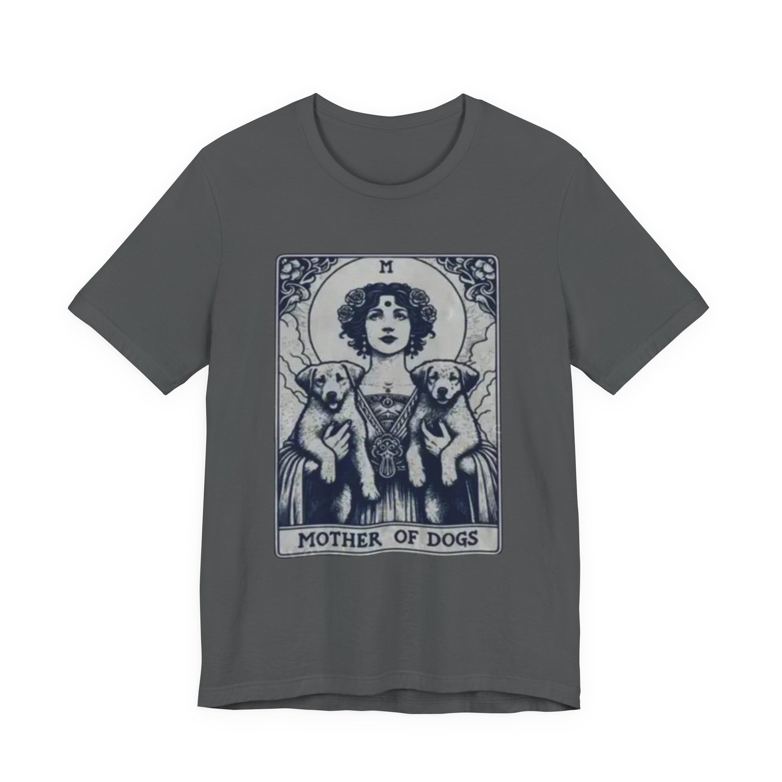 Wear the quiet devotion of a dog-lover who sees the sacred in everyday companionship. This lightweight jersey tee features an art-nouveau inspired illustration of a serene figure cradling two dogs, captioned ‘Mother of Dogs.’ Soft and breathable, it layers easily under jackets or stands on its own when you want your loyalty to show. The muted, detailed print reads like a small, personal icon—subtle enough for daily wear, expressive enough to spark conversations on walks, at the dog park, or during low-key gatherings.