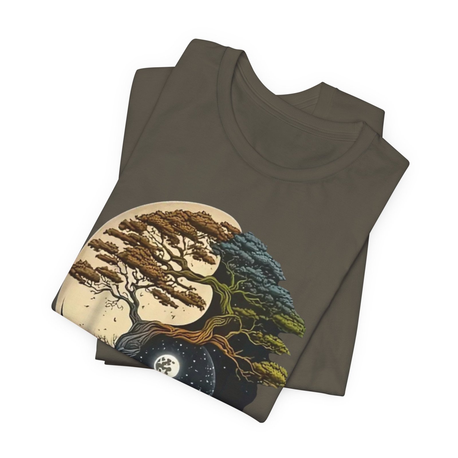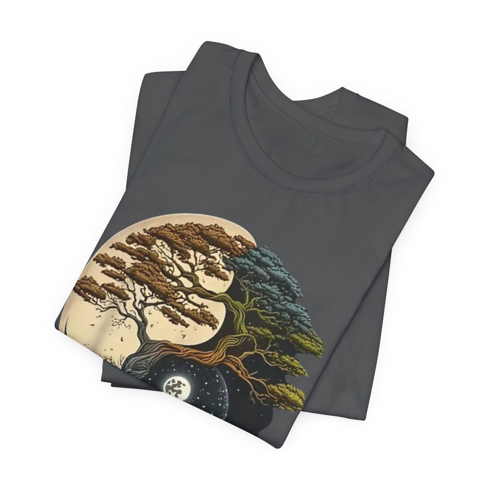 This Unisex Jersey Short Sleeve Tee is the perfect blend of comfort and style, infused with a modern artistic design that evokes a sense of balance and serenity. Made from 100% Airlume combed and ring-spun cotton, the fabric is soft, breathable, and light, making it ideal for both casual outings and relaxed weekends at home. The tee showcases a striking graphic that resonates with nature lovers and those seeking tranquility in their wardrobe. With its versatile look, it’s perfect for layering and accessorizing, making it an excellent choice for any occasion, from family gatherings to laid-back celebrations. This tee is designed for adults who appreciate unique fashion that tells a story and enhances their everyday life, whether it’s for Earth Day, casual meetups, or just a day in the park. Embrace sustainable fashion and show off your individuality with this stylish piece.