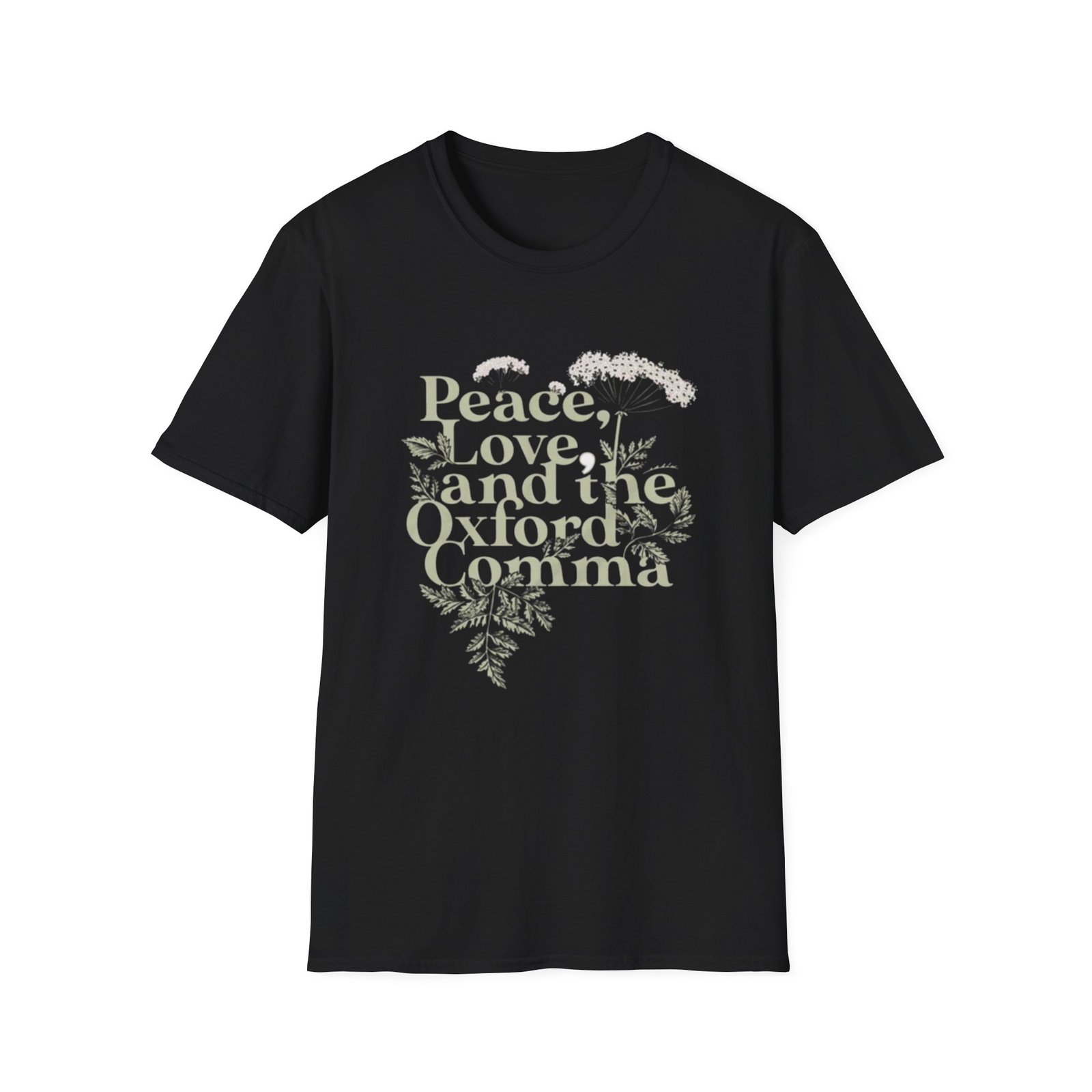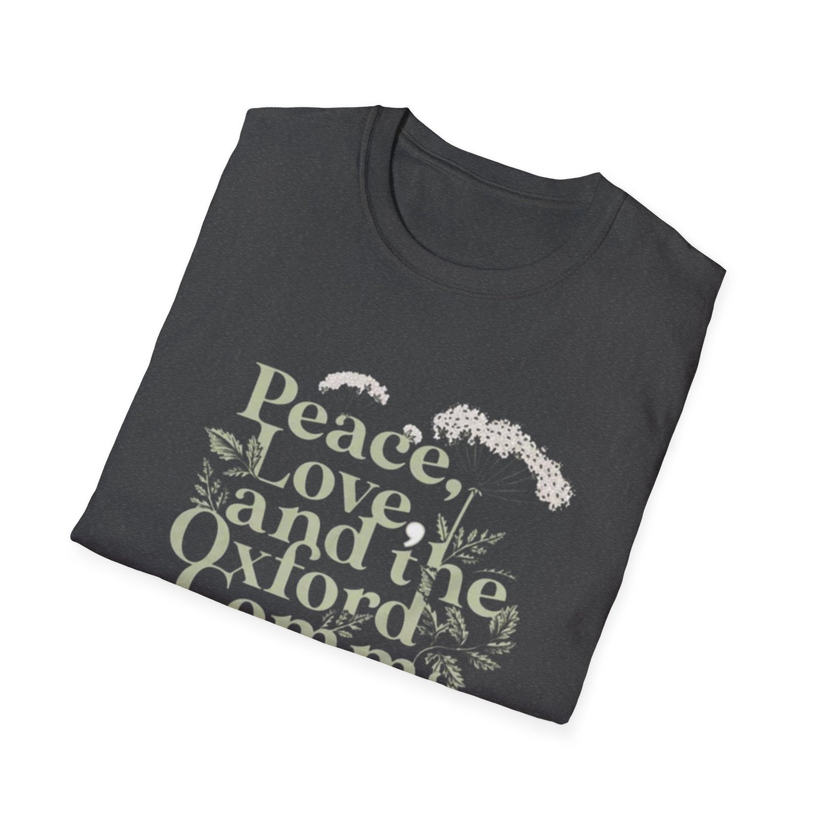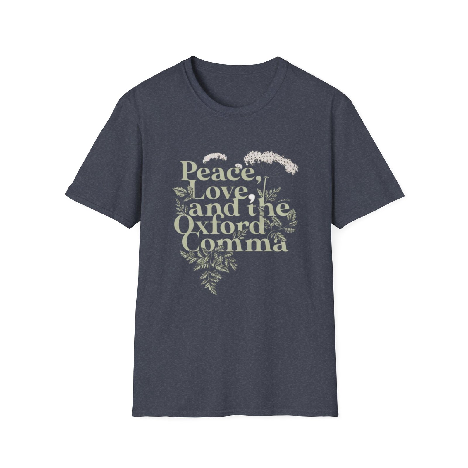 Peace Love and the Oxford Comma T-Shirt | Grammar Pride, Floral Typography