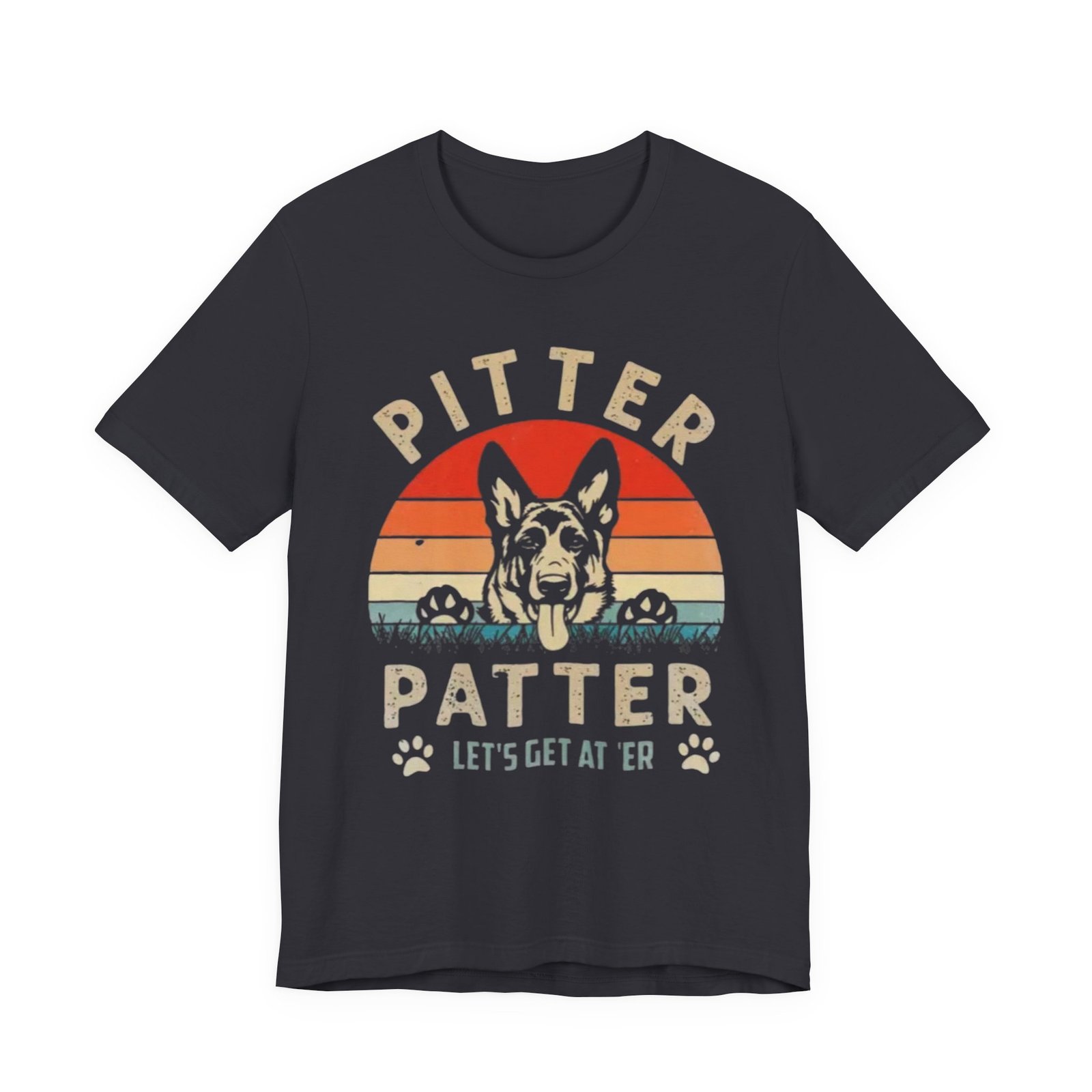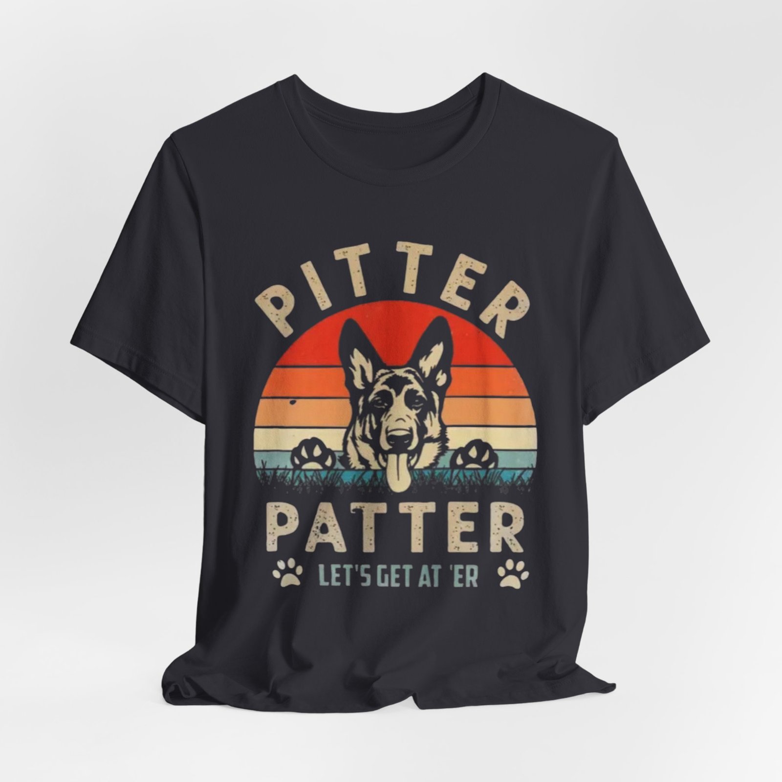 Be the first to review “Pitter Patter German Shepherd Tee — ‘Let’s Get at ‘Er’ Retro Dog T-Shirt”