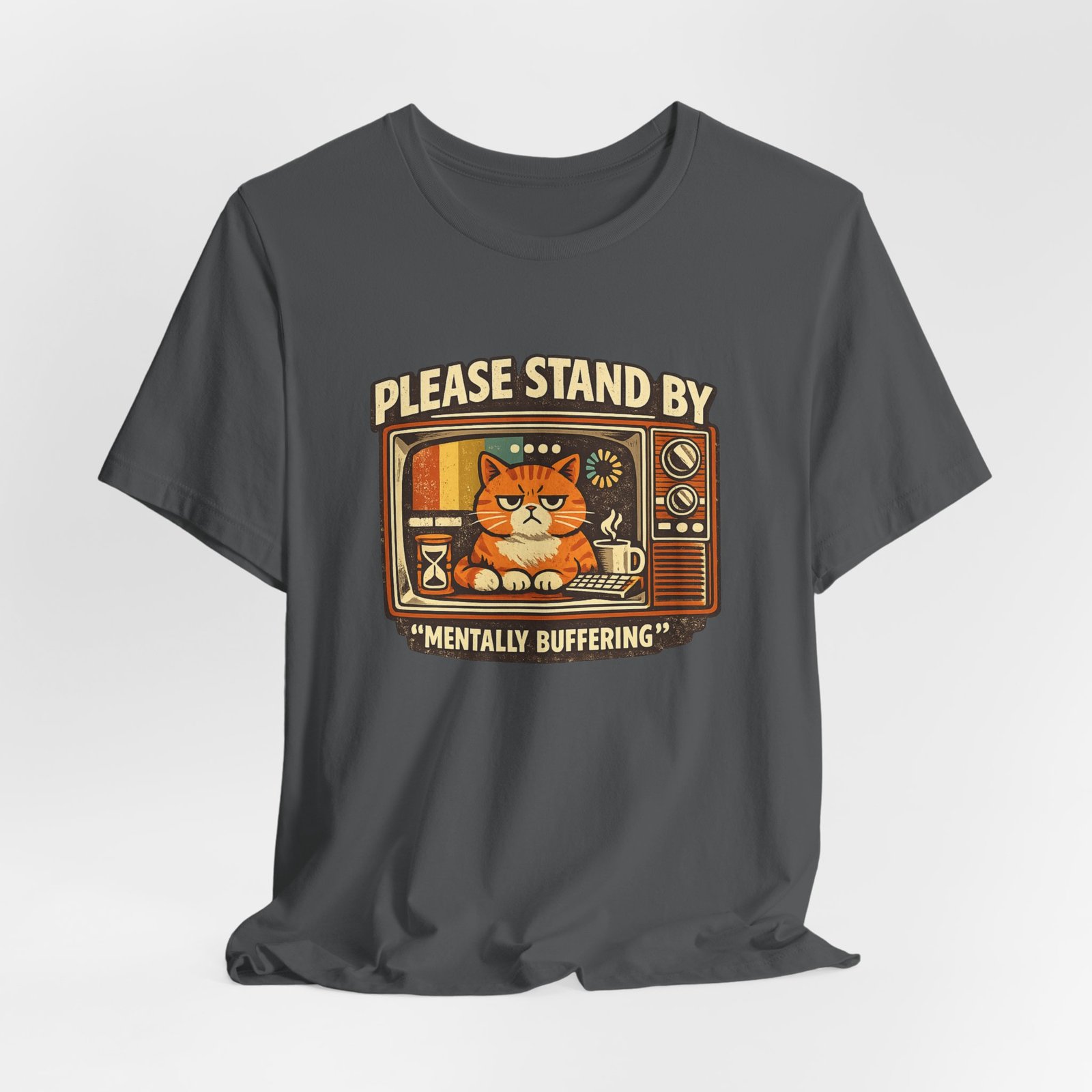 Please Stand By Mentally Buffering, T-Shirt | Retro TV Cat Illustration
