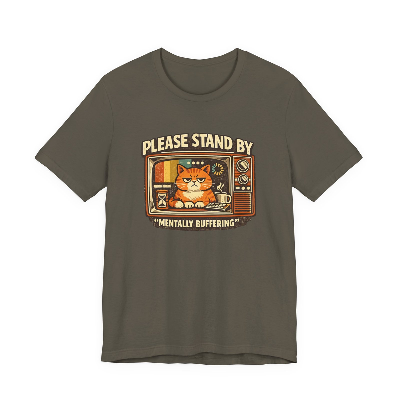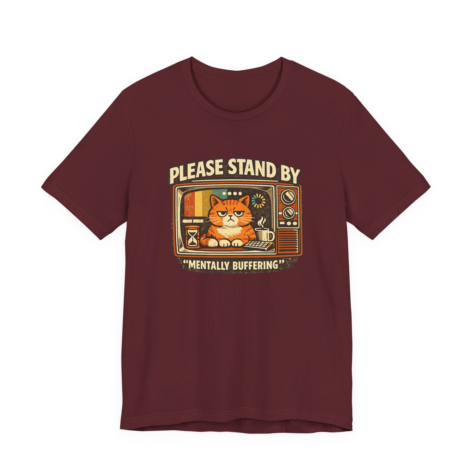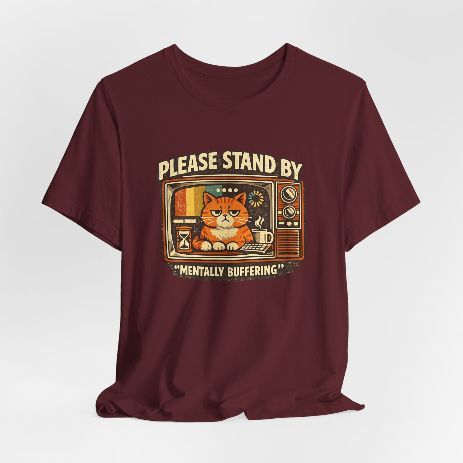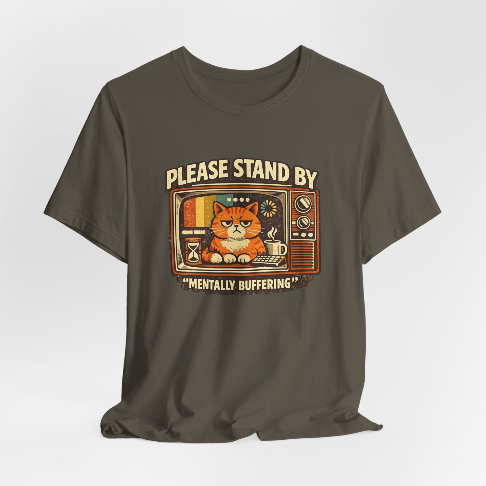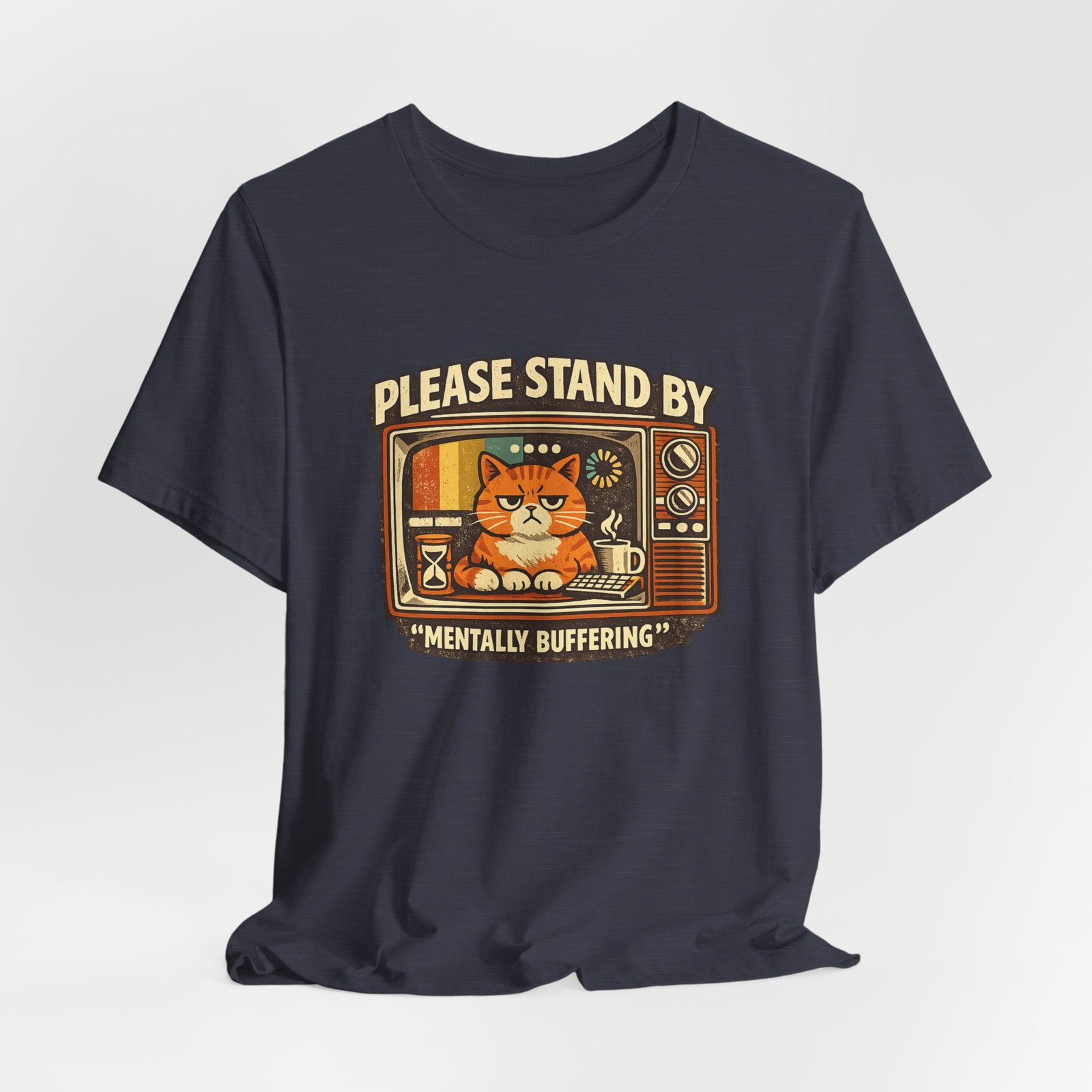 Be the first to review “Please Stand By Mentally Buffering, T-Shirt | Retro TV Cat Illustration”