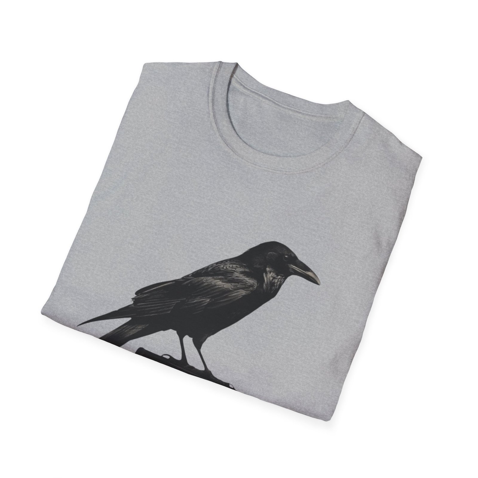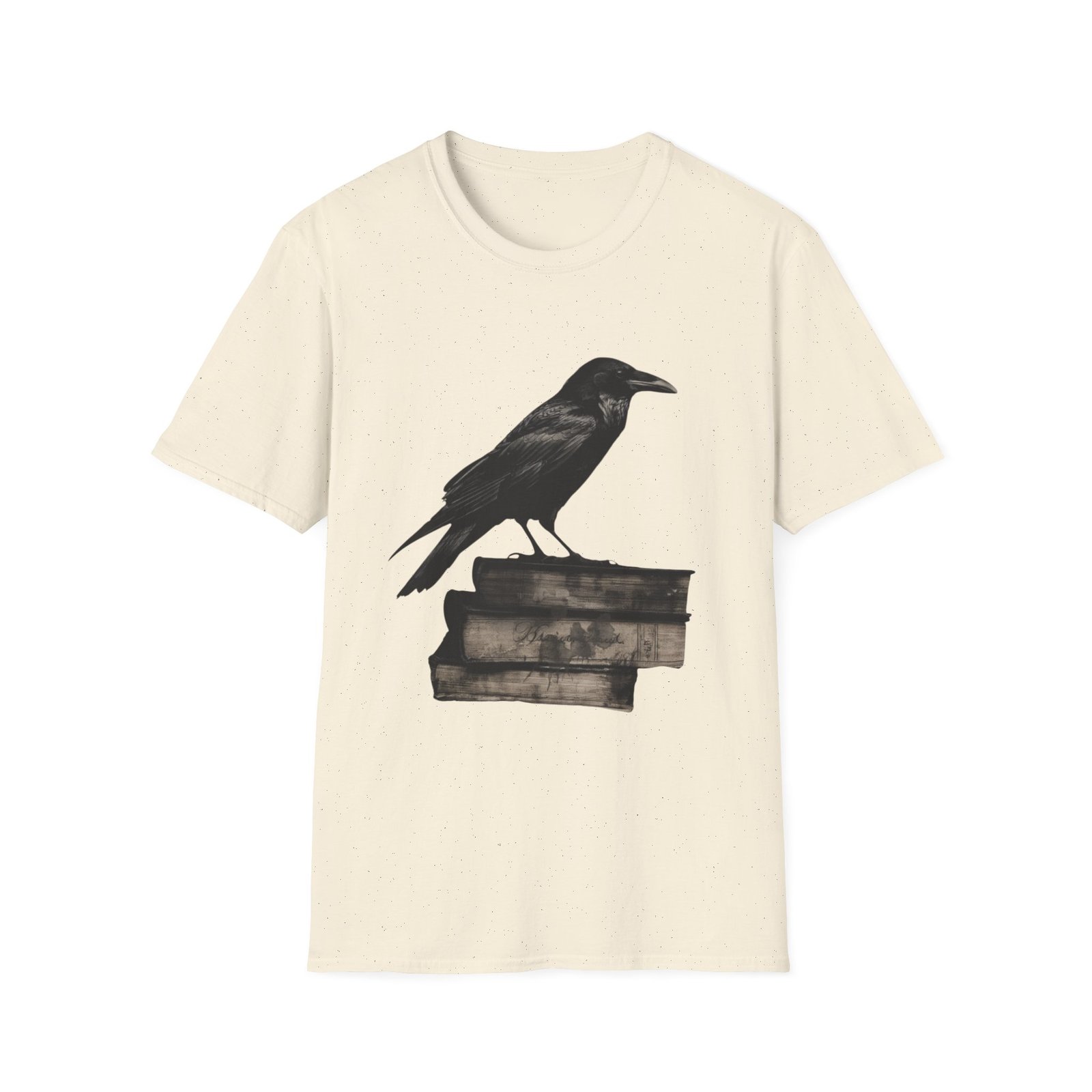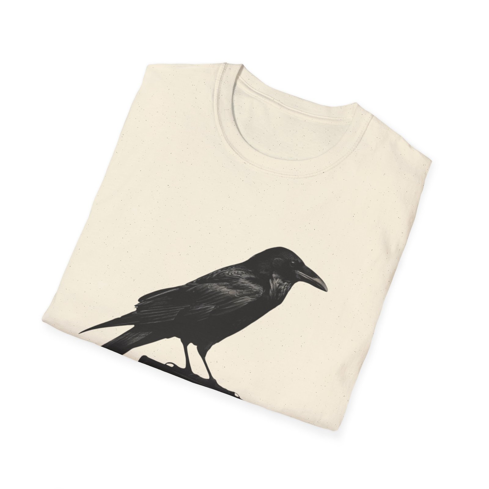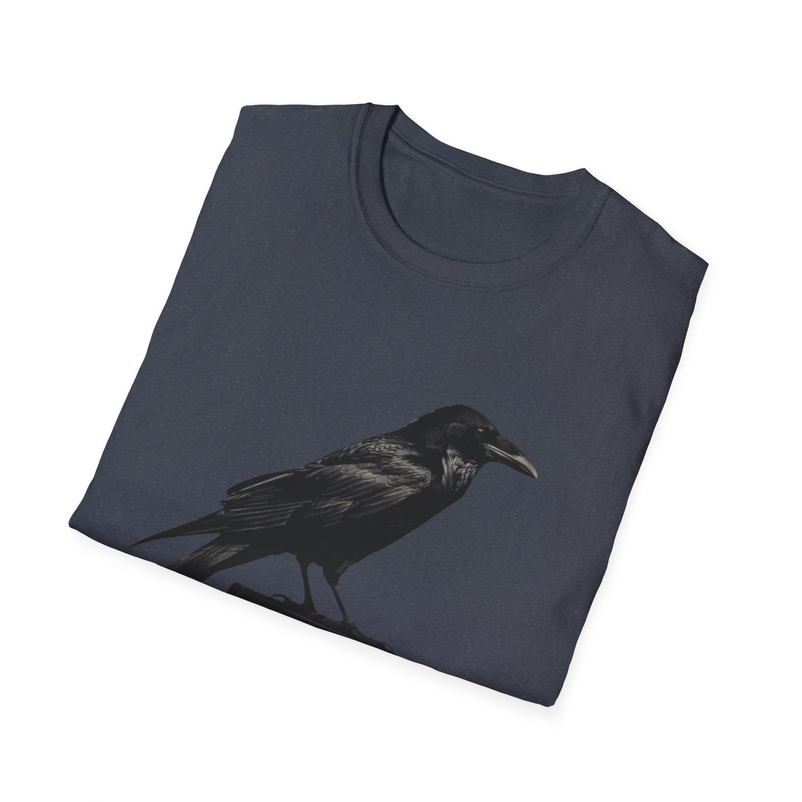 This lightweight cotton tee carries a quietly bold presence: a hand-rendered raven perched on weathered wood, rendered in moody charcoal tones. It sits low on the chest so the image reads like a small, deliberate emblem—an invitation to slow down and notice detail. The soft ring-spun cotton feels breathable and lived-in from the first wear. With a clean crew neckline and classic fit, it layers easily under jackets or wears alone on cooler mornings. The design suits someone who prefers subtle, artful imagery over loud logos—a shirt that ages gracefully and keeps its character through repeat wear.