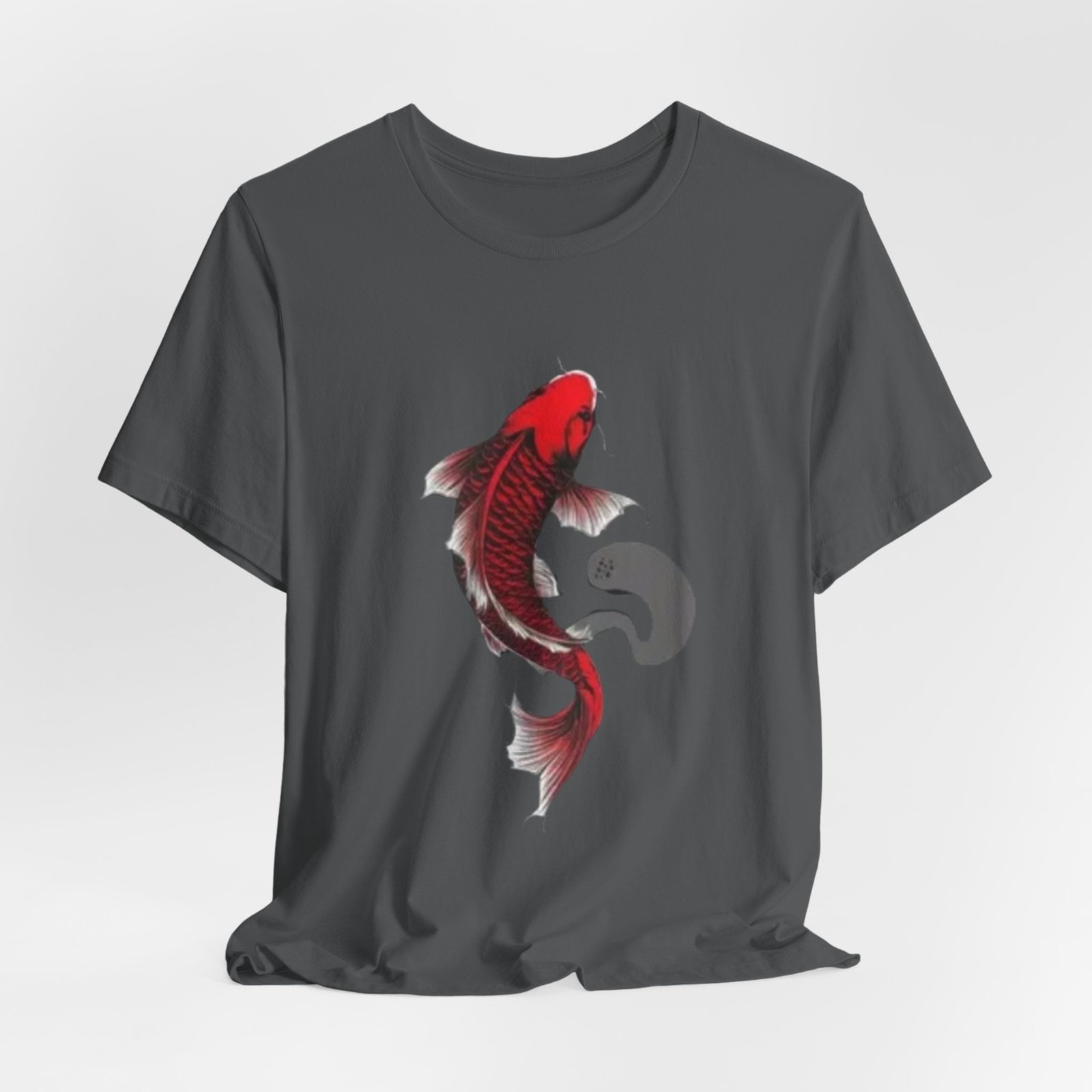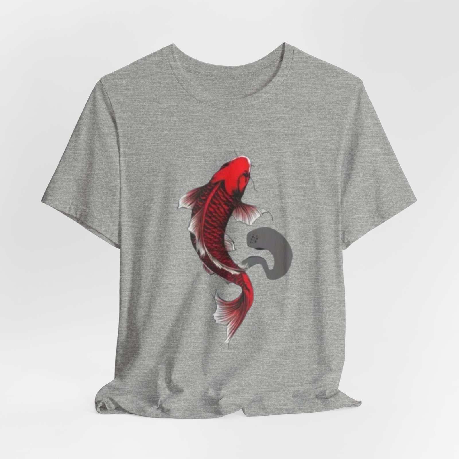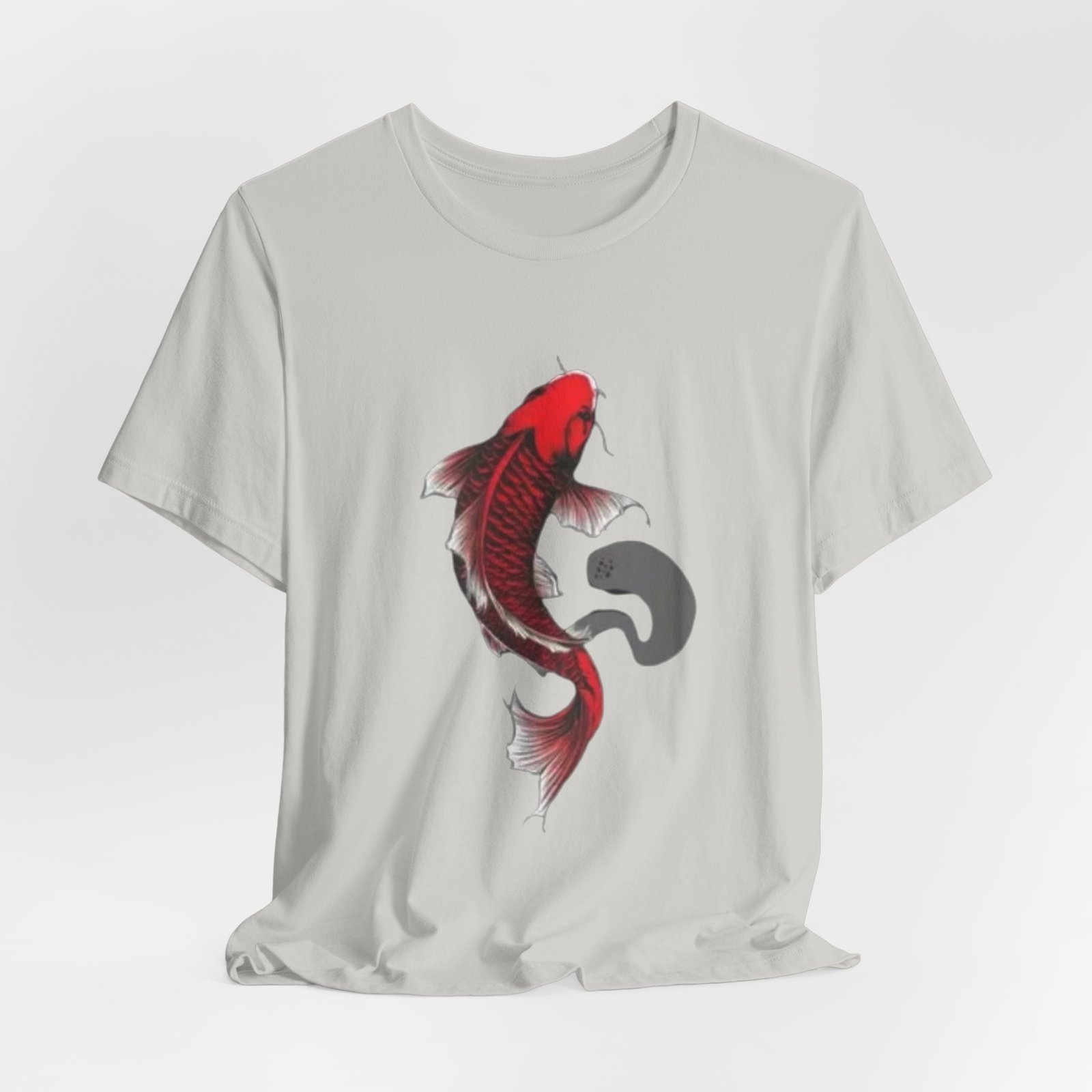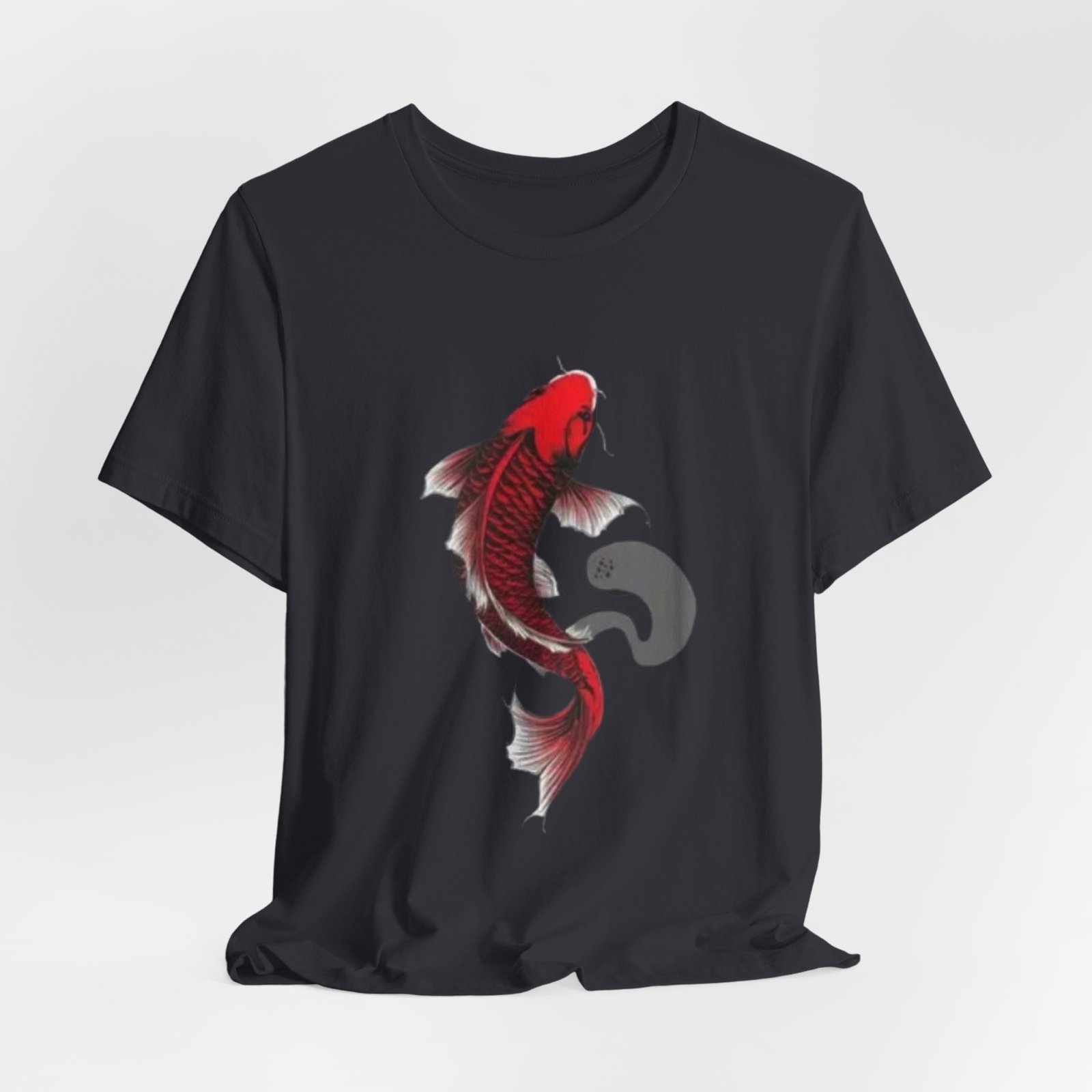 A lightweight, breathable tee that carries a quiet, bold energy. The shirt features a hand-drawn red koi gracefully arching across the chest, its flowing fins and subtle ink-wash shadow suggesting movement and calm. Wear it on slow mornings at the café, while sketching by the river, or layered under a jacket for evenings out. Soft Airlume cotton and a tear-away label keep the focus on comfort so the artwork can speak: refined, slightly meditative, and unmistakably personal. This retail-fit crewneck sits neatly for casual outings or creative workdays, pairing easily with jeans or chinos.