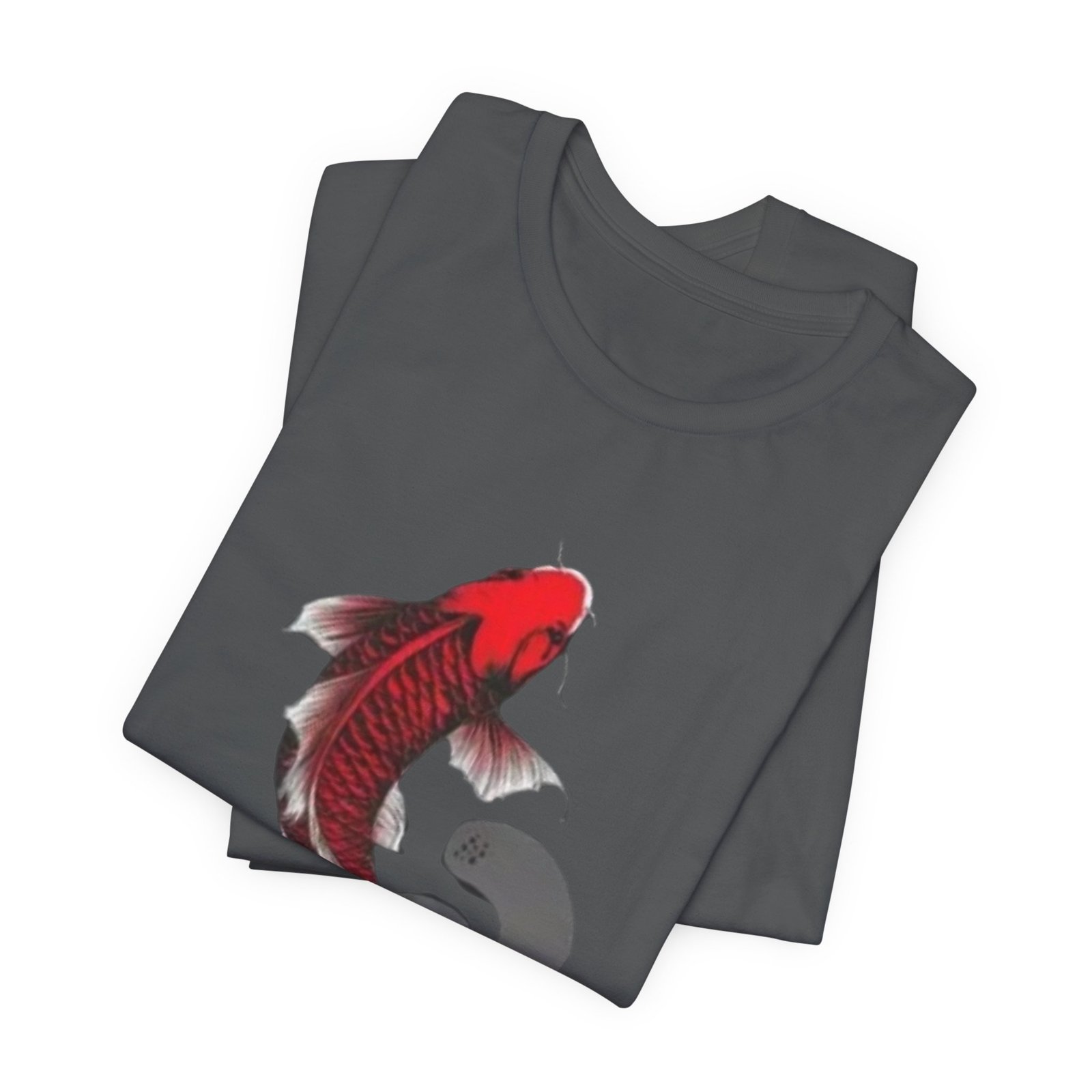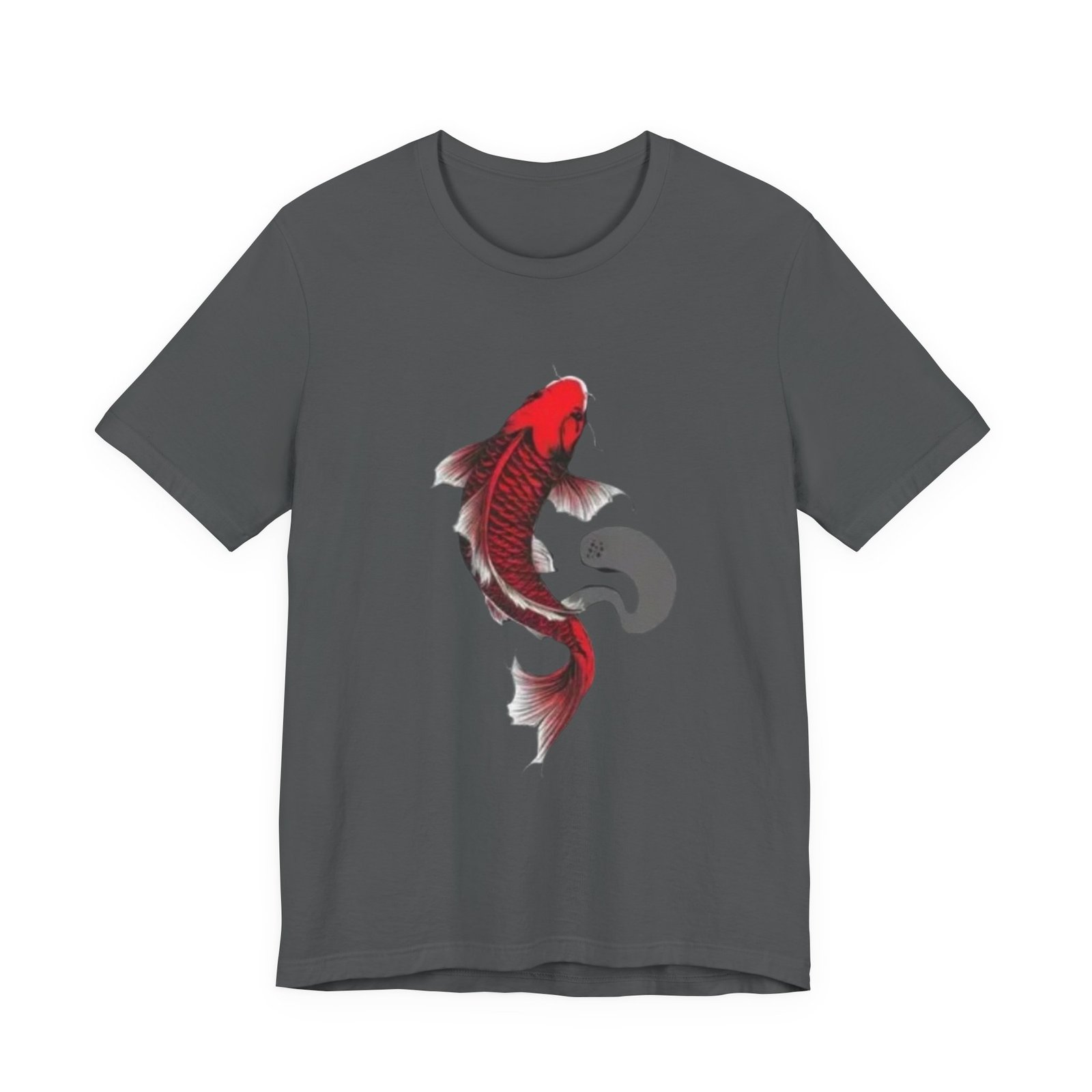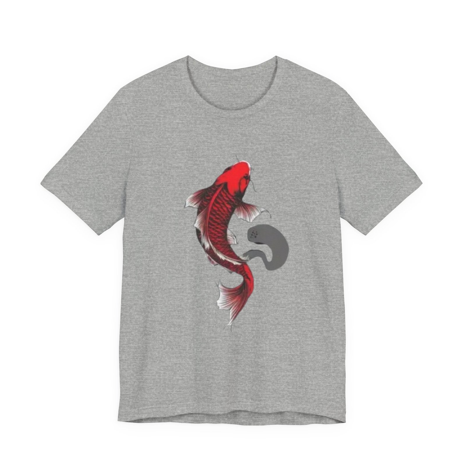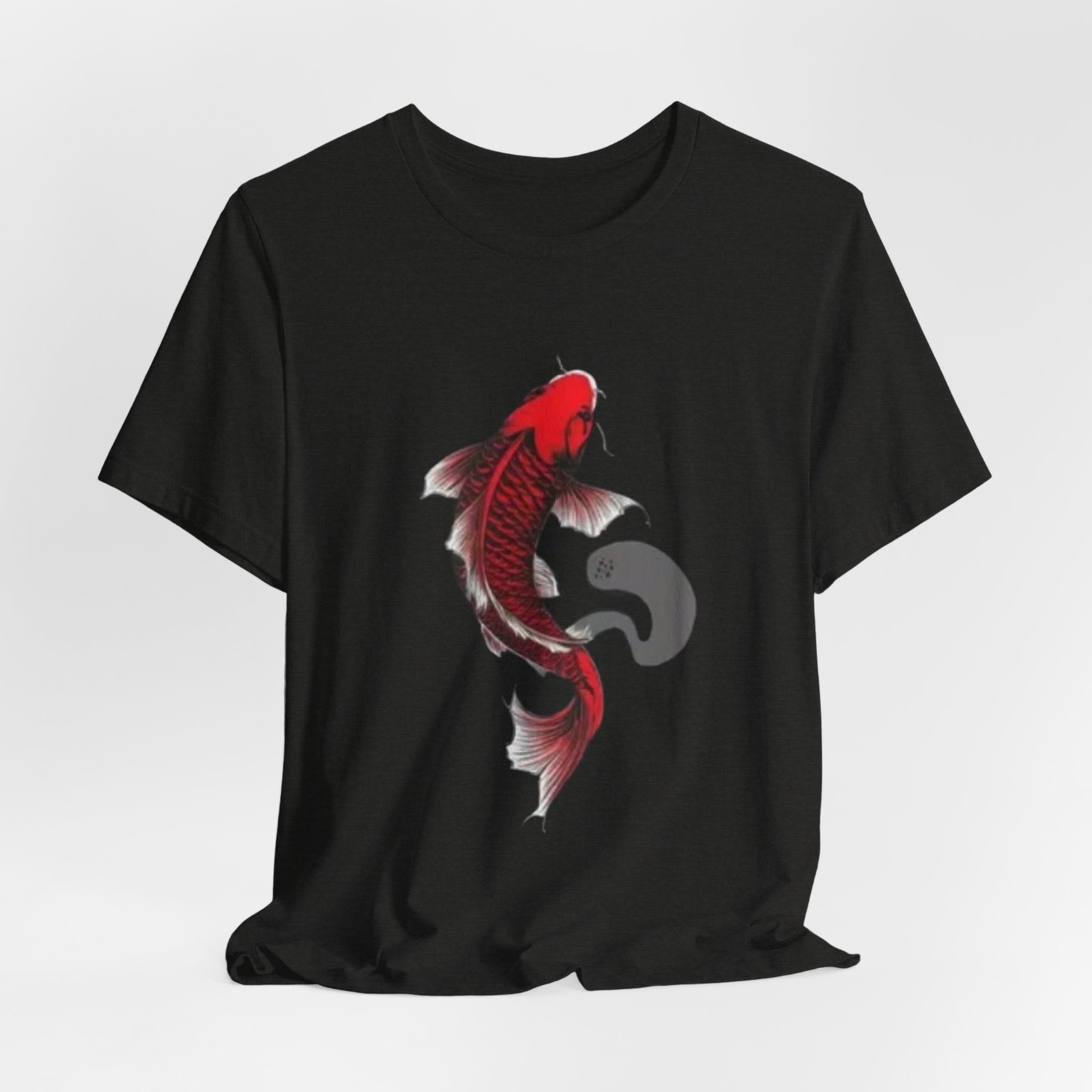 A lightweight, breathable tee that carries a quiet, bold energy. The shirt features a hand-drawn red koi gracefully arching across the chest, its flowing fins and subtle ink-wash shadow suggesting movement and calm. Wear it on slow mornings at the café, while sketching by the river, or layered under a jacket for evenings out. Soft Airlume cotton and a tear-away label keep the focus on comfort so the artwork can speak: refined, slightly meditative, and unmistakably personal. This retail-fit crewneck sits neatly for casual outings or creative workdays, pairing easily with jeans or chinos.