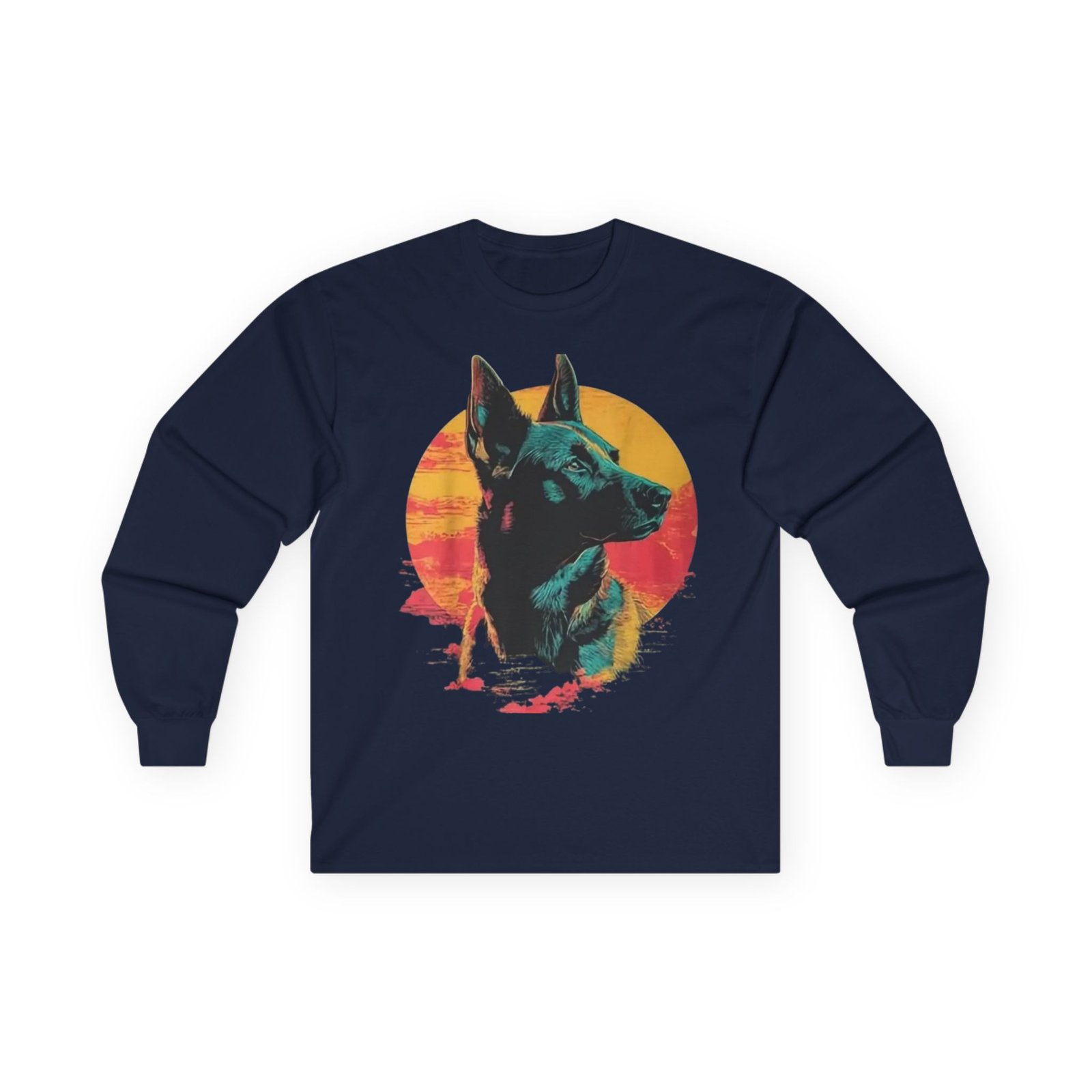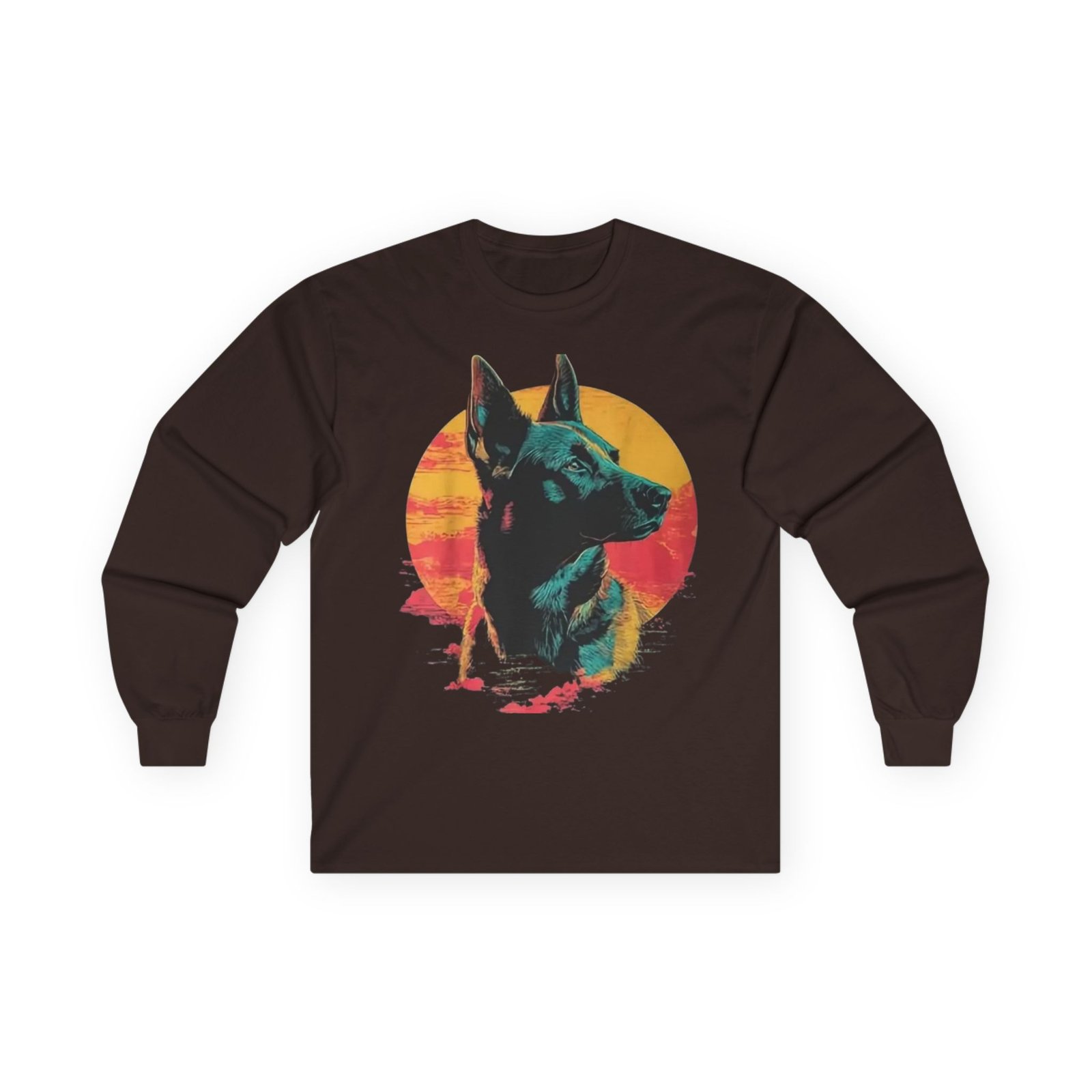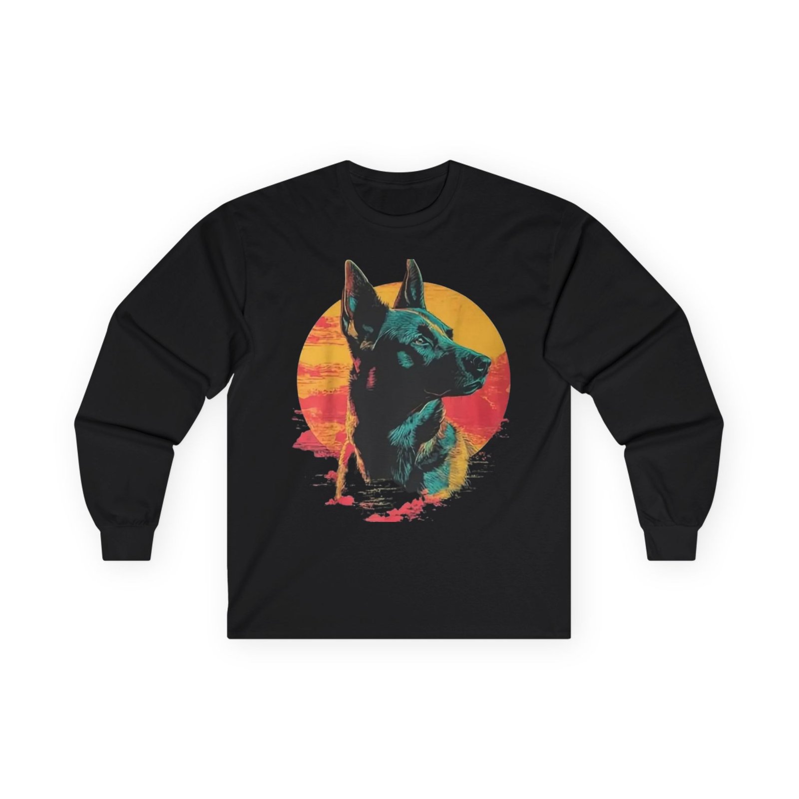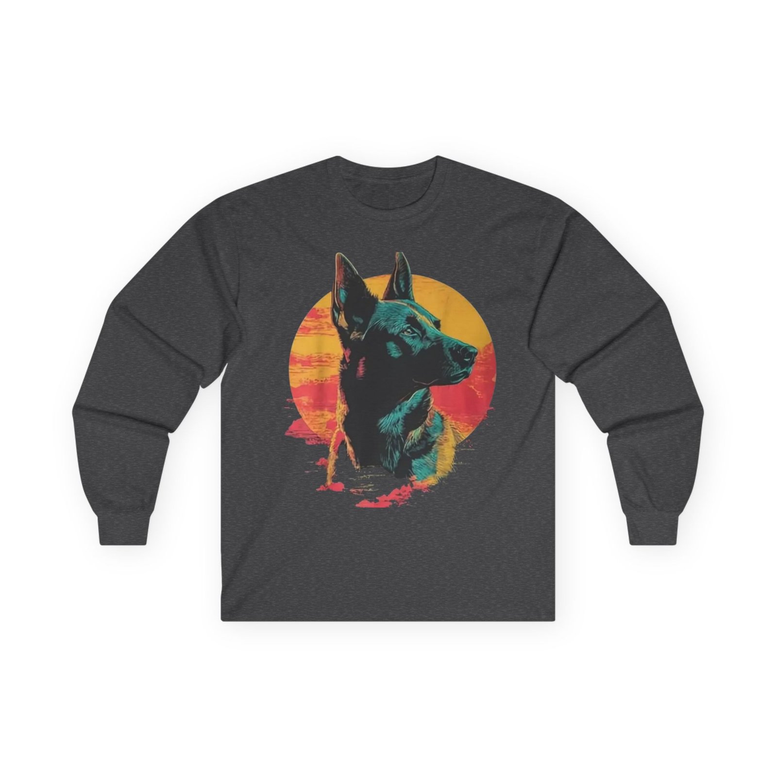 This long-sleeve tee carries a quiet, retro confidence — a detailed fox portrait set against a warm, sunlit disk in sunset hues. The thicker, vintage-feel cotton drapes with weight and warmth, while the tubular knit body and ribbed collar keep the silhouette clean and comfortable. Wear it on cooler mornings walking the dog, around a small backyard fire, or layered under a jacket for a city stroll. The design feels like a found photograph from a summer evening: thoughtful, slightly nostalgic, and steady. It suits someone who values tactile quality, subtle statement graphics, and pieces that age gracefully with wear.