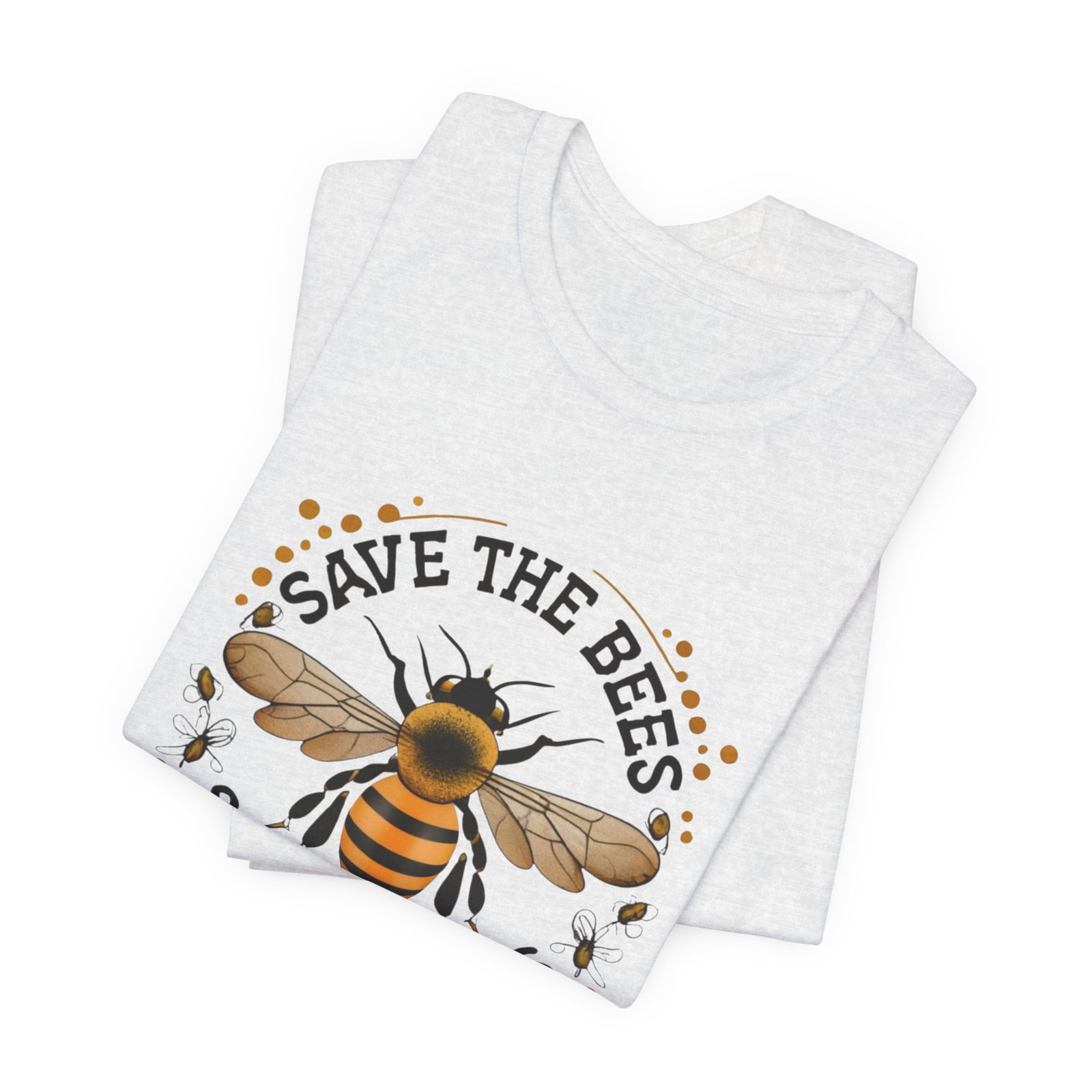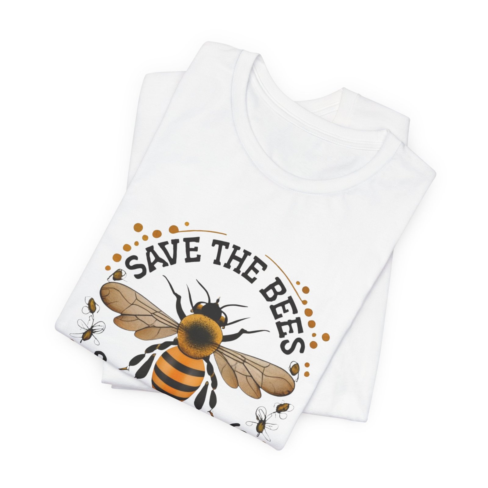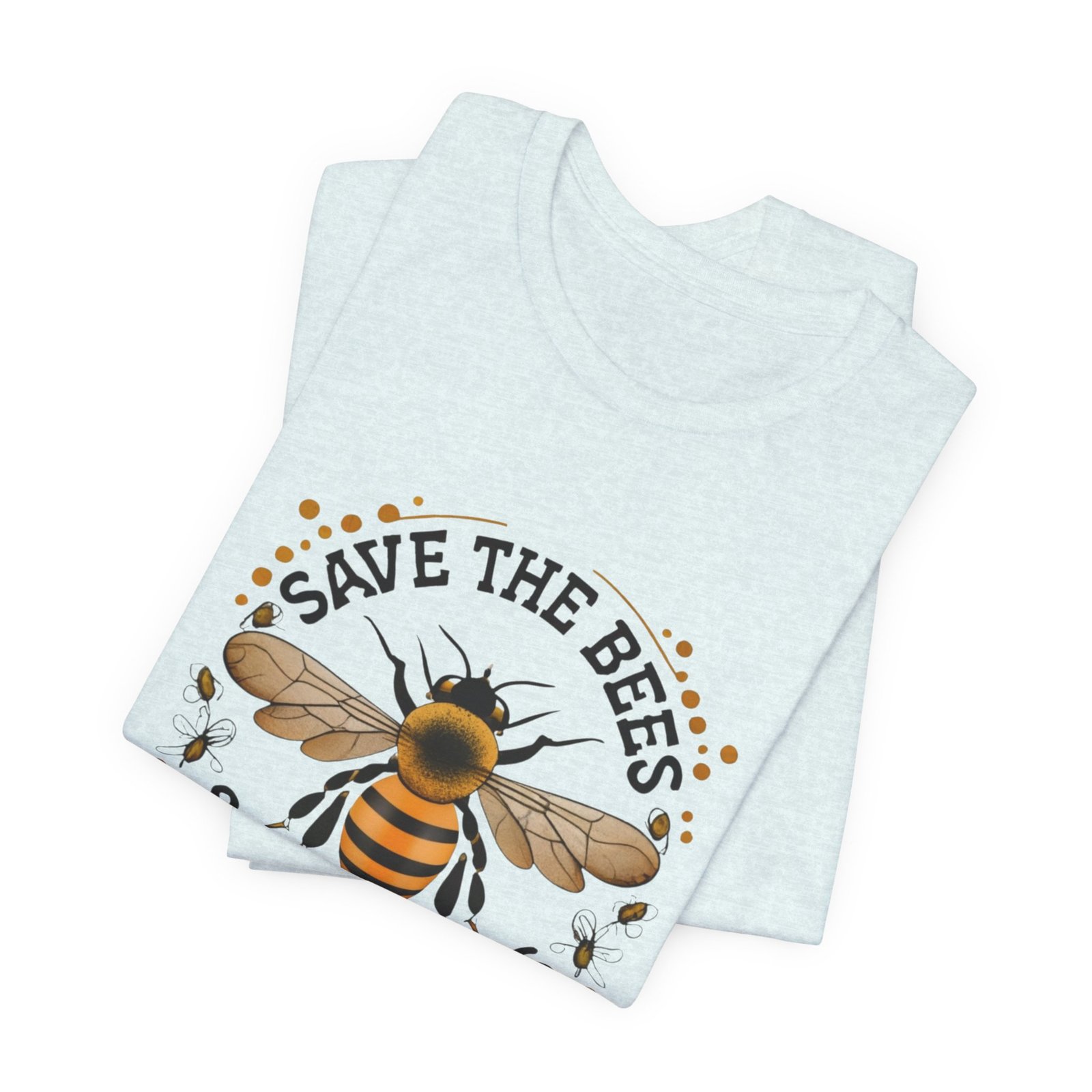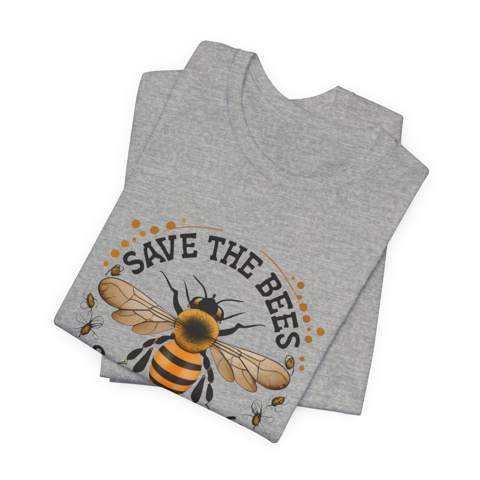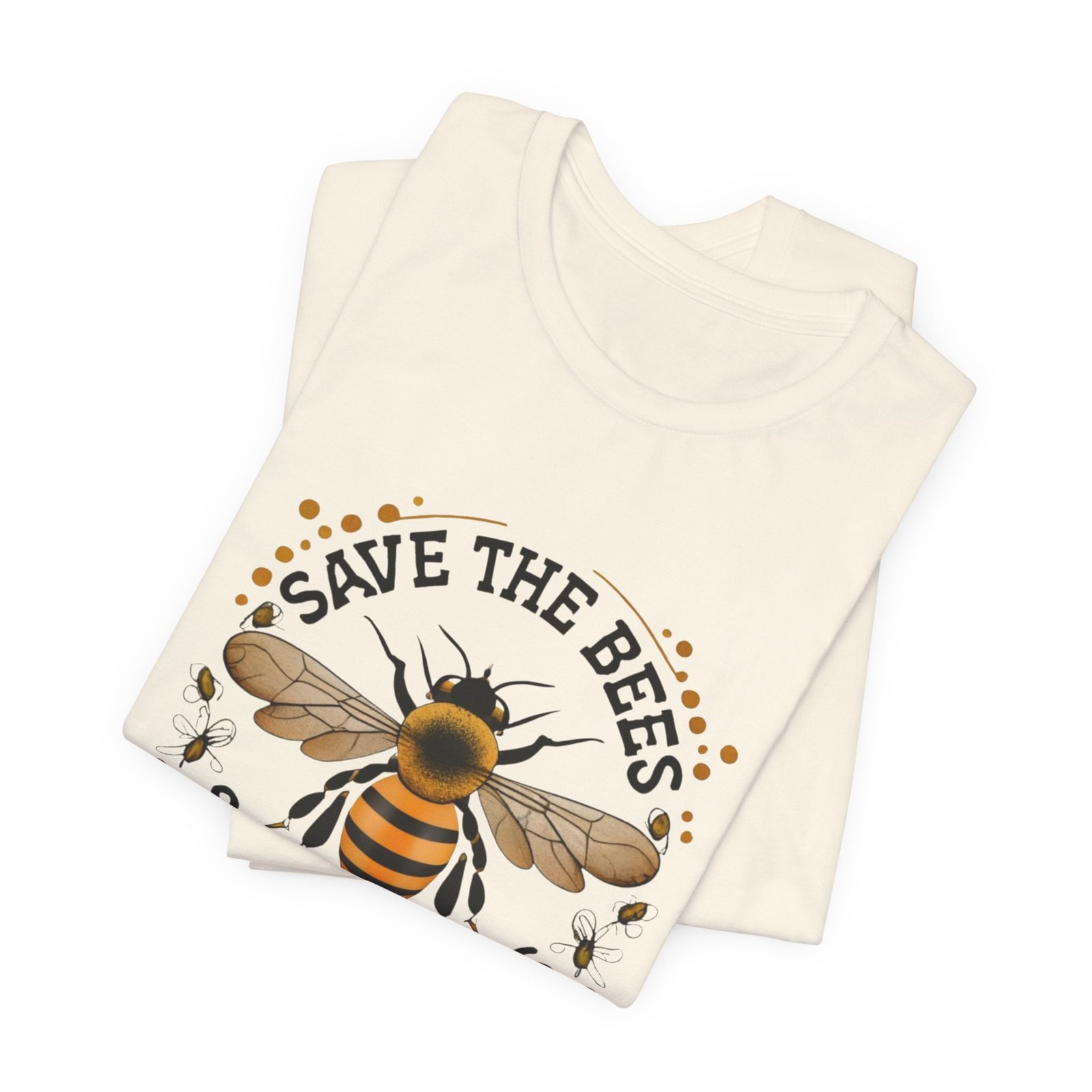 This lightweight tee carries a quiet but urgent message: protect the bees. Soft, breathable cotton sits close to the body without feeling tight, while the detailed bee illustration and hand-lettered circle of text read like a small declaration worn on the chest. Wear it on neighborhood walks, at farmers’ markets, or while tending a balcony garden — it blends into everyday life while starting conversations about pollinators. The look is simple and honest: a vintage-inspired bee with warm golds and muted browns, surrounded by tiny pollen dots. It layers easily under a cardigan or denim jacket and pairs with worn-in jeans or overalls for a lived-in, eco-minded vibe. Each shirt is made from responsibly produced materials and features thoughtful construction so the message — and the fit — stays true through regular wear.
