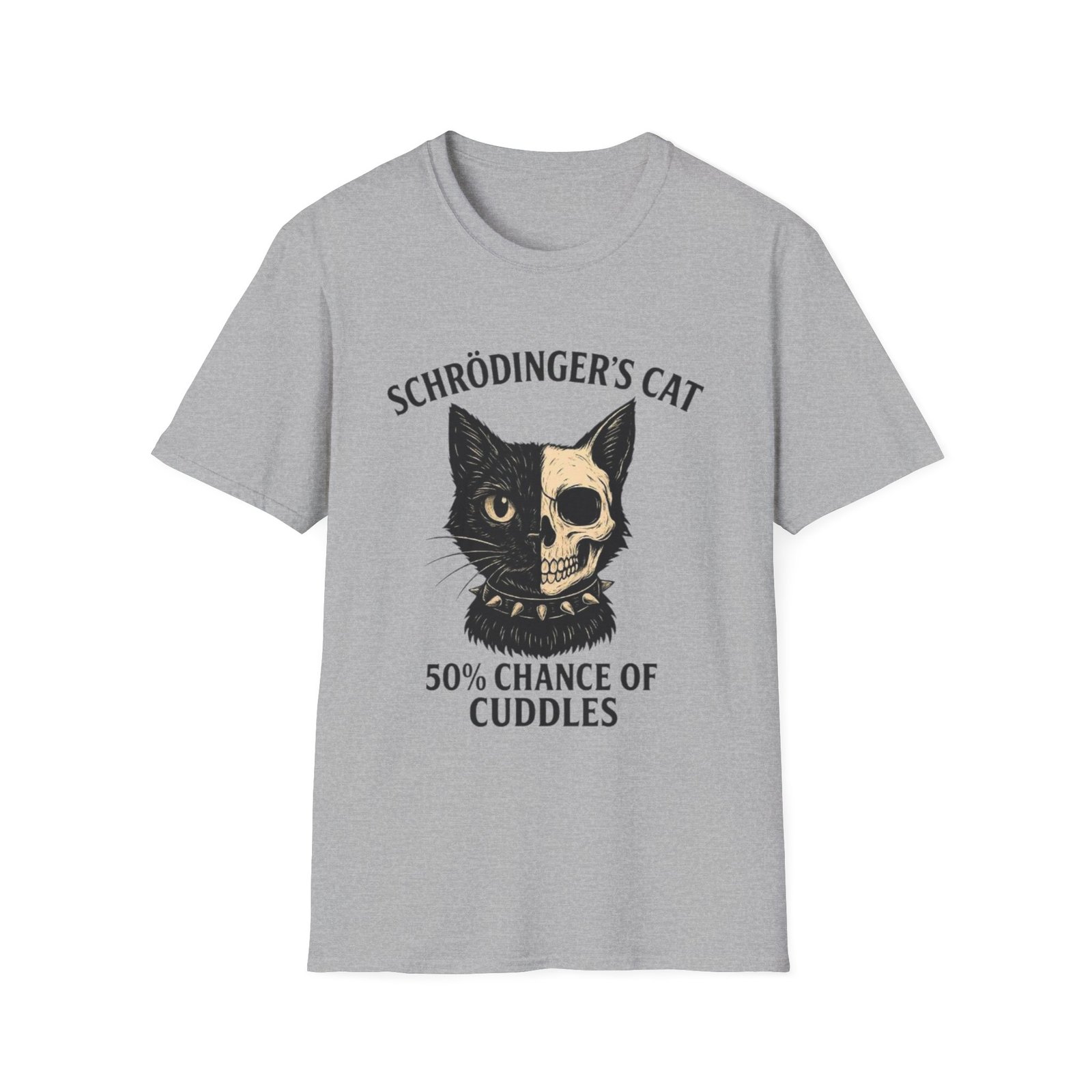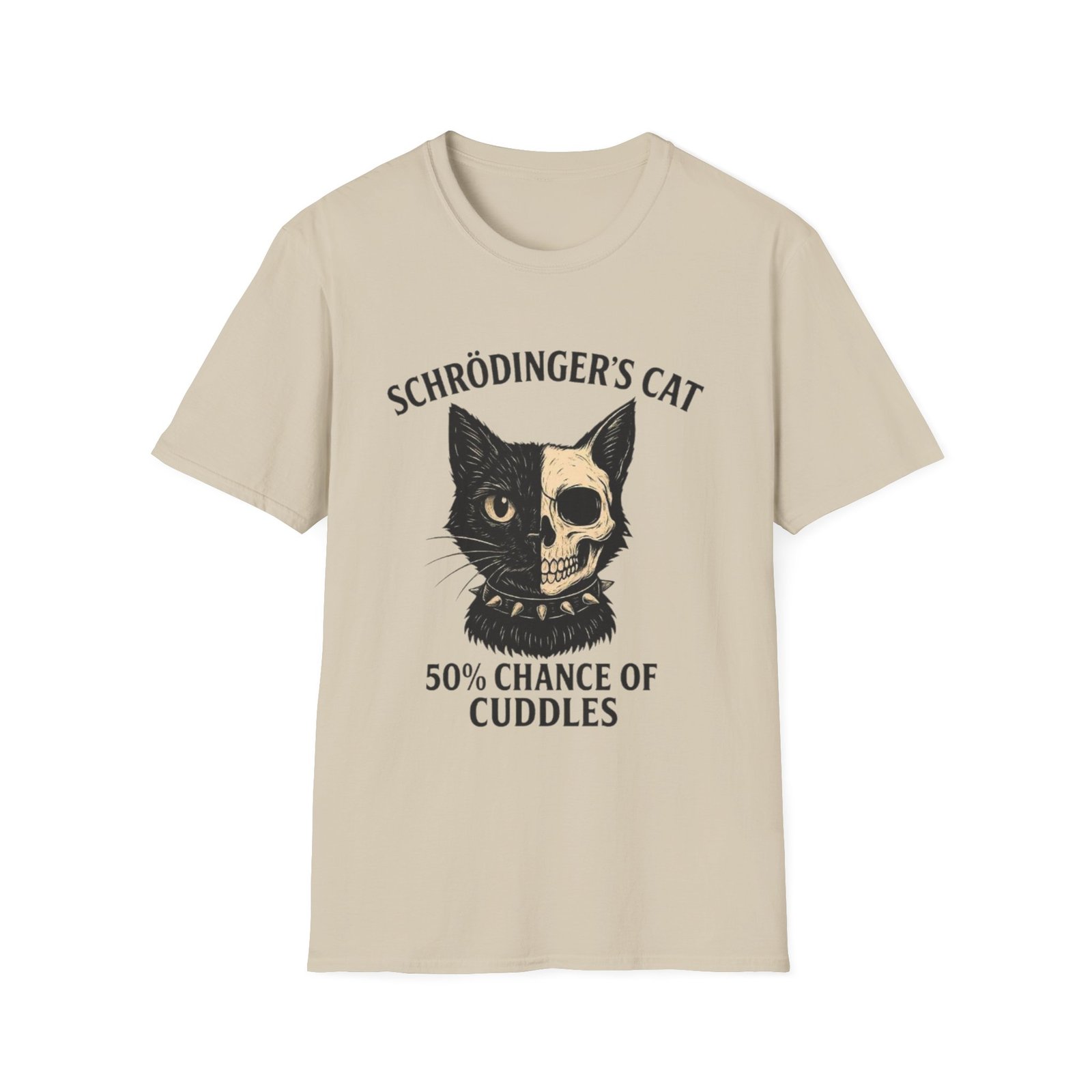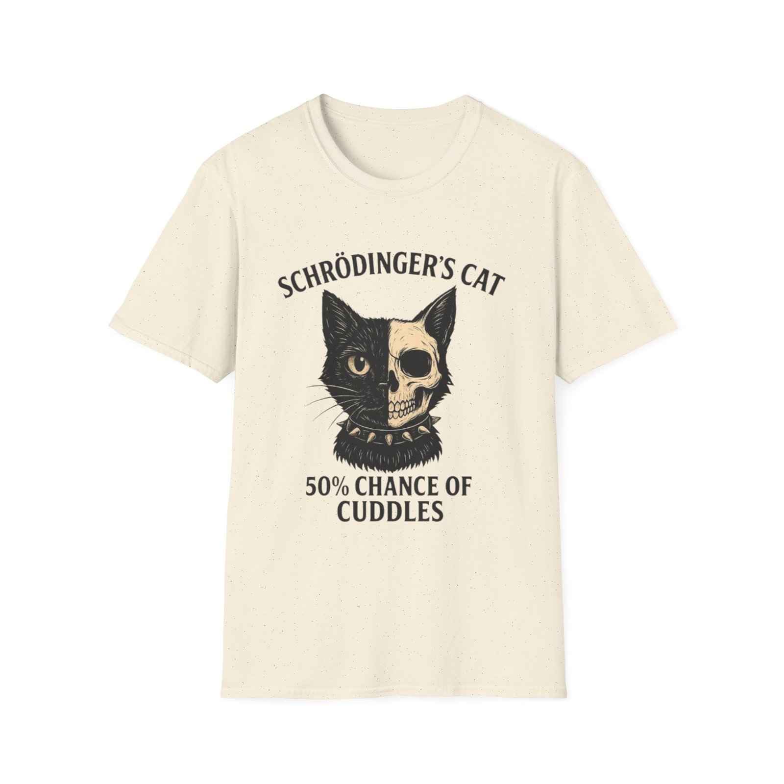 This lightweight crew tee pairs soft, breathable cotton with a cheeky, science-minded illustration that’s equal parts clever and cozy. The front features a vintage-style cat graphic—half feline face, half skull—above the line “Schrödinger’s Cat” and “50% Chance of Cuddles.” It feels like the kind of shirt you reach for on relaxed weekends, study sessions, or whenever you want to wear your humor and curiosity on your sleeve. The neutral, slightly flecked “Natural” color keeps the design grounded and wearable, while the classic fit and tear-away label make it comfortable for all-day wear. Ethically sourced ring-spun cotton and reinforced stitching give it a lived-in softness that only improves with time.