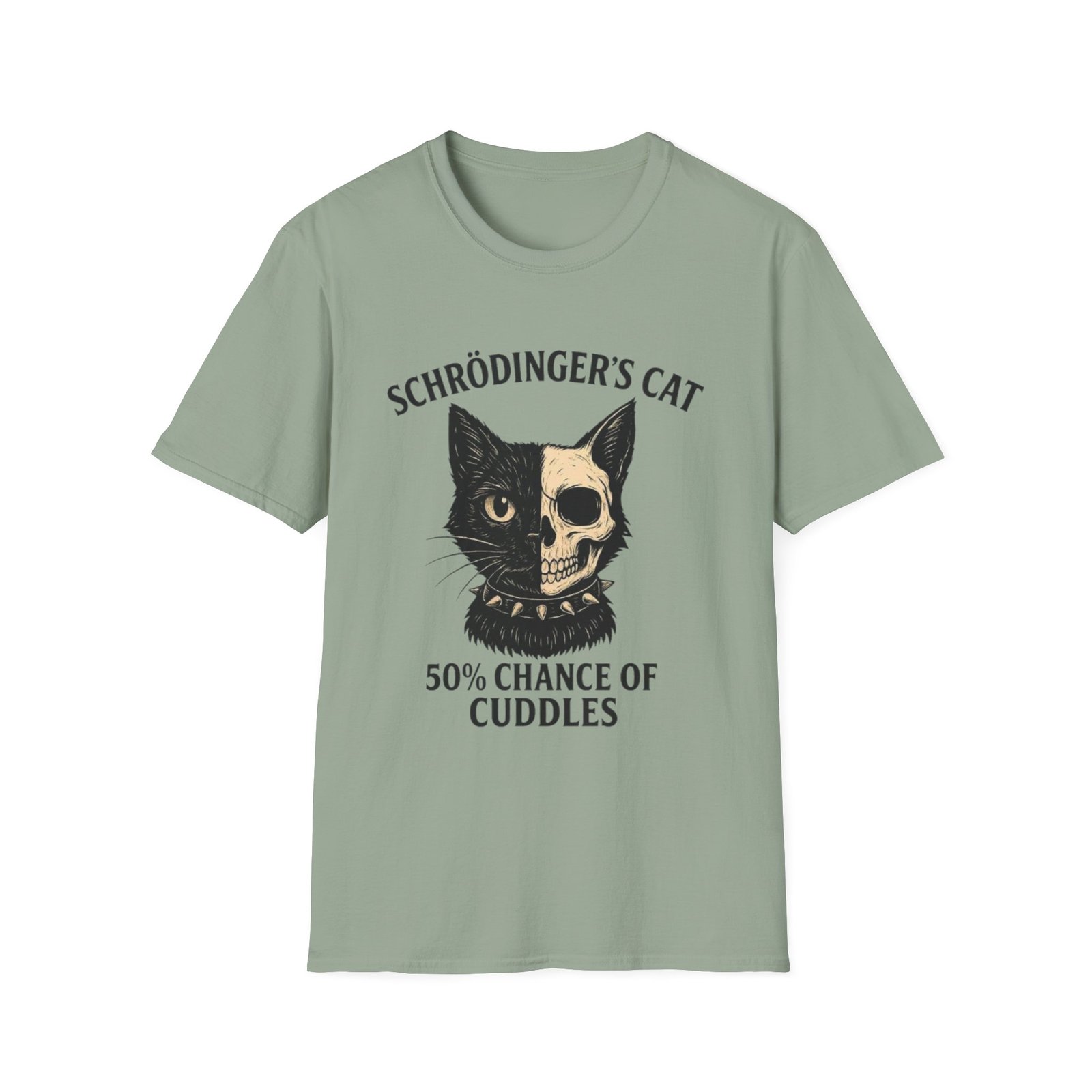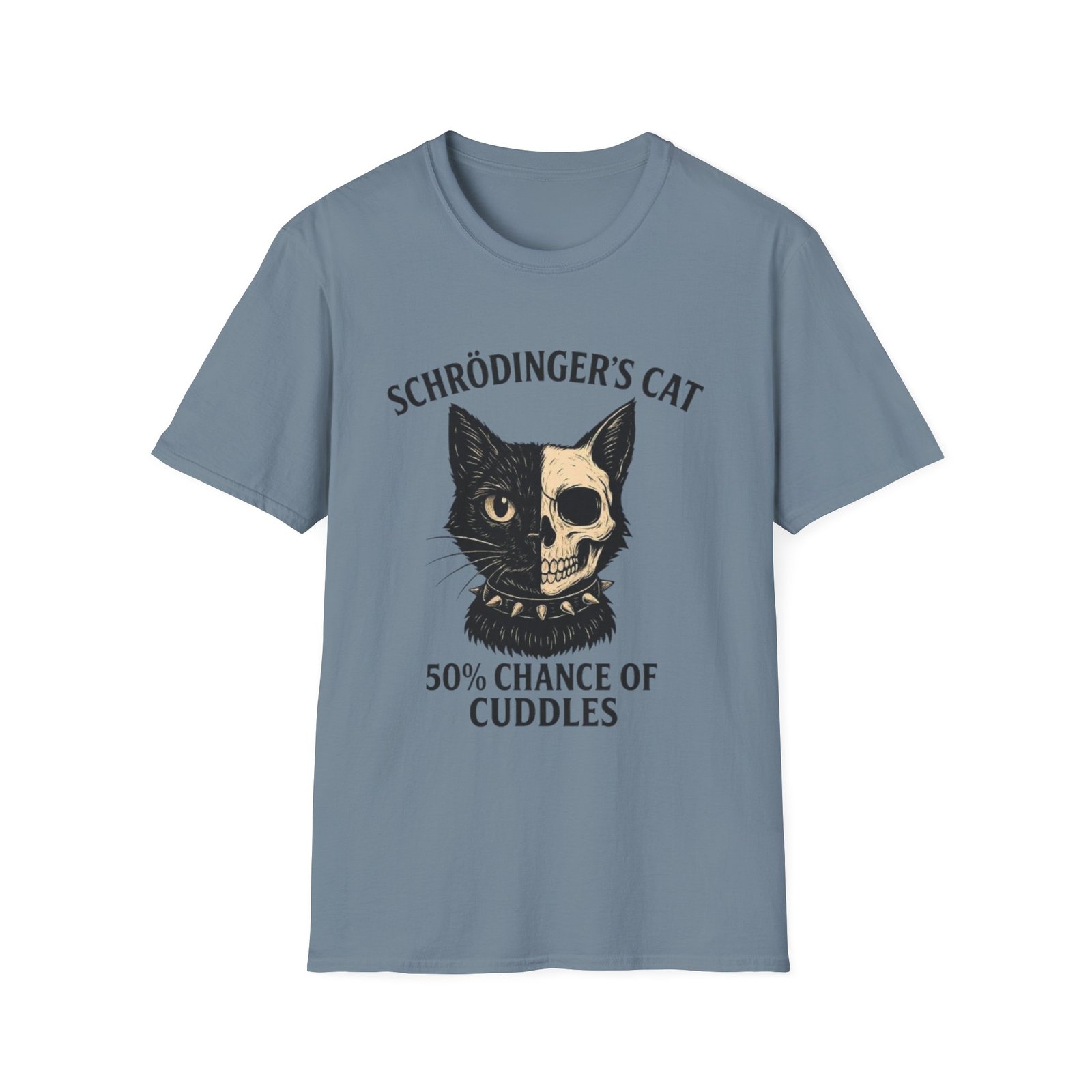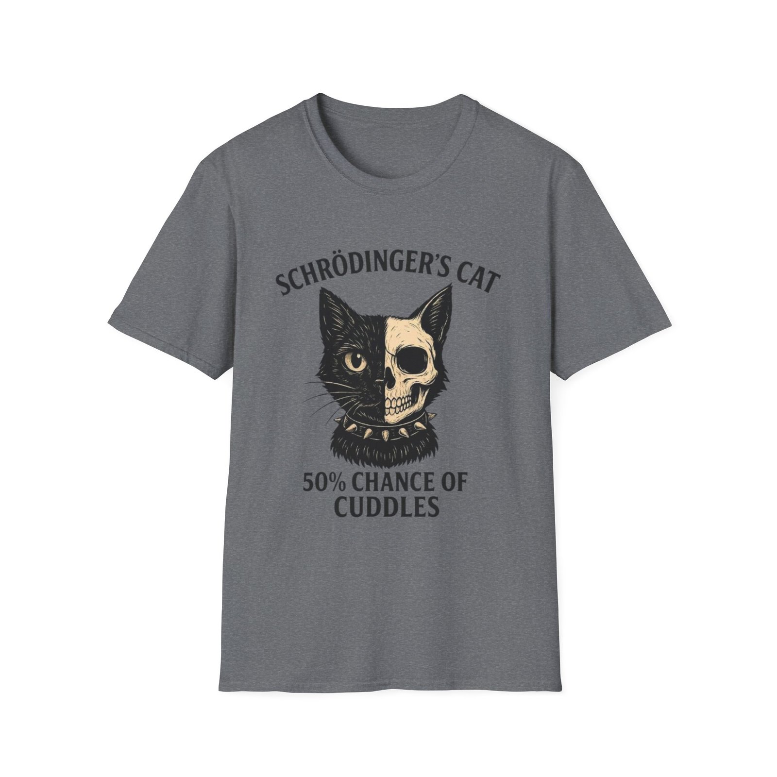 This lightweight crew tee pairs soft, breathable cotton with a cheeky, science-minded illustration that’s equal parts clever and cozy. The front features a vintage-style cat graphic—half feline face, half skull—above the line “Schrödinger’s Cat” and “50% Chance of Cuddles.” It feels like the kind of shirt you reach for on relaxed weekends, study sessions, or whenever you want to wear your humor and curiosity on your sleeve. The neutral, slightly flecked “Natural” color keeps the design grounded and wearable, while the classic fit and tear-away label make it comfortable for all-day wear. Ethically sourced ring-spun cotton and reinforced stitching give it a lived-in softness that only improves with time.
