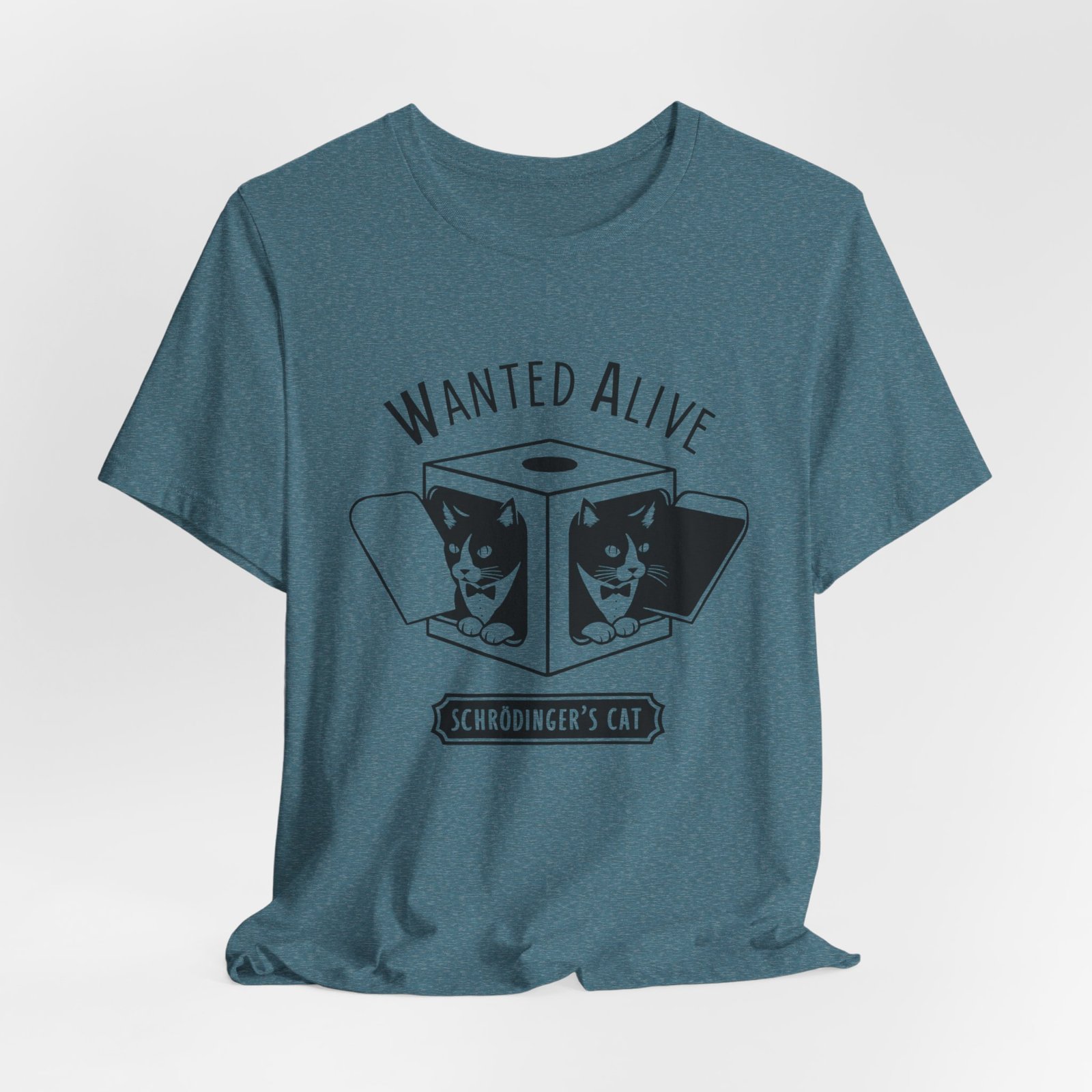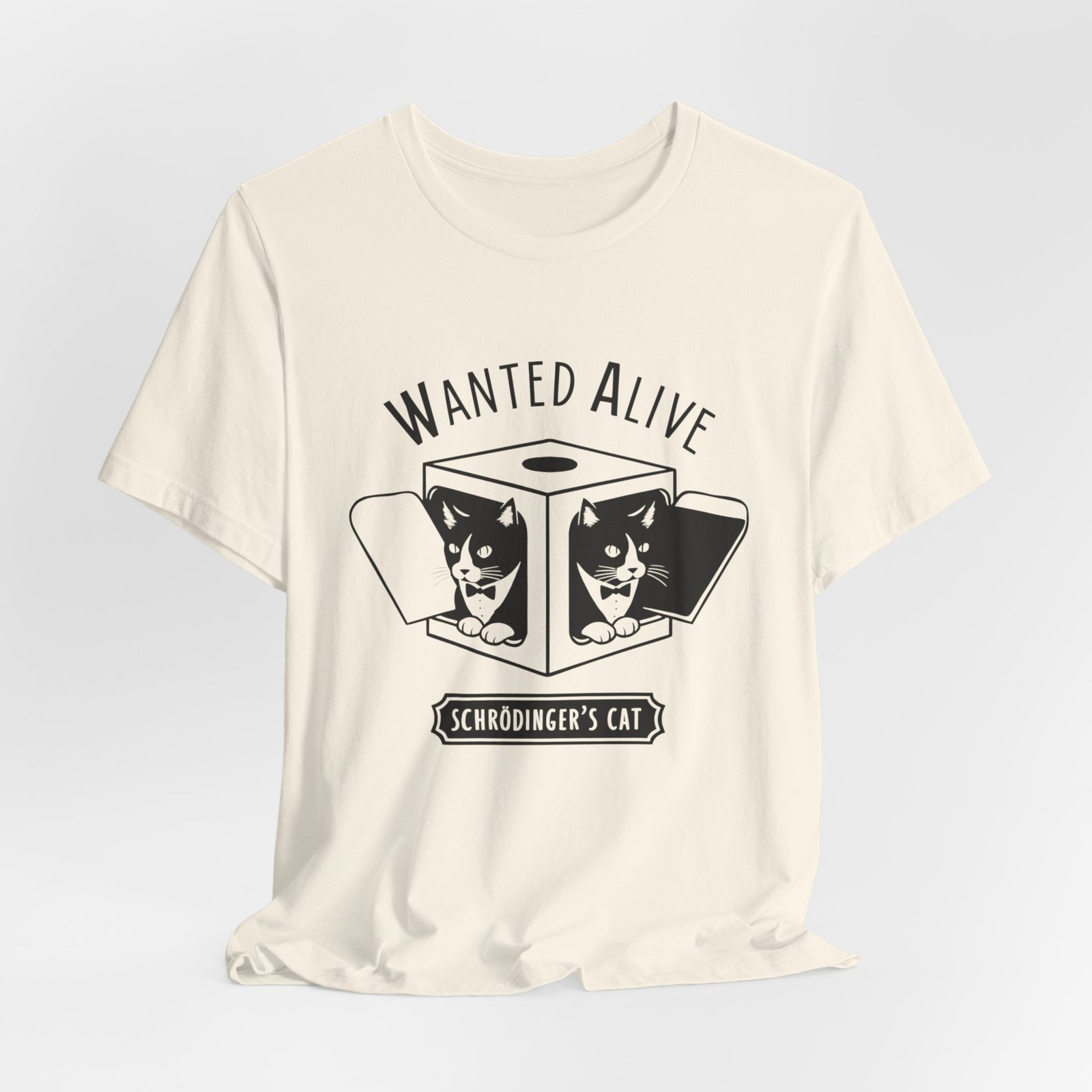 Schrödinger’s Cat Unisex Jersey Tee, Funny Science Shirt, Gift for Cat Lovers, Geeky T-Shirt, Nature Lover Apparel, Cute Cat Design