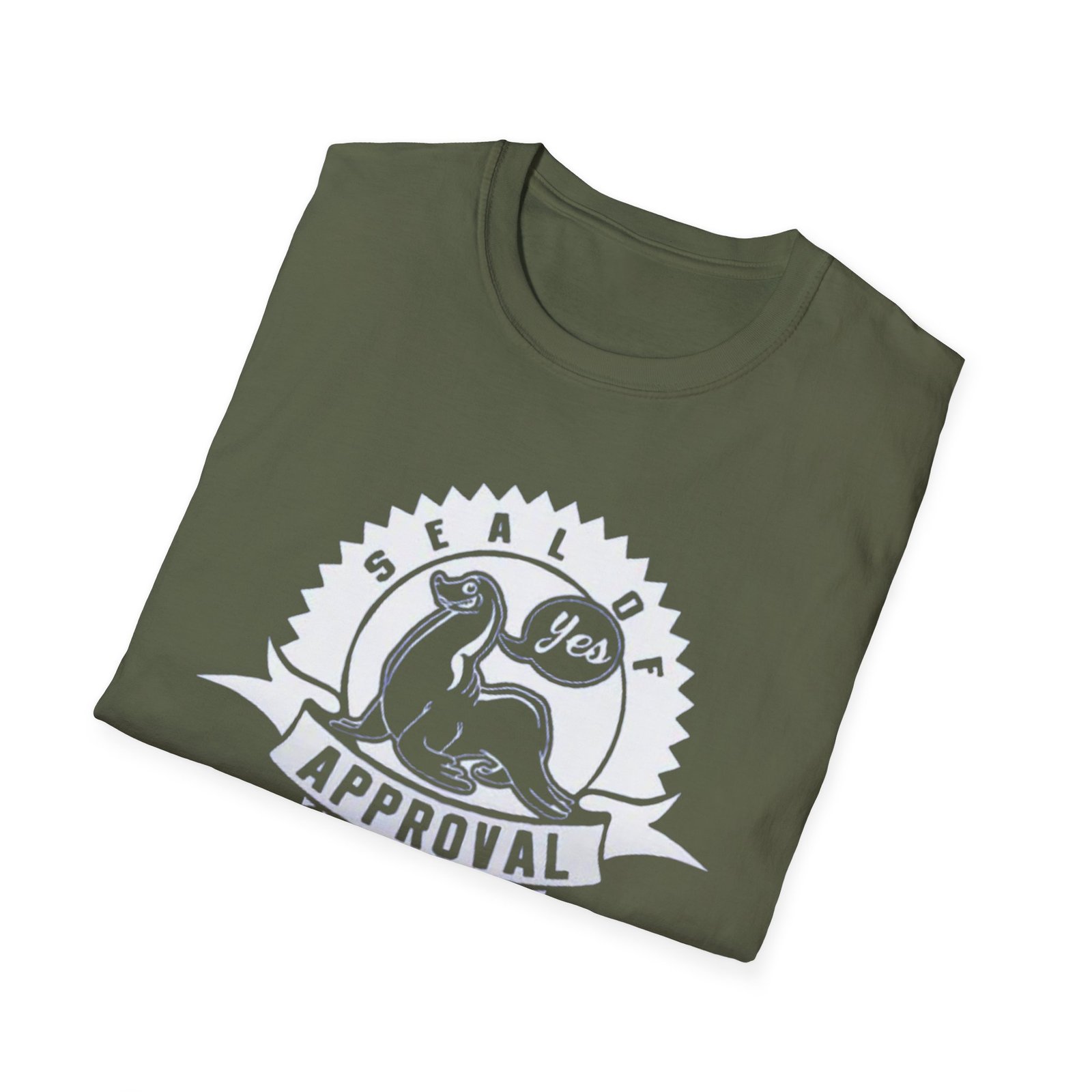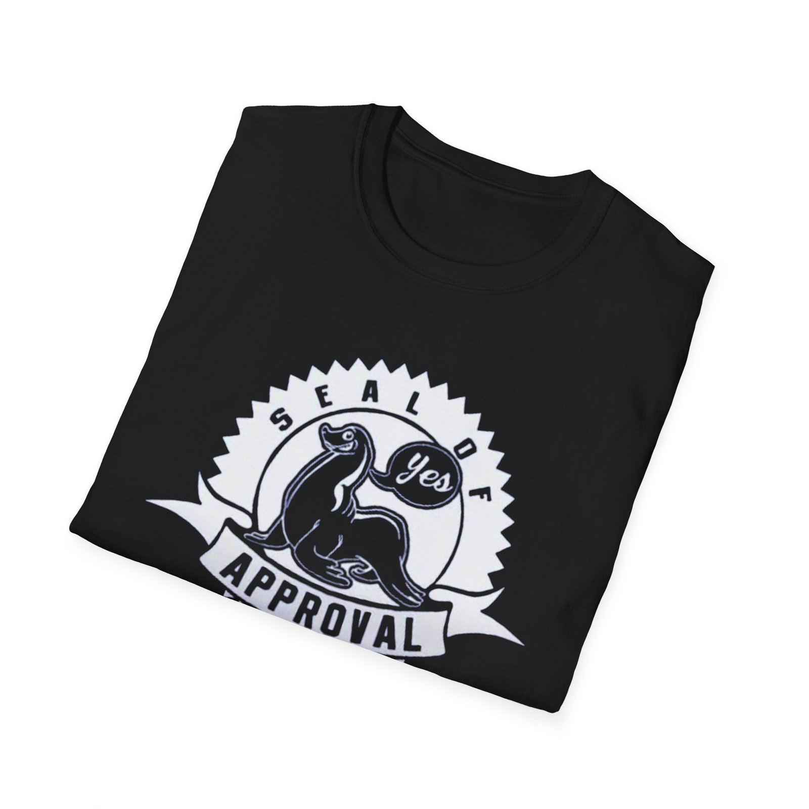 This black crewneck tee carries a bold, slightly nostalgic badge-style graphic — a proud skunk illustration circled by a jagged seal and a banner that reads “Approval.” It feels like a wink and a statement at once: playful, a little rebellious, and quietly confident. The lightweight, smooth cotton drapes easily and keeps the print crisp, so the graphic becomes part of everyday wear — layered under a flannel for weekend wanderings, worn solo for city strolls, or paired with worn denim for a relaxed, offbeat look. It’s for people who enjoy apparel that tells a small story without shouting: sly humor, subtle attitude, and dependable comfort stitched into one shirt.