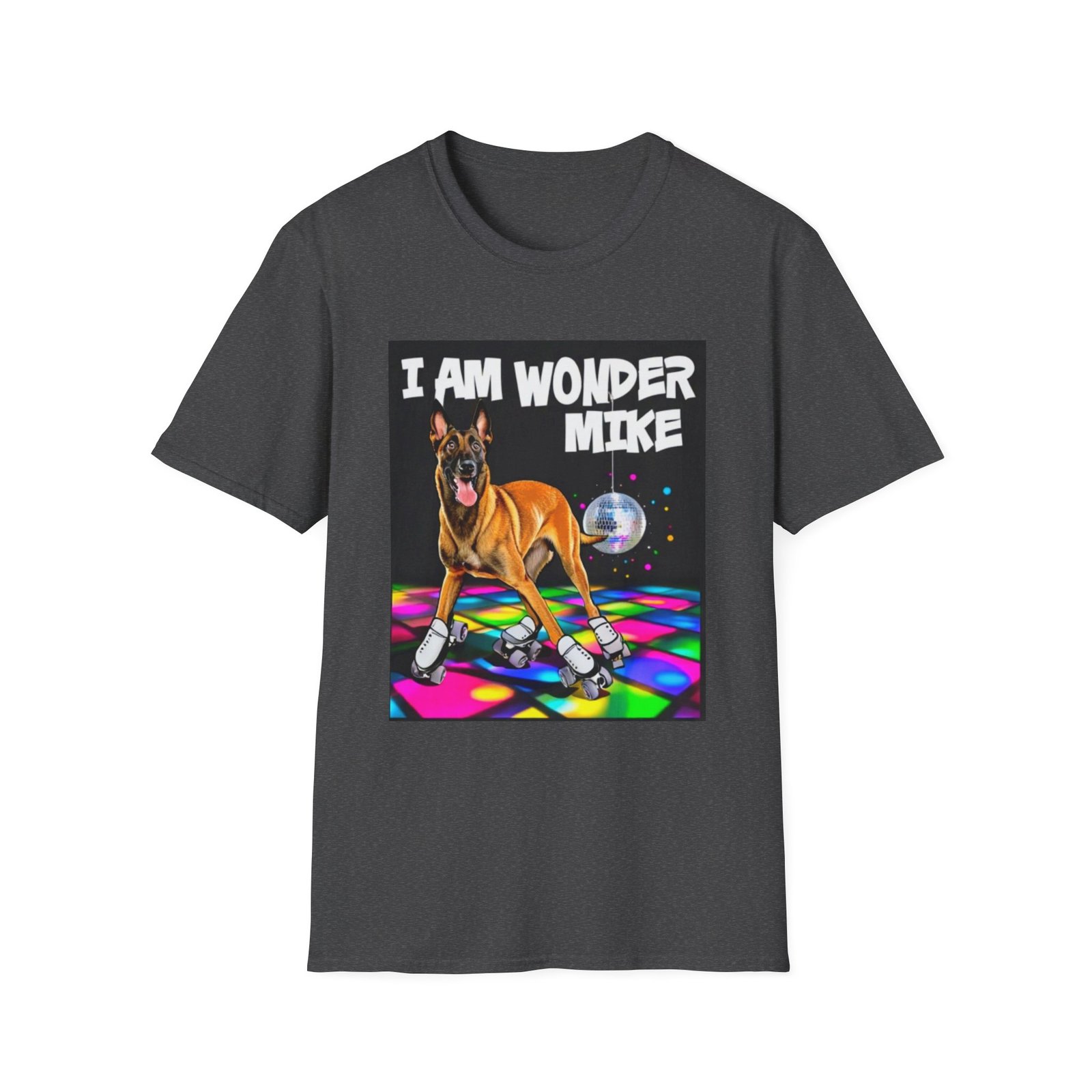 Slide into something playful and full of personality. This lightweight crewneck features a vivid disco-scene print of a joyful dog on skates beneath a shimmering mirror ball — bold colors pop against the black fabric for a fun, retro vibe. Wear it to bring a smile on casual days, at dog-friendly meetups, or when you want to add a splash of nostalgia to your outfit. The soft, smooth cotton feels breathable and moves easily with you, so the tee sits comfortably whether you’re dancing, walking the park, or lounging with friends.