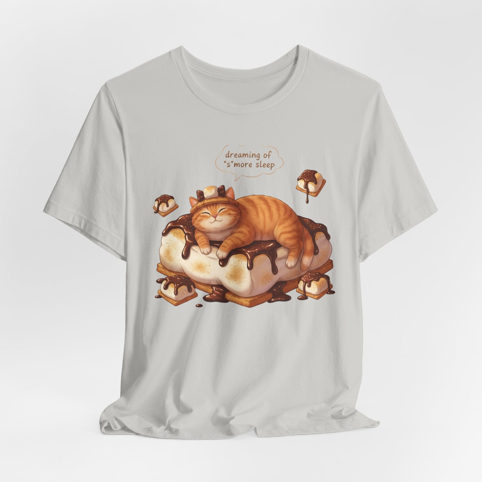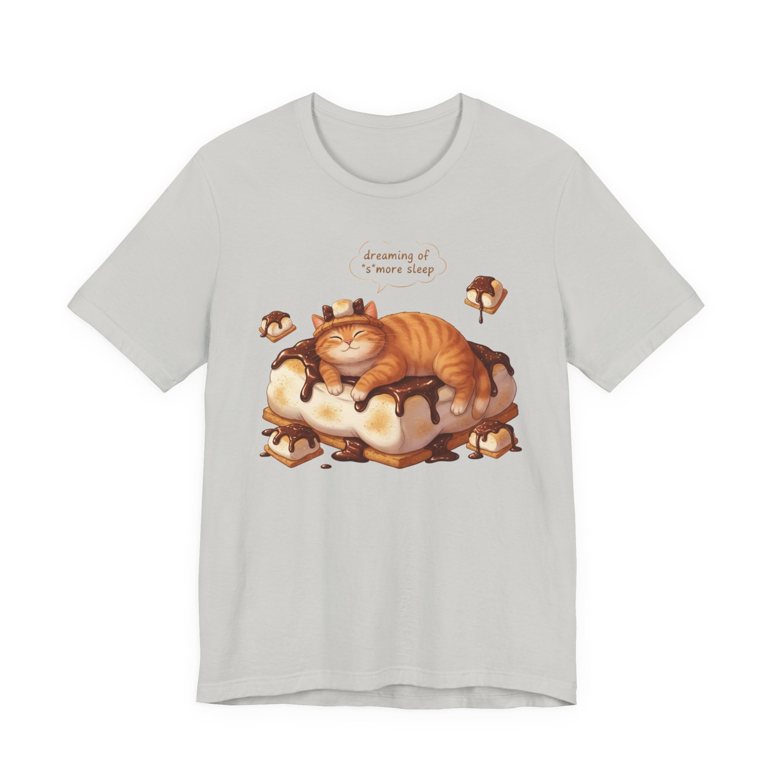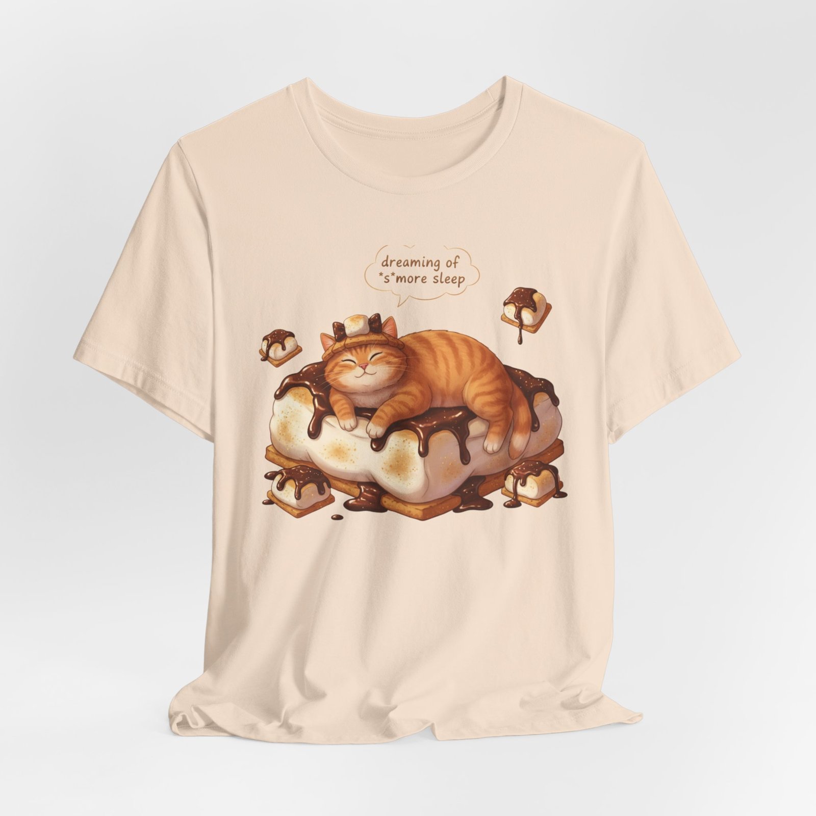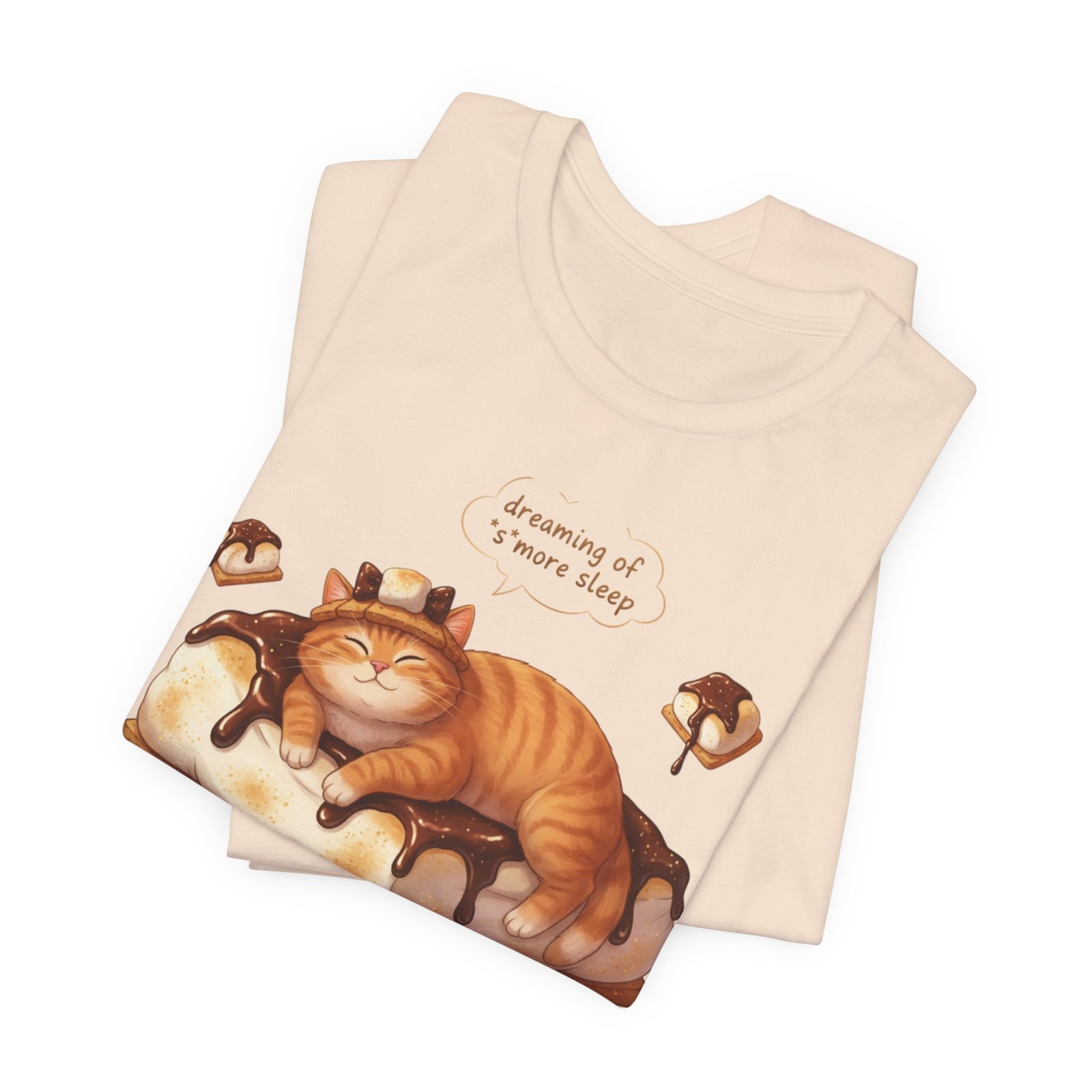 Sink into cozy afternoons with this lightweight cotton tee that wears like a warm, familiar hug. The front art shows a blissful orange tabby curled on a gooey marshmallow square, with drips of chocolate and tiny toasted bits floating around—an image that reads like a sleepy snack-daydream. Soft, breathable Airlume combed cotton keeps the shirt airy for lounging or layering. The crew neckline and retail fit keep the look tidy while letting the illustration take center stage. Wear it when you want a gentle, whimsical moment—reading by a window, sipping tea after a long walk, or sharing a quiet laugh with friends who love cats and sweet comfort.