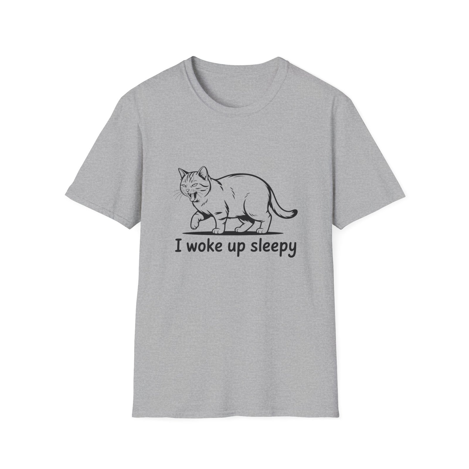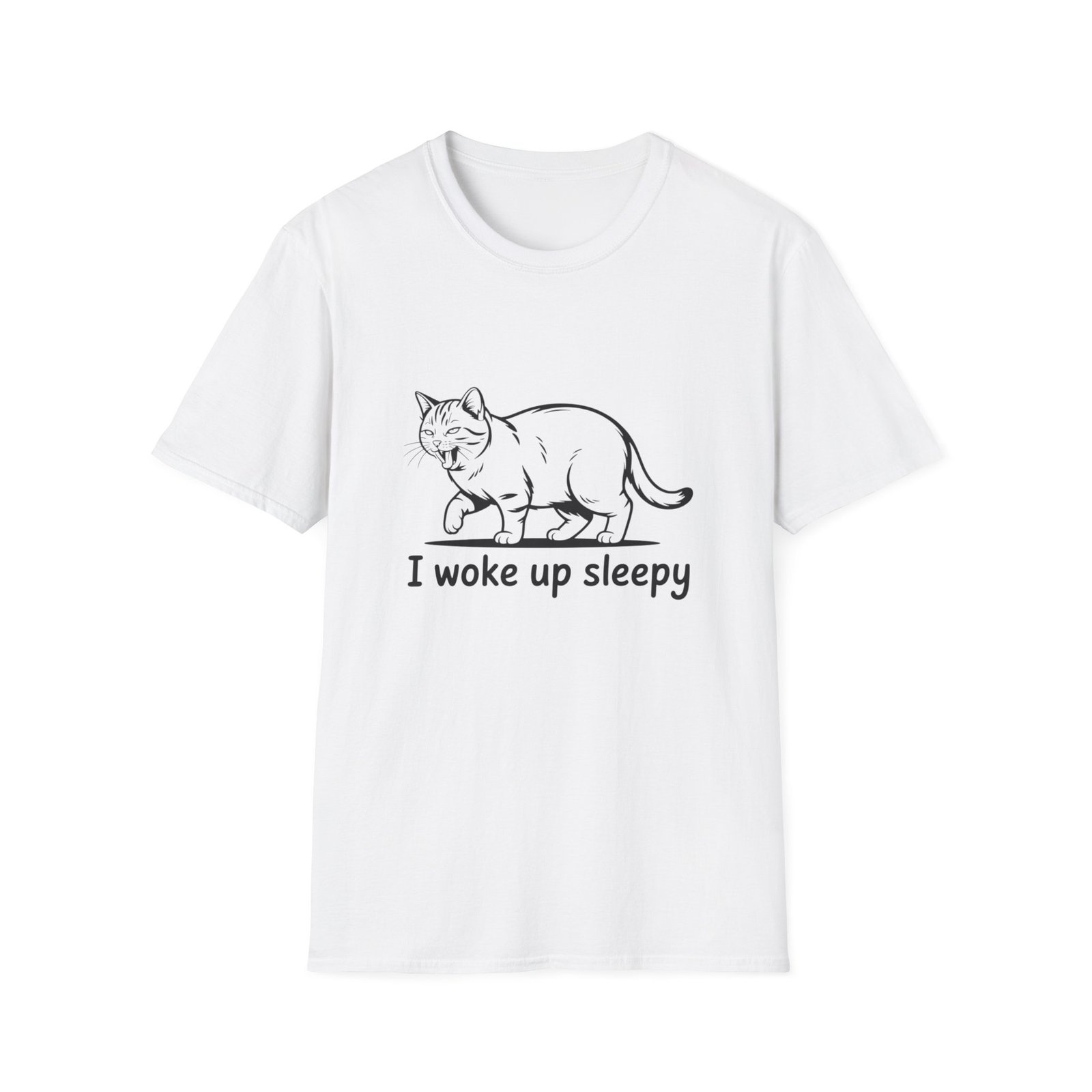 A lightweight, ring-spun cotton tee that speaks softly to slow mornings and quiet comforts. This classic crewneck features a simple line-drawn cat mid-stretch above the phrase “I woke up sleepy,” giving the shirt a gentle, relatable humor. The smooth, print-friendly fabric and clean tubular construction keep the silhouette neat while the ribbed collar and shoulder tape preserve shape through repeated wear. Wear it for lazy weekends, low-key coffee runs, or cozy nights in — it layers easily and feels familiar from the first wash.