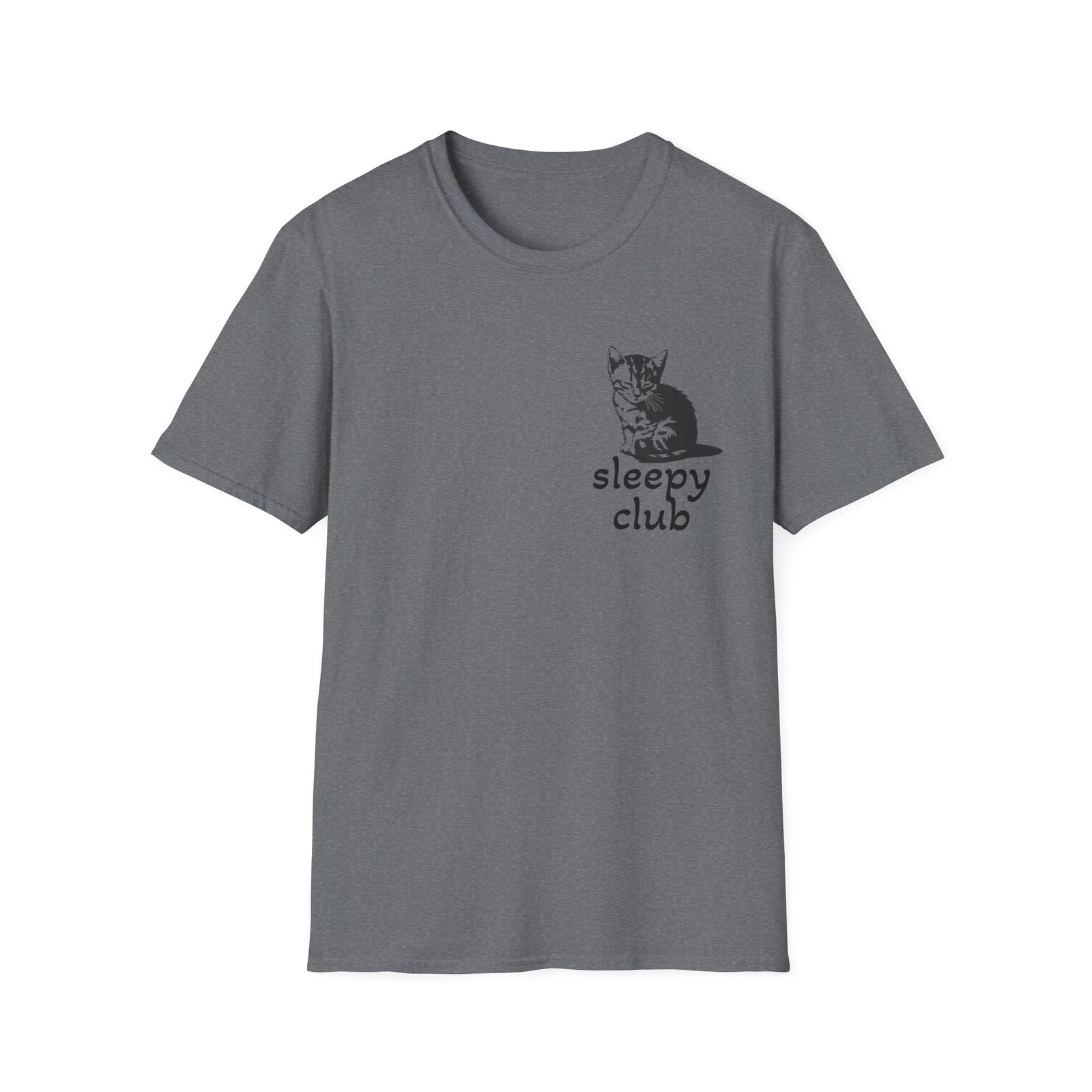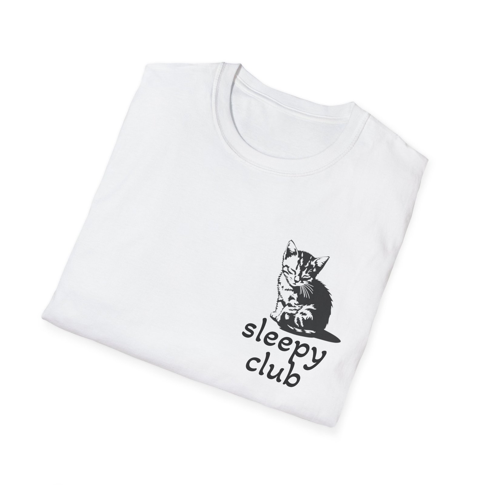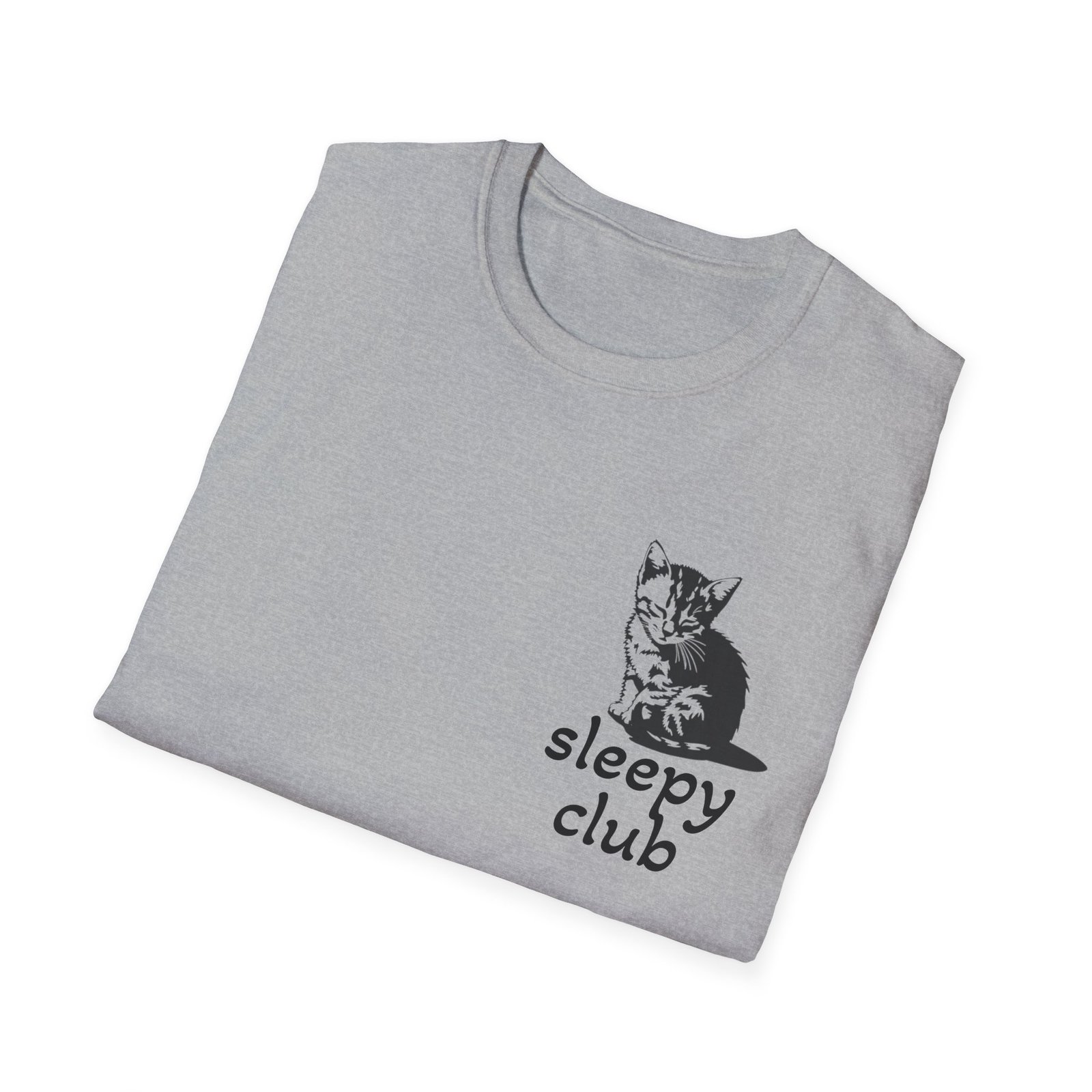 A funny cat lover t-shirt perfect for those who are part of the sleepy club. This softstyle unisex t-shirt is made from durable and smooth fabric, making it ideal for everyday wear. The classic fit and crew neckline offer a versatile style that can be worn for any occasion.
