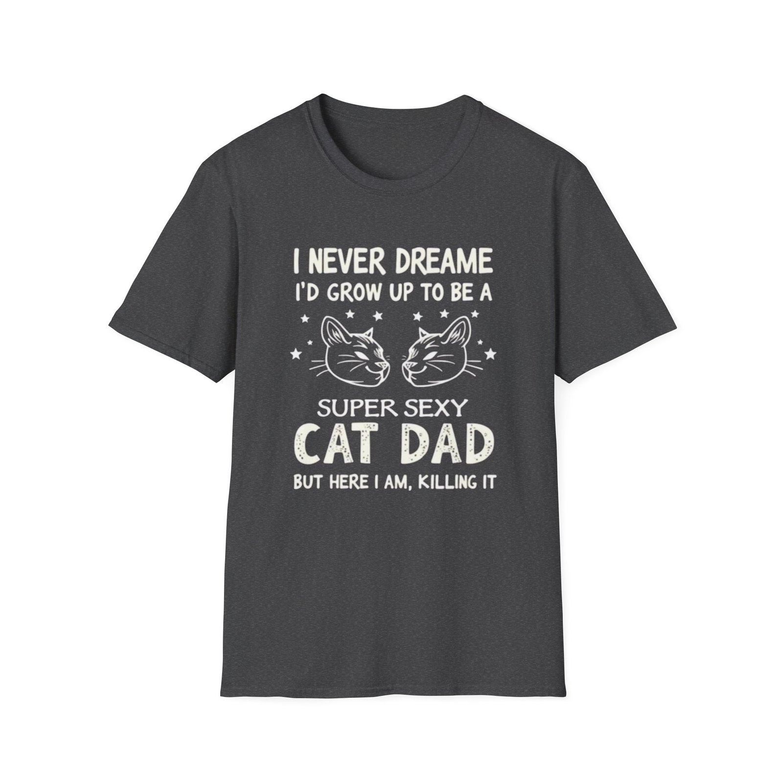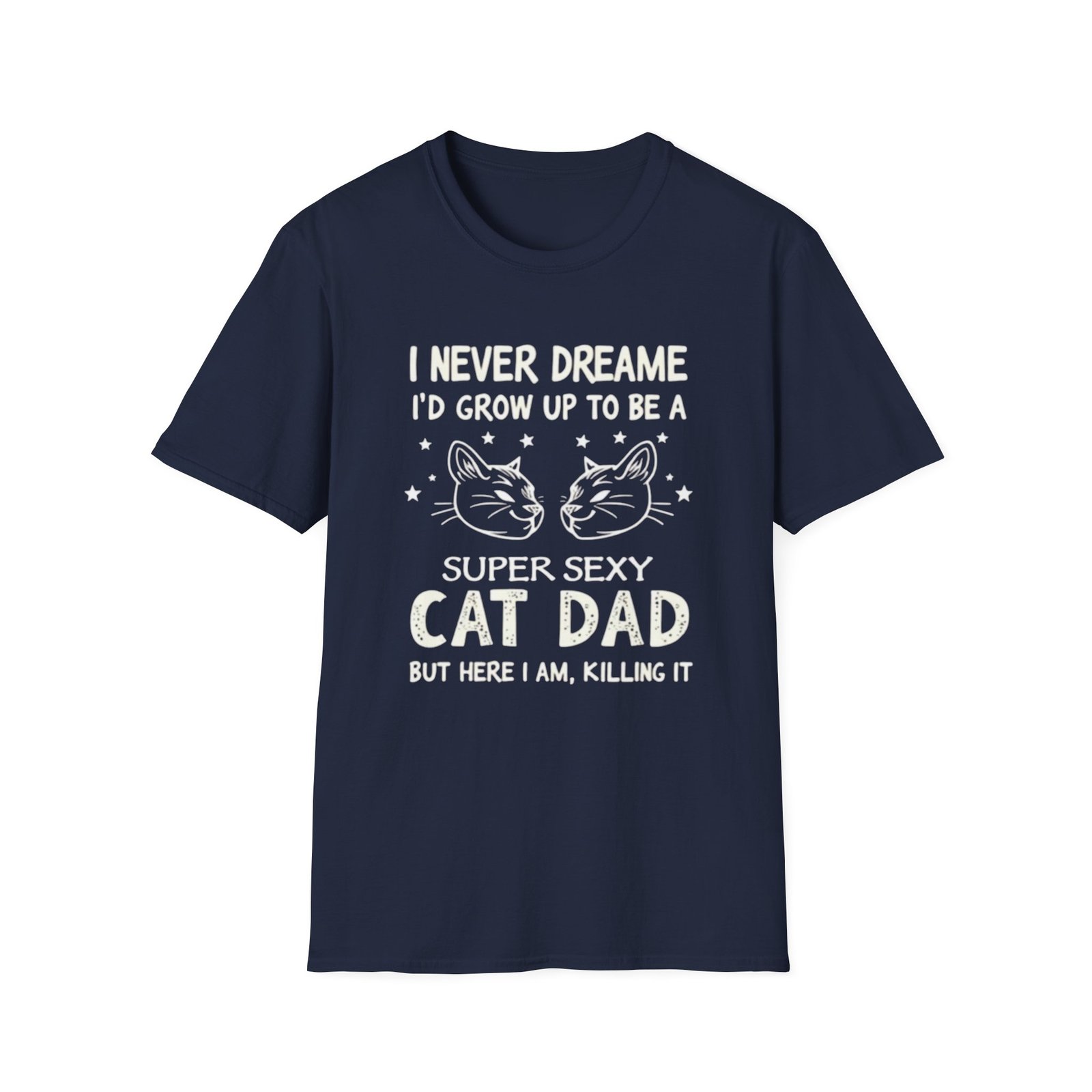 This soft, everyday tee brings a playful, confident voice to anyone who proudly identifies as a cat dad. The lightweight, ring-spun cotton feels gentle against skin and drapes cleanly thanks to a classic crew neckline and straightforward fit. A bold, hand-lettered-style front graphic pairs cat illustrations with cheeky copy that reads like a private joke shared between pet lovers. Wear it at home during slow mornings with your cat, out to a casual meet-up with fellow pet owners, or layered under a jacket when you want to make people smile without saying a word. It’s breathable, durable, and made with thoughtful details—like a tear-away label and reinforced shoulder tape—so it stays comfortable even after many washes.