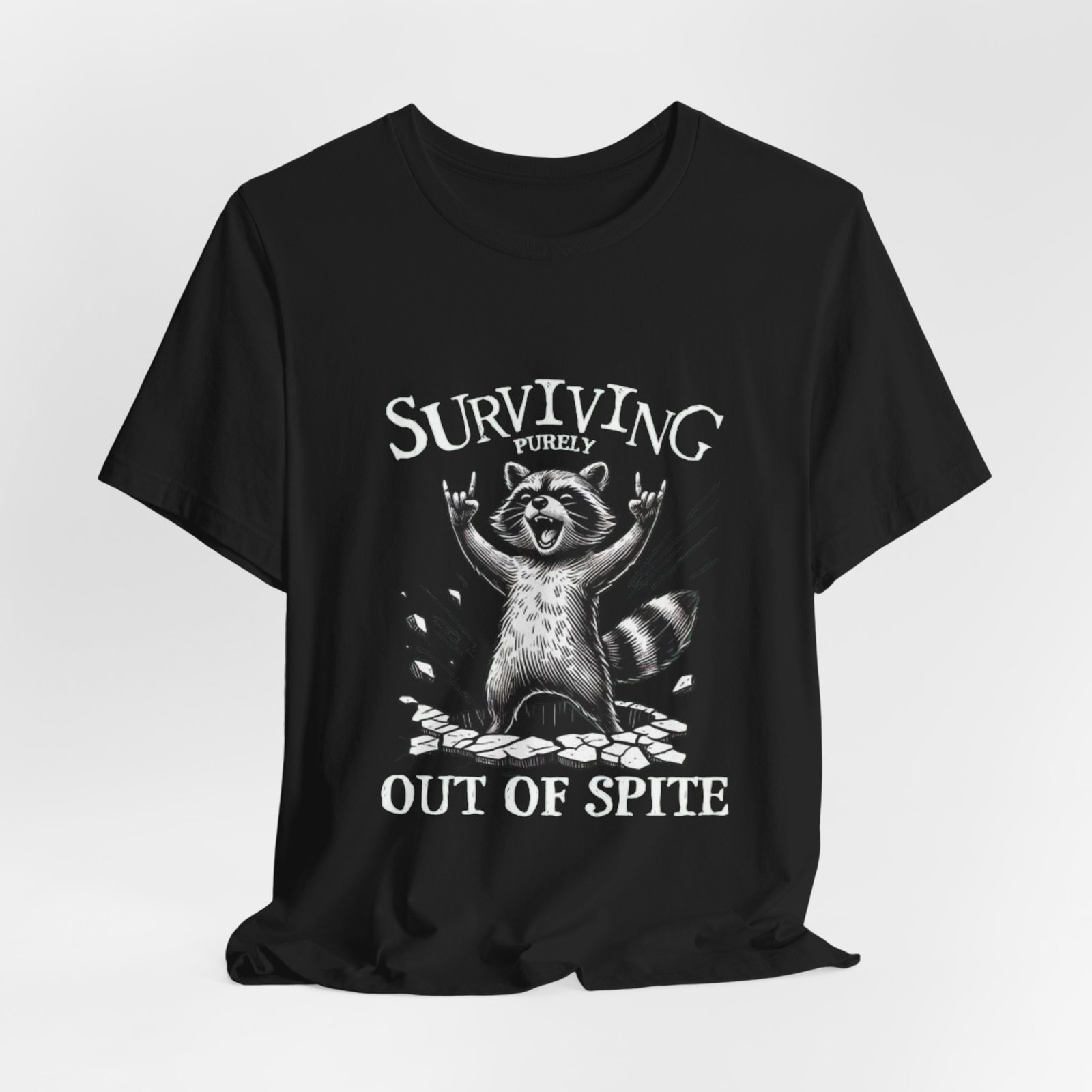 Surviving Purely Out of Spite raccoon tee | Graphic T-Shirt