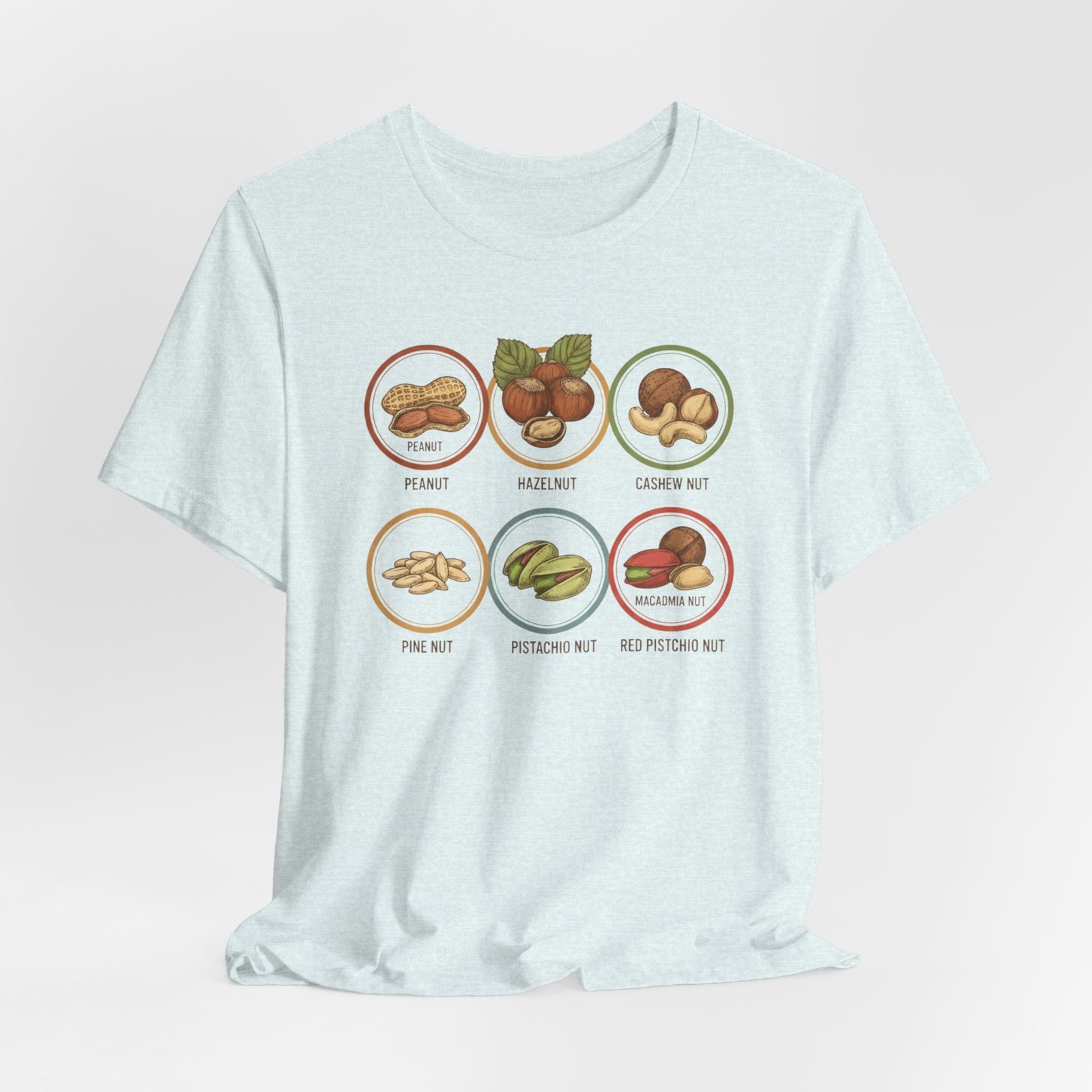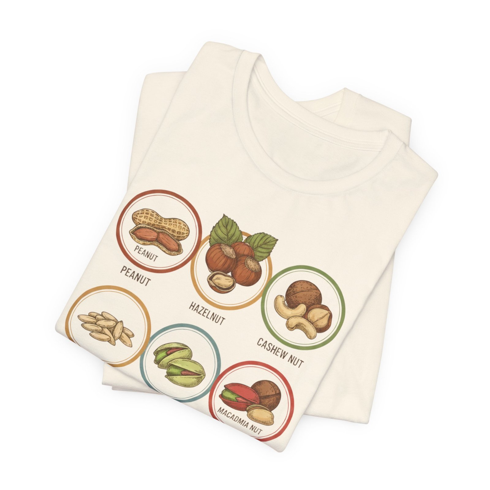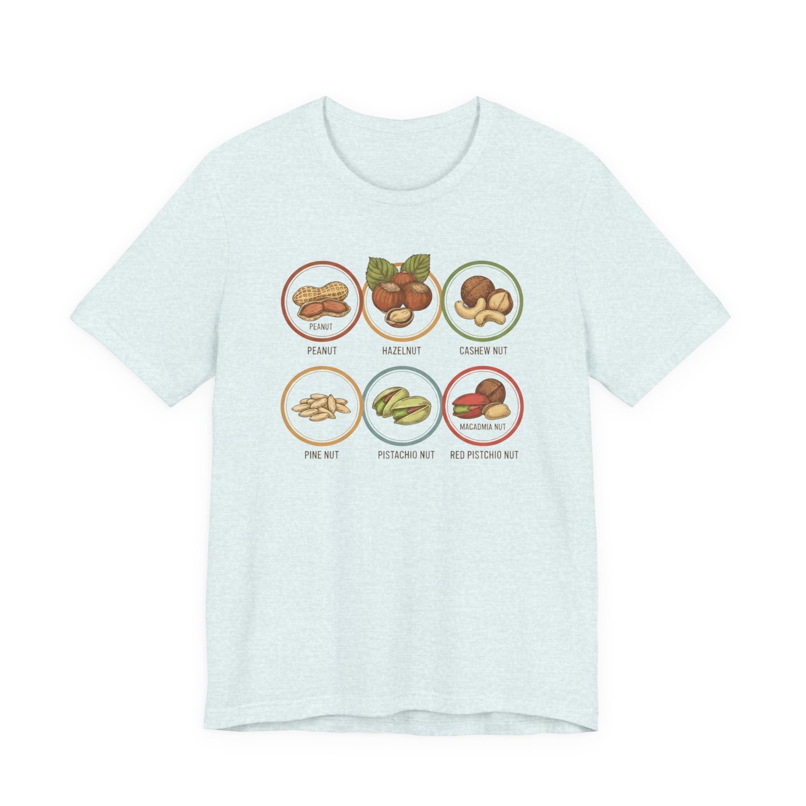 Lightweight, breathable tee with a playful, food-themed front print that celebrates favorite snacks and ingredients. The soft Airlume combed and ring-spun cotton feels gentle against skin and breathes easily — great for layering on cool mornings or wearing solo on warm afternoons. The ribbed crew neck, shoulder tape and side seams keep the shirt looking sharp through repeated wear. Printed with crisp DTF/DTG methods that preserve color and fine detail, the design sits centered on the chest for a casual, wearable look that slips into everyday wardrobes and relaxed gatherings.