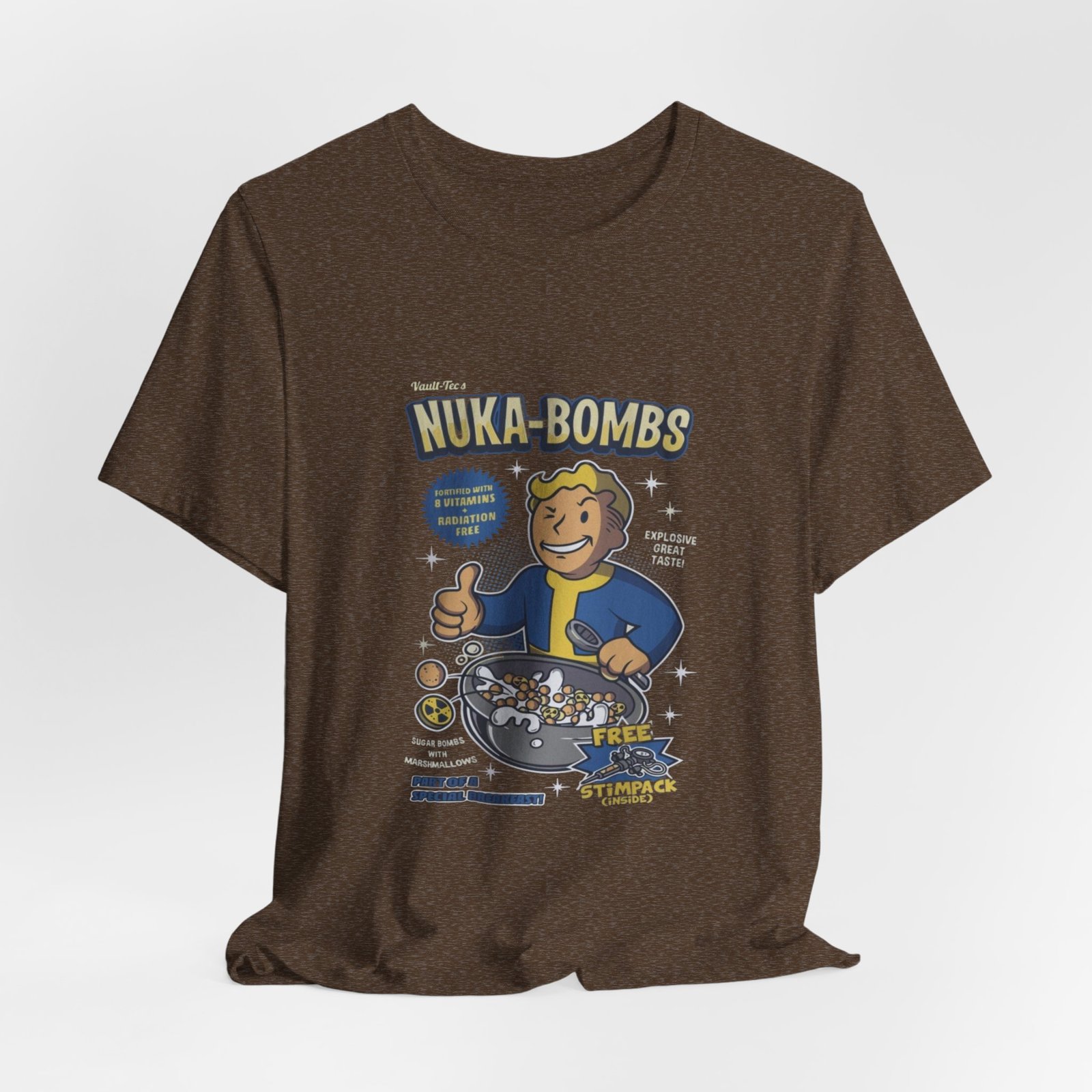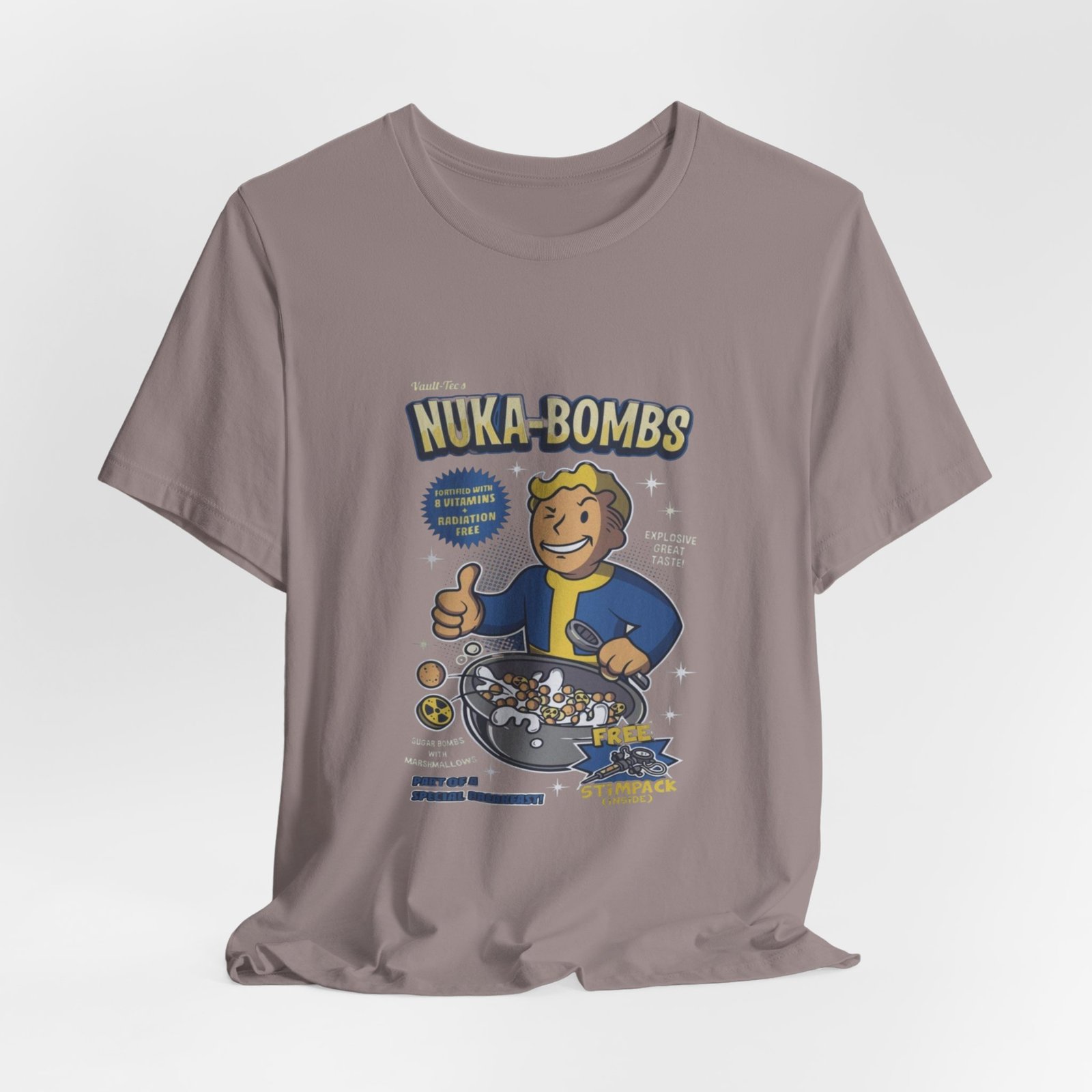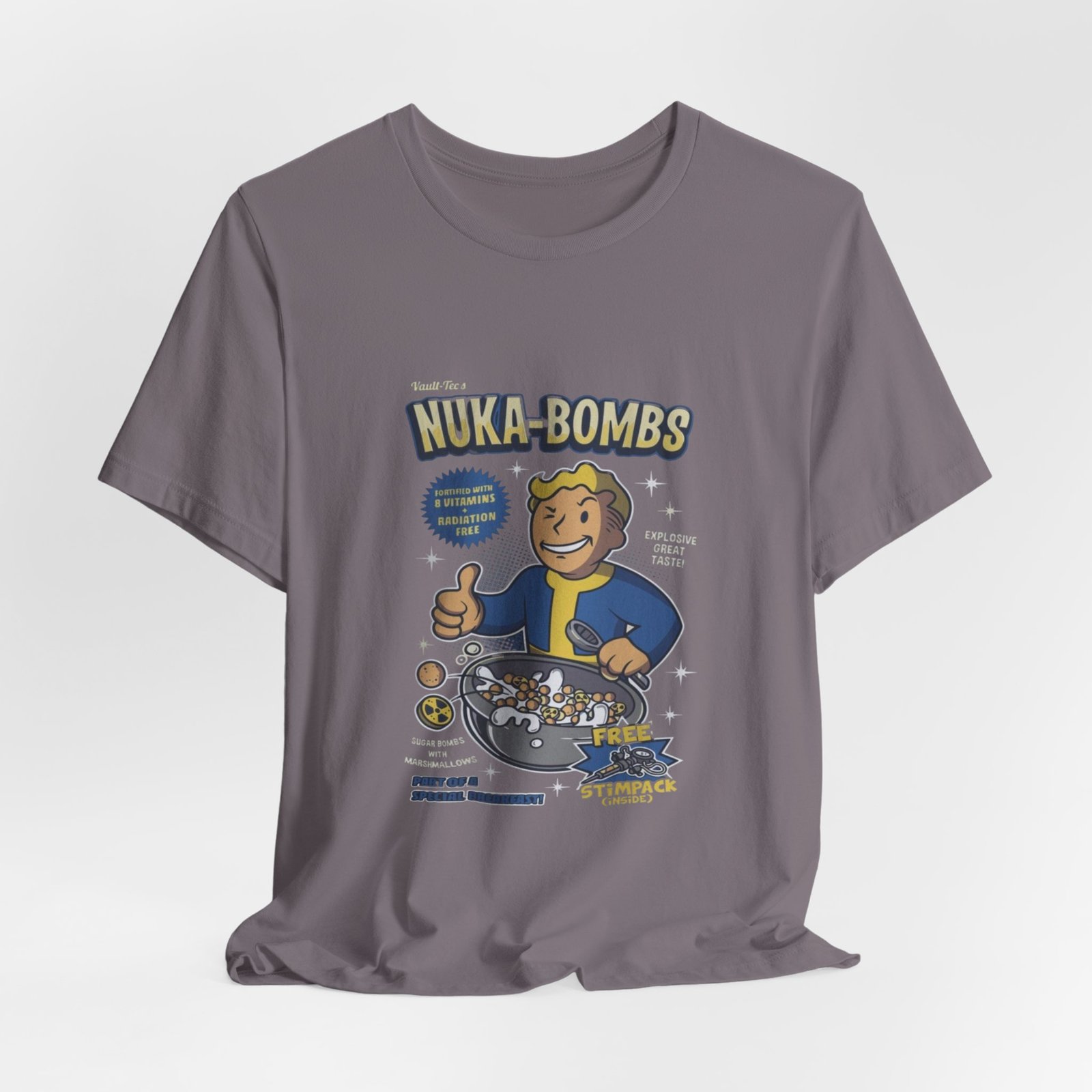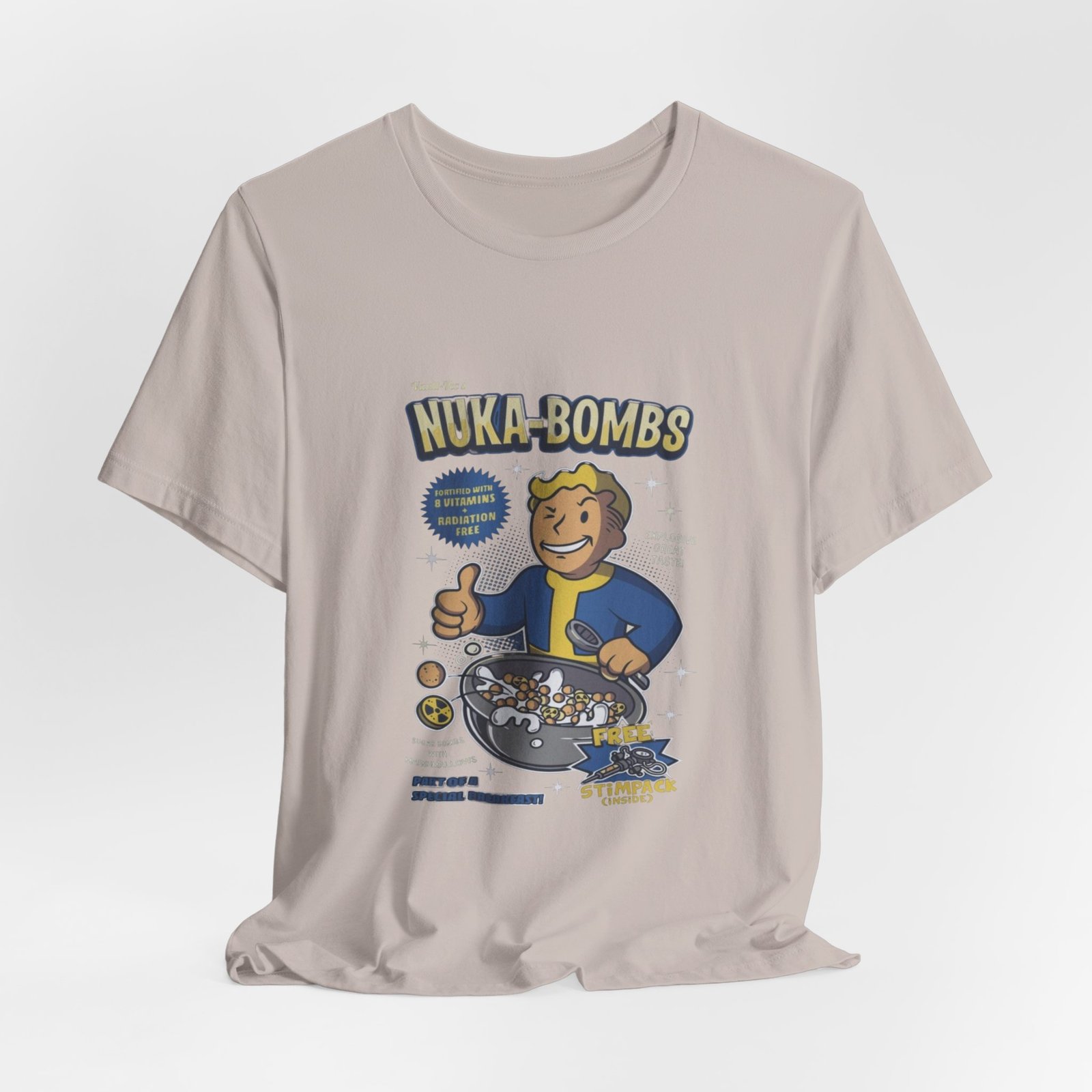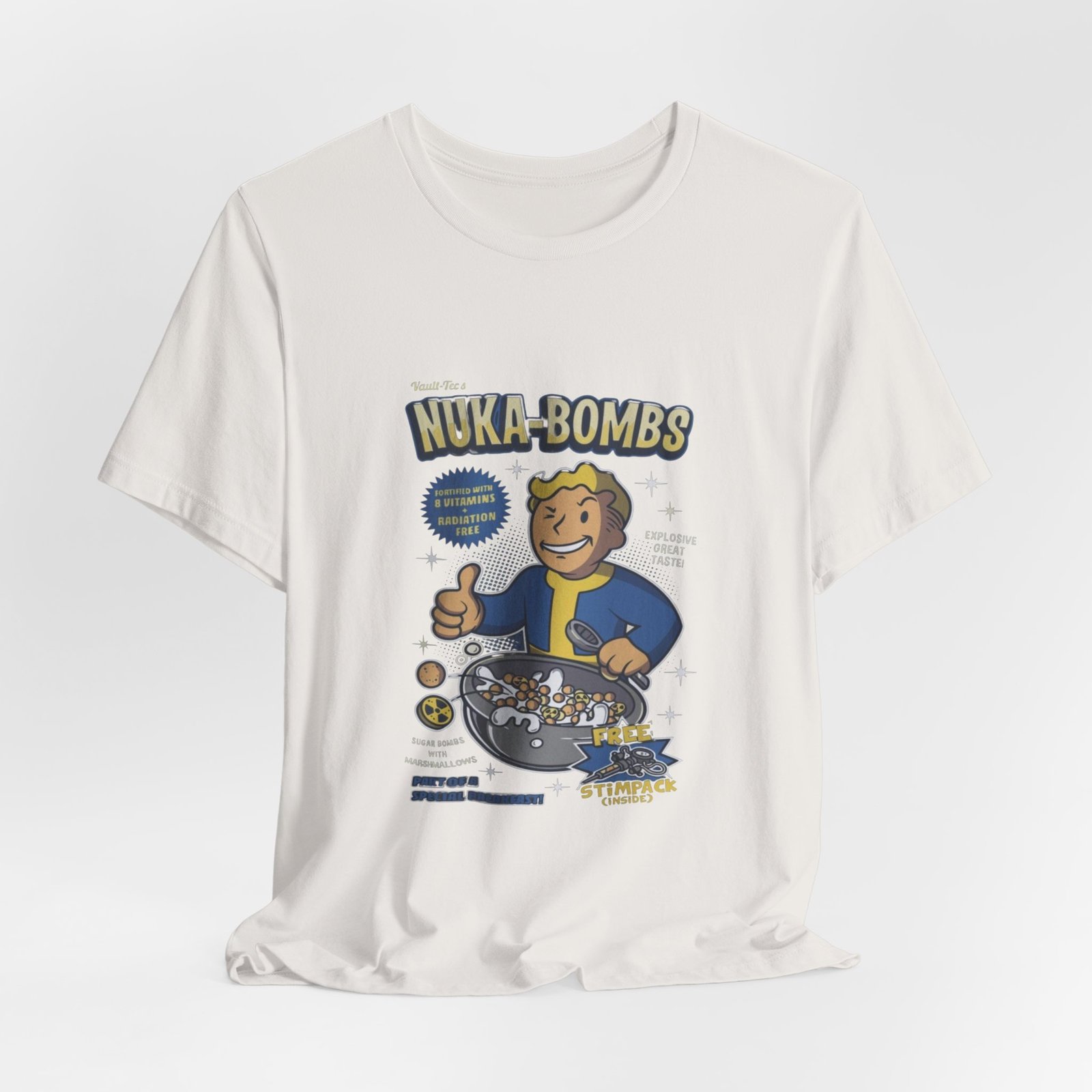 This lightweight jersey tee wears like a favorite from day one — soft, breathable, and built to move. The front print channels retro gaming kitsch with a cheerful mascot offering a mischievous thumbs-up over a playful product graphic. Subtle distress tones in the ink sit nicely against muted shirt colors for a lived-in, vintage vibe. Tailored with side seams, a ribbed crew collar, and shoulder tape for structure, it keeps its shape through repeated wear and washings. The tear-away label and Airlume combed cotton make it comfortable against the skin. Wear it around the house, to a gaming night, or layered under a jacket for casual weekends.