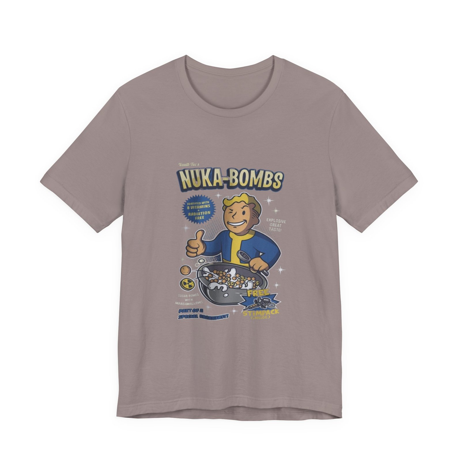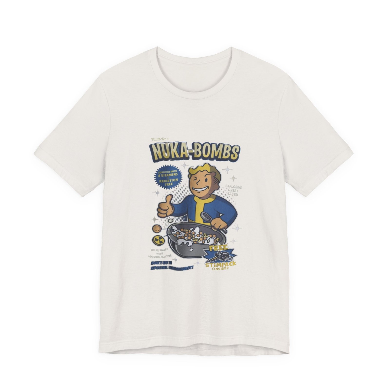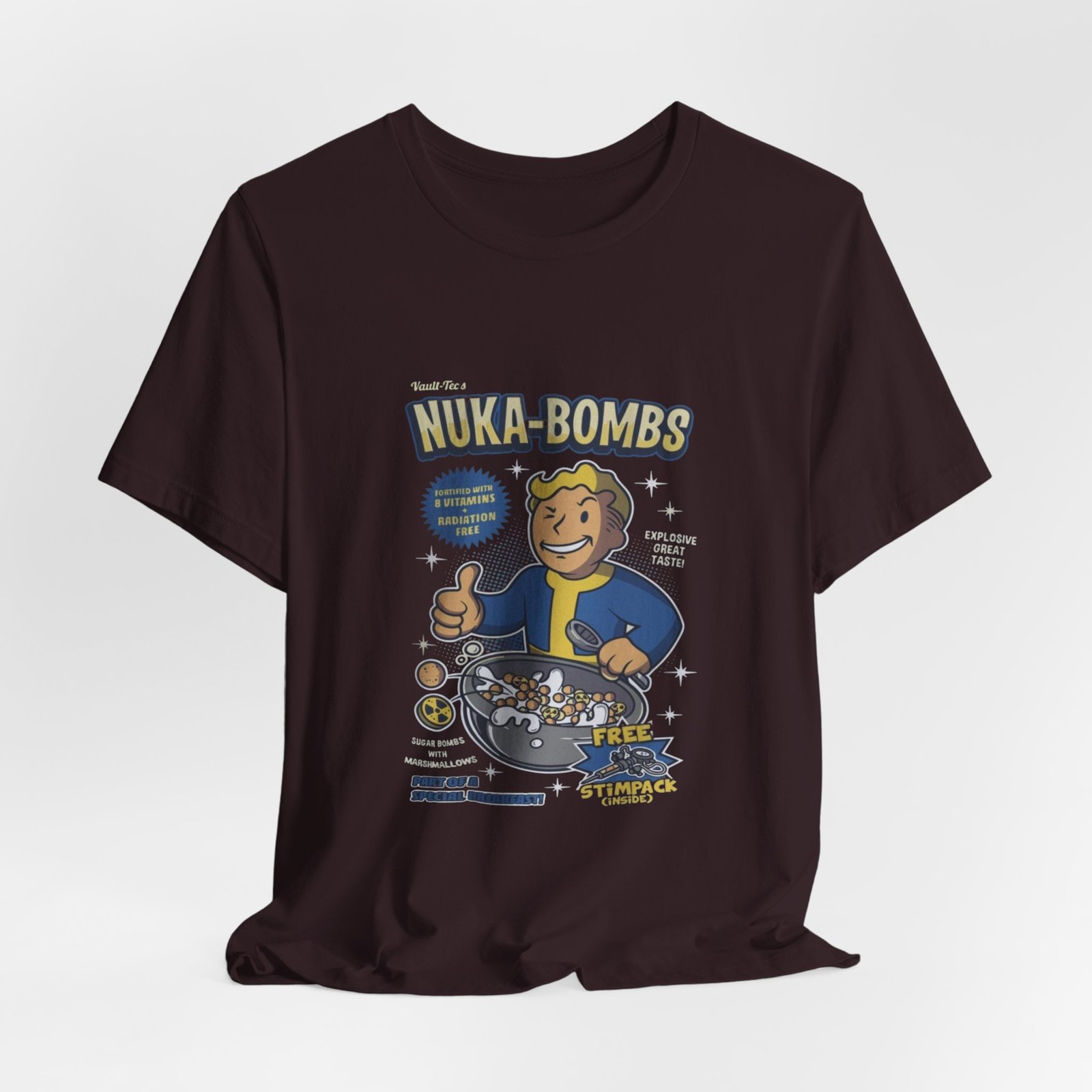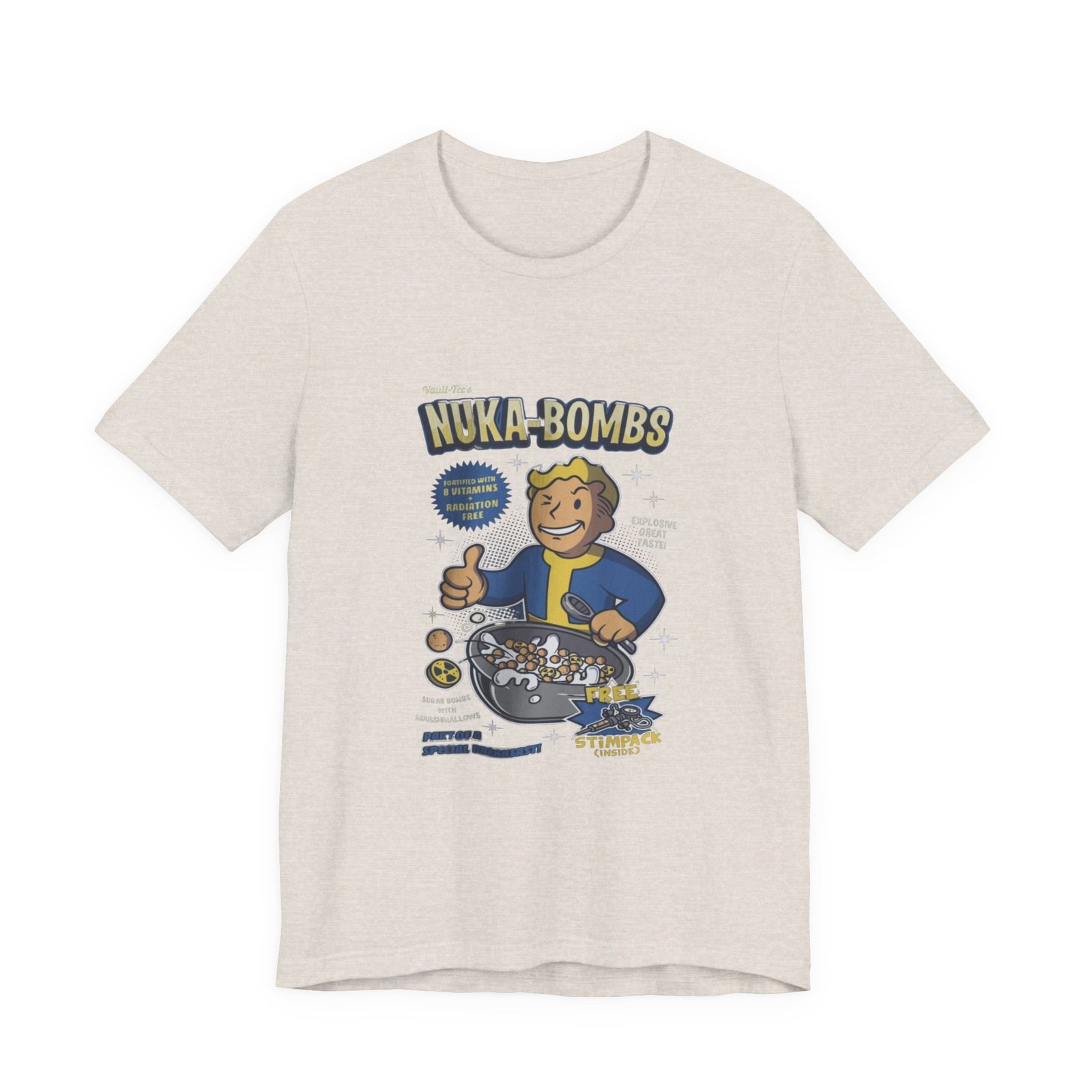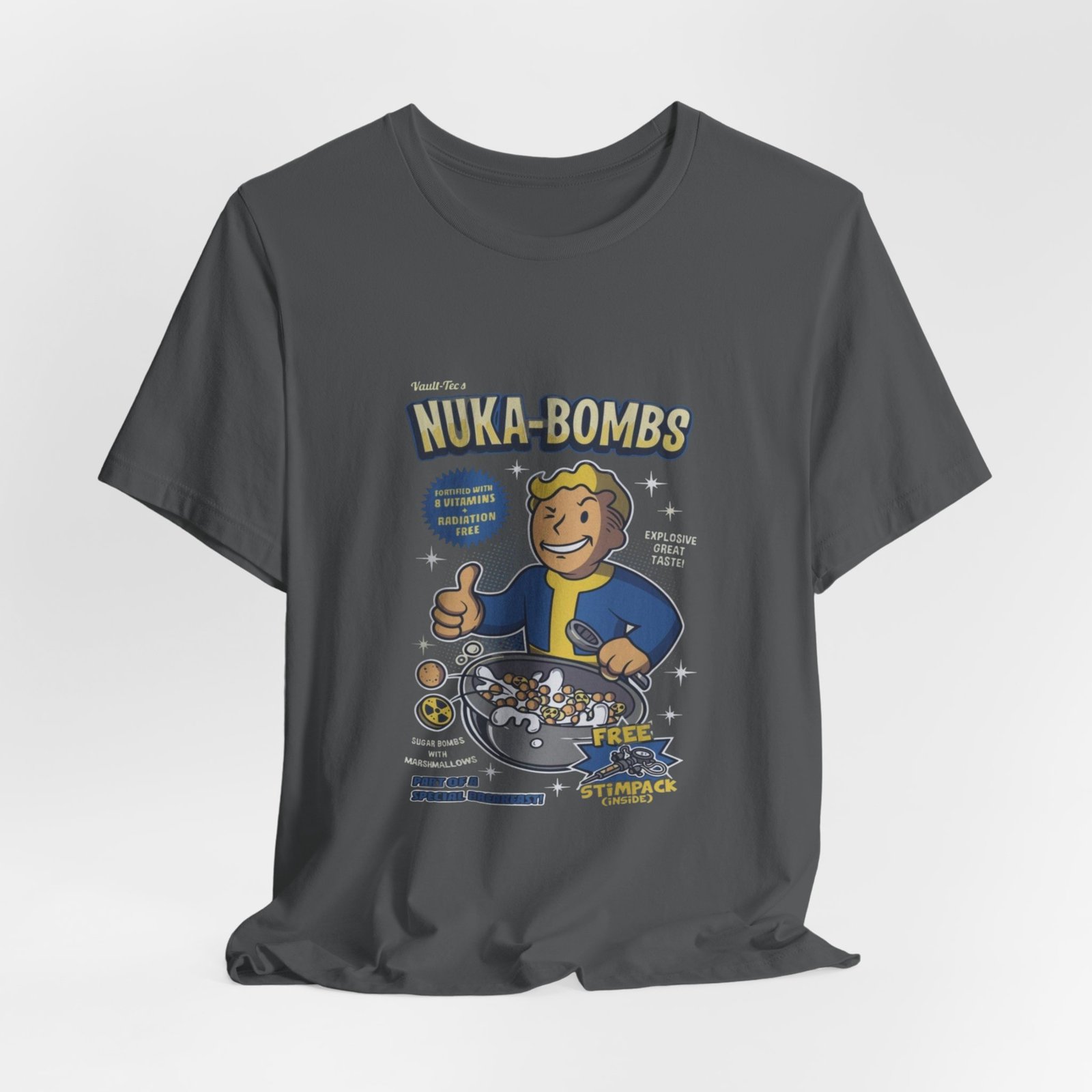 This lightweight jersey tee wears like a favorite from day one — soft, breathable, and built to move. The front print channels retro gaming kitsch with a cheerful mascot offering a mischievous thumbs-up over a playful product graphic. Subtle distress tones in the ink sit nicely against muted shirt colors for a lived-in, vintage vibe. Tailored with side seams, a ribbed crew collar, and shoulder tape for structure, it keeps its shape through repeated wear and washings. The tear-away label and Airlume combed cotton make it comfortable against the skin. Wear it around the house, to a gaming night, or layered under a jacket for casual weekends.