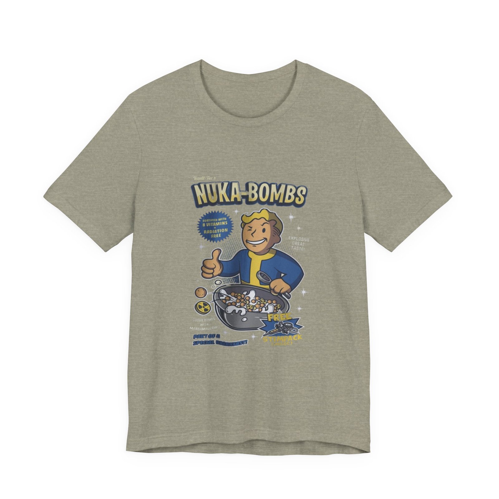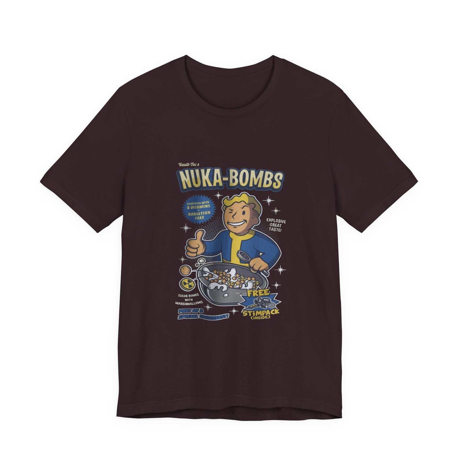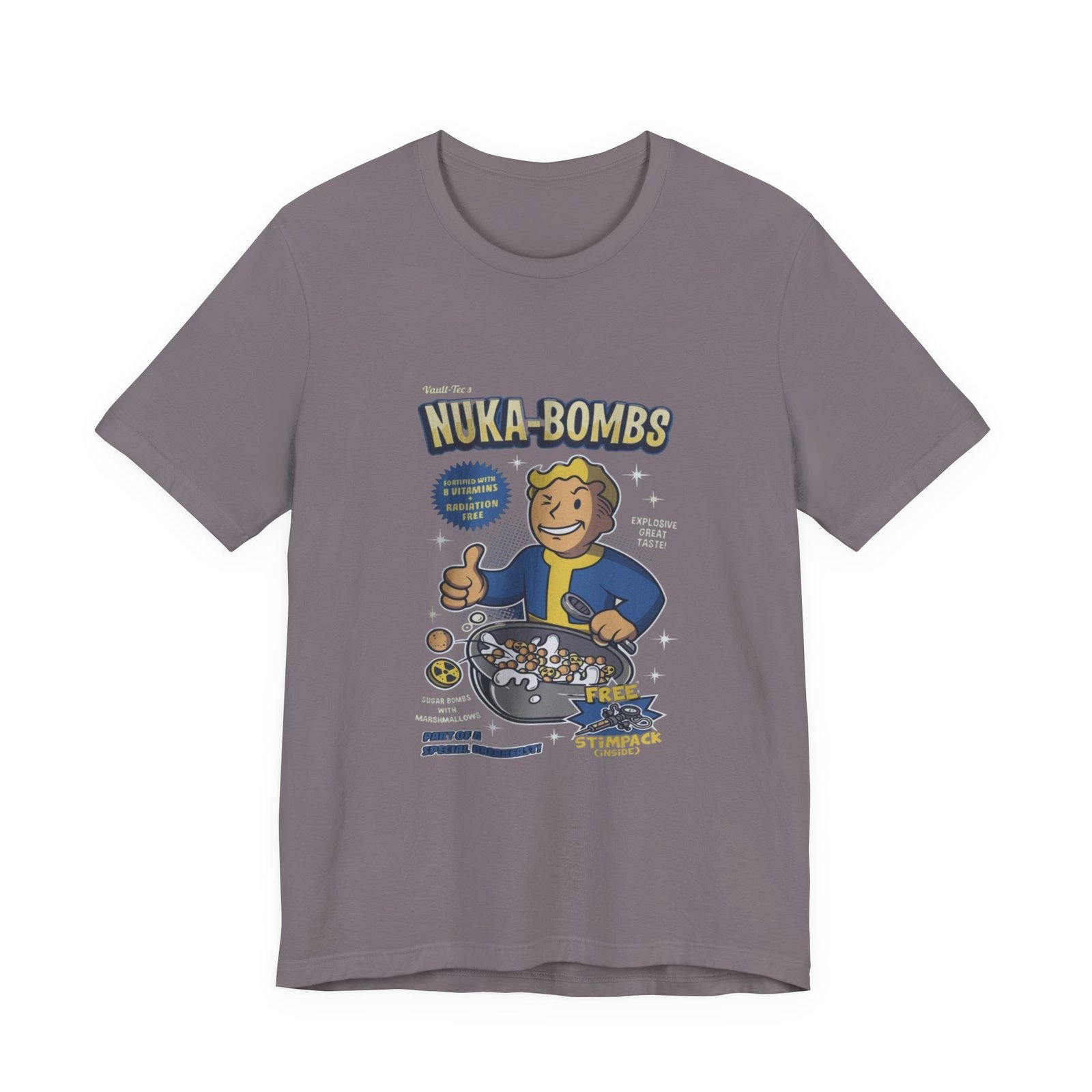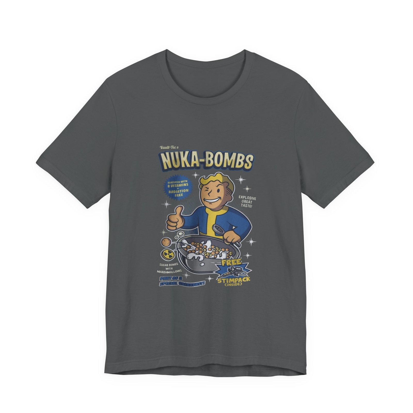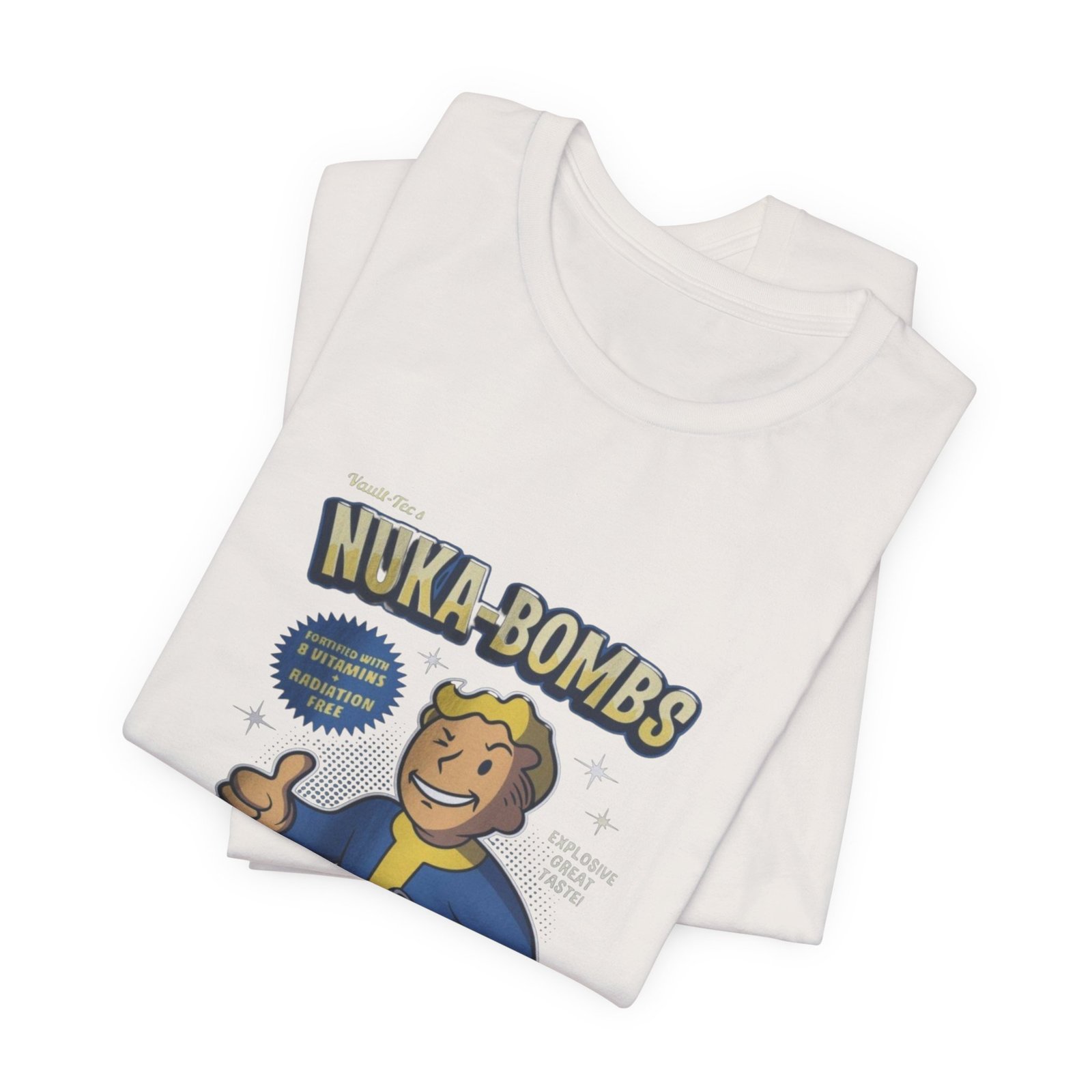 This lightweight jersey tee wears like a favorite from day one — soft, breathable, and built to move. The front print channels retro gaming kitsch with a cheerful mascot offering a mischievous thumbs-up over a playful product graphic. Subtle distress tones in the ink sit nicely against muted shirt colors for a lived-in, vintage vibe. Tailored with side seams, a ribbed crew collar, and shoulder tape for structure, it keeps its shape through repeated wear and washings. The tear-away label and Airlume combed cotton make it comfortable against the skin. Wear it around the house, to a gaming night, or layered under a jacket for casual weekends.