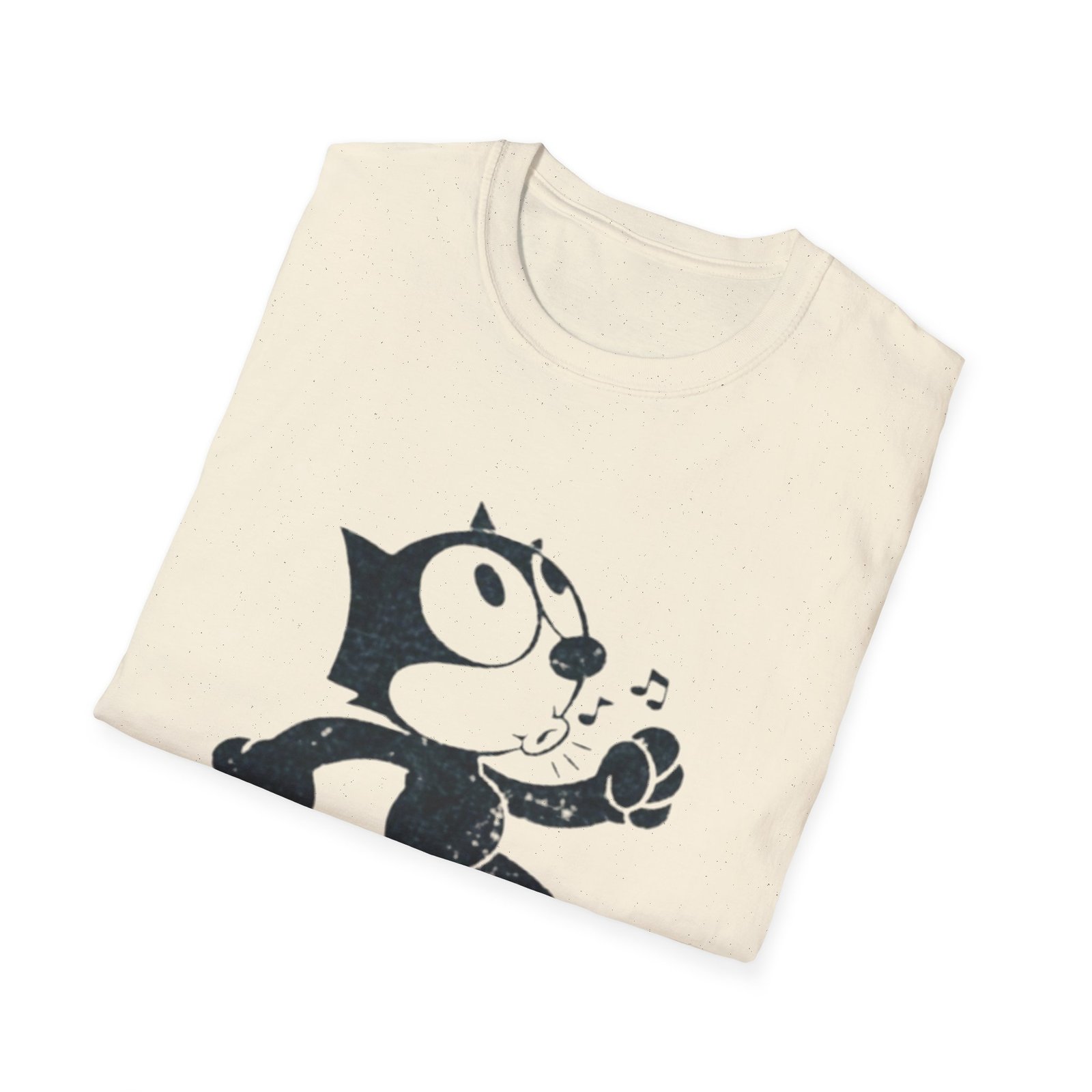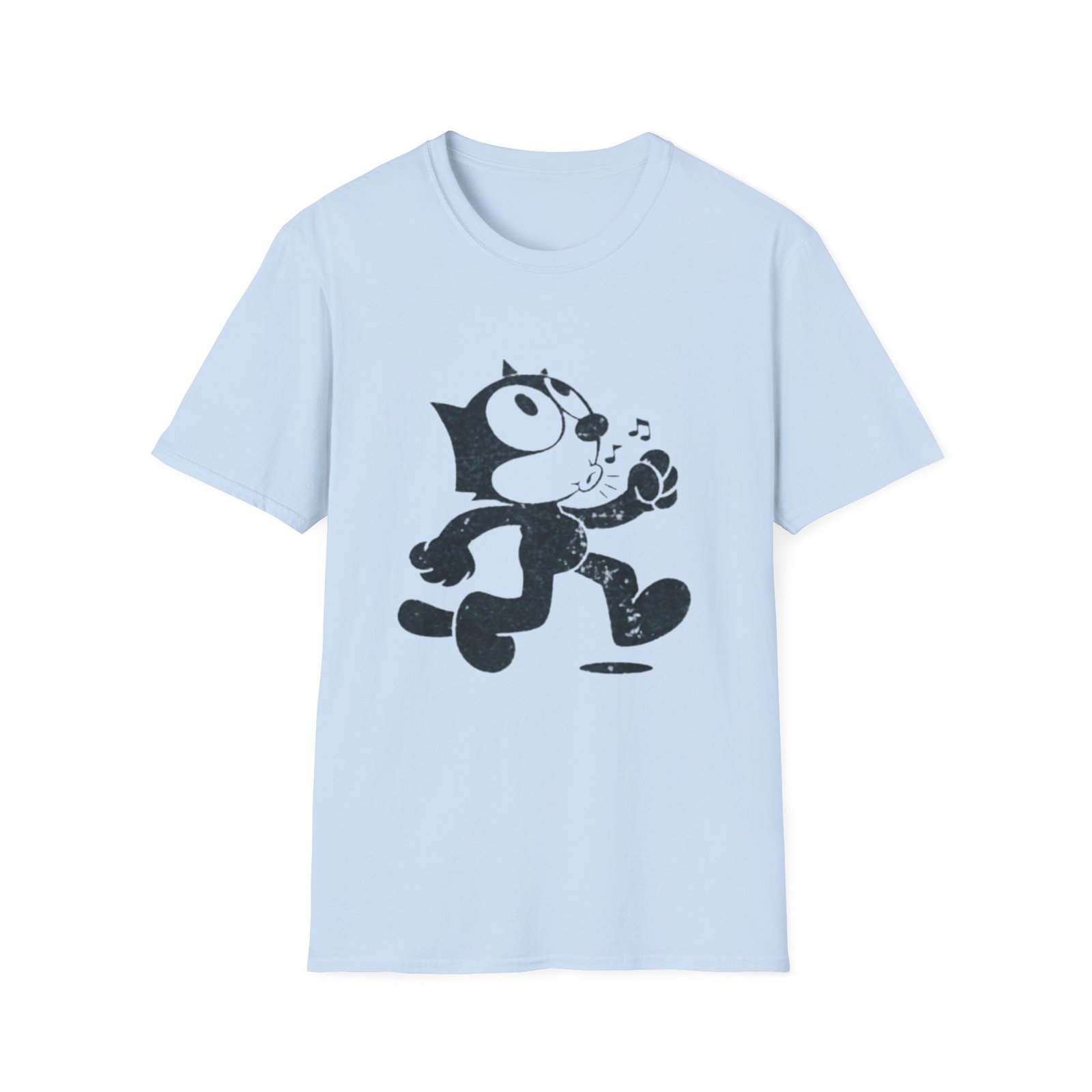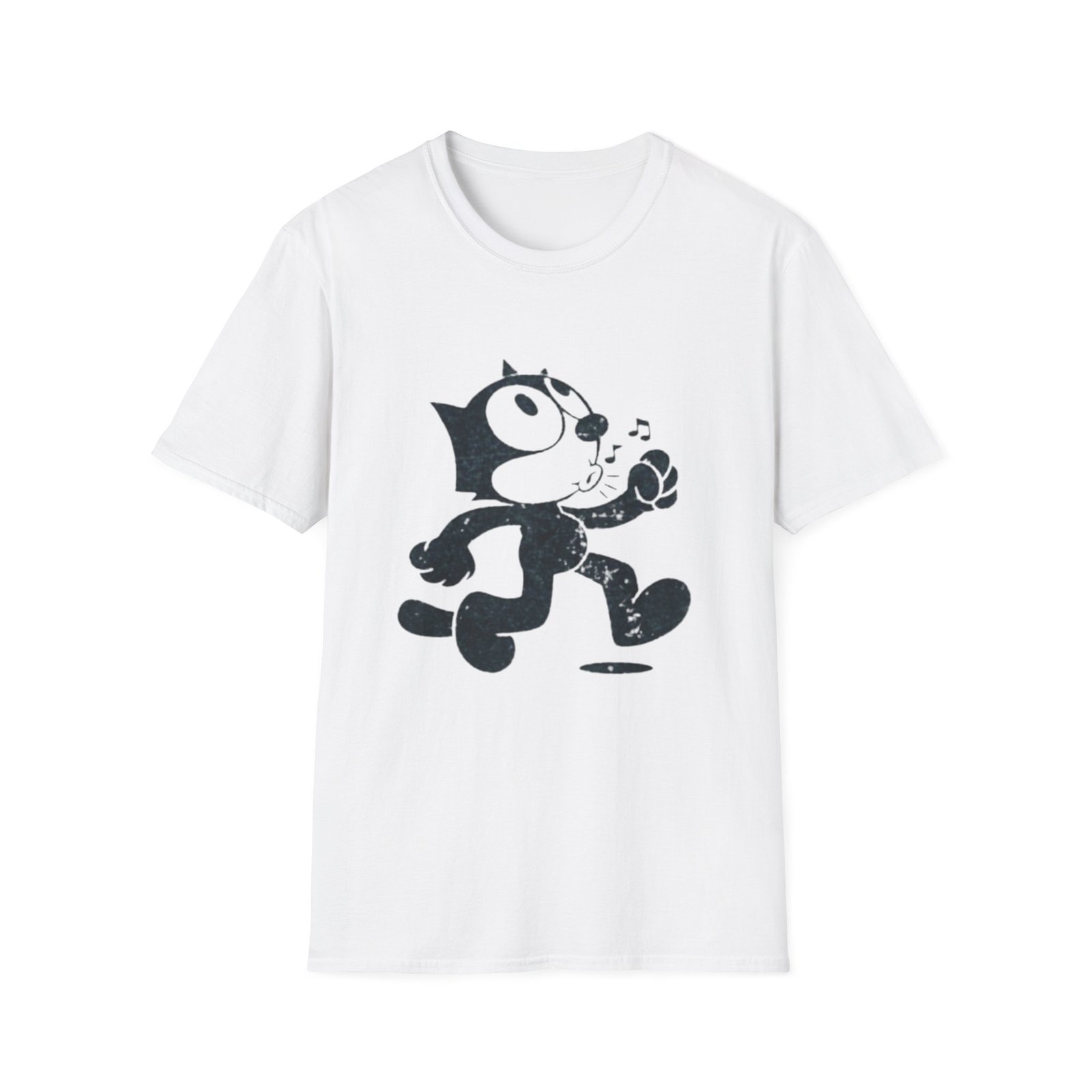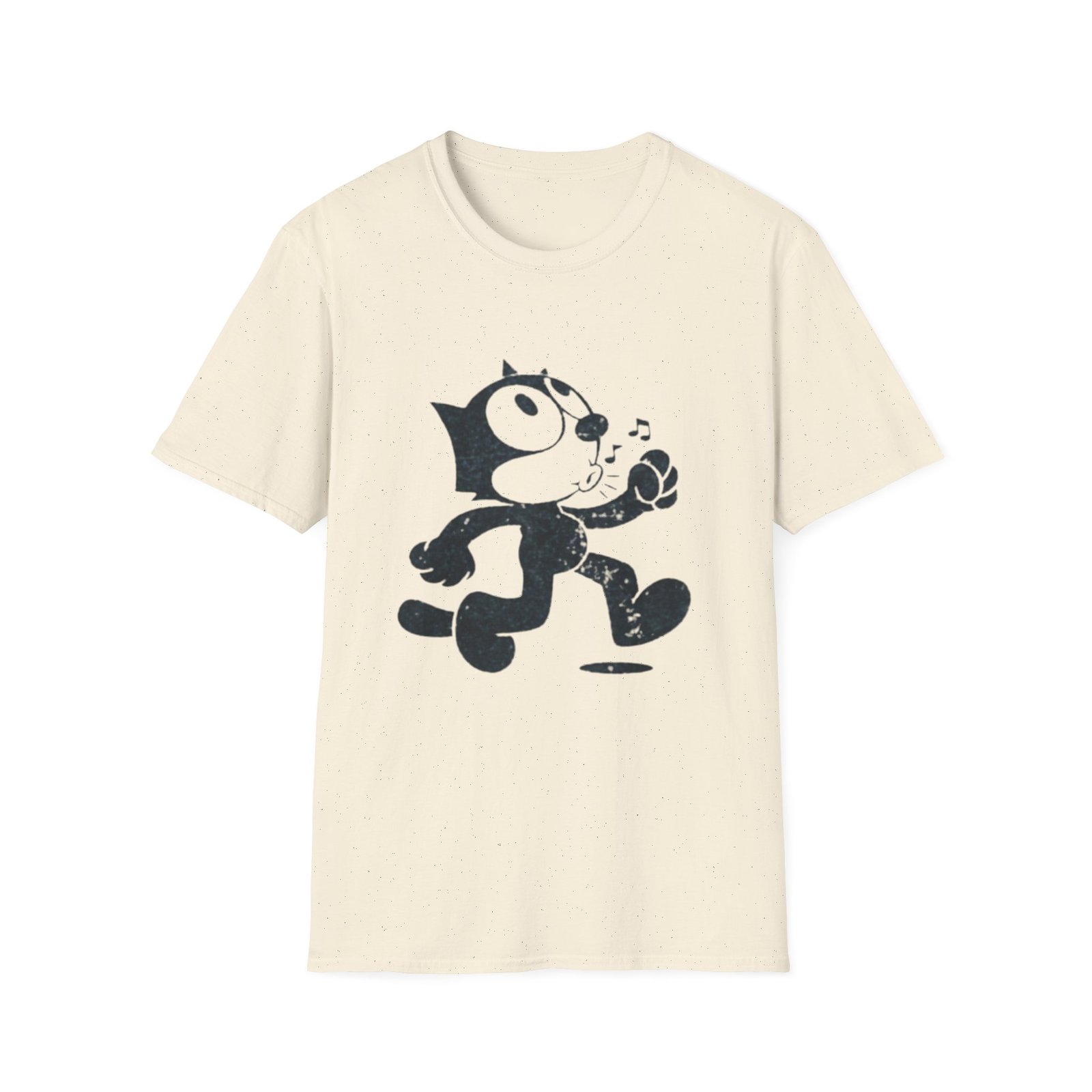 This lightweight cotton tee carries a playful, vintage cartoon at its center — a mischievous, retro-style cat mid-stride, whistling like it owns the block. The worn, slightly distressed print gives the design an authentic, lived-in feel that pairs perfectly with faded jeans, sketchbooks full of inked ideas, or an afternoon coffee at the corner café. It’s a quiet statement for people who love analogue charm, hand-drawn lines, and a touch of nostalgia in everyday wear. Wear it to unleash a grin, start a conversation, or simply channel that easygoing, creative energy wherever you go.