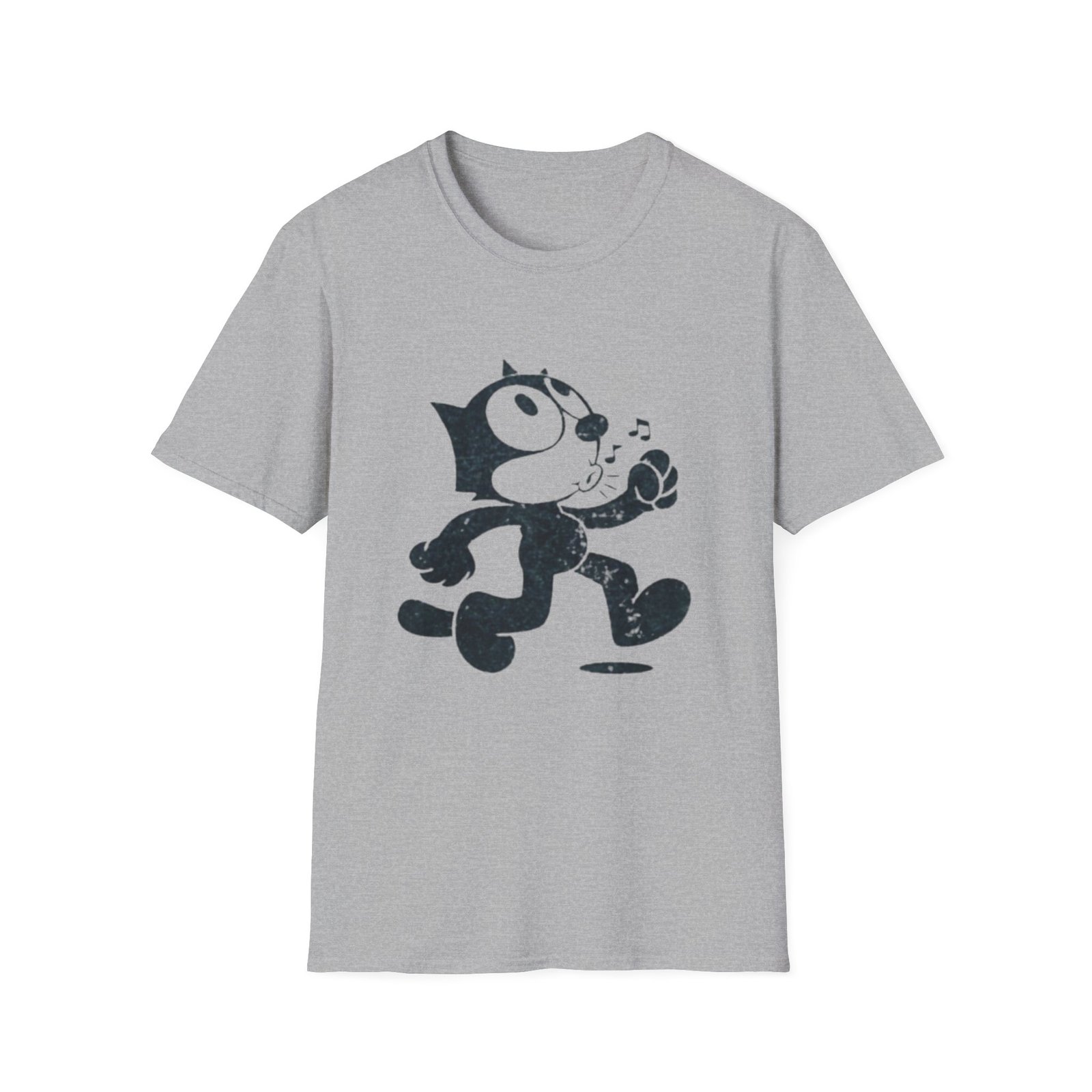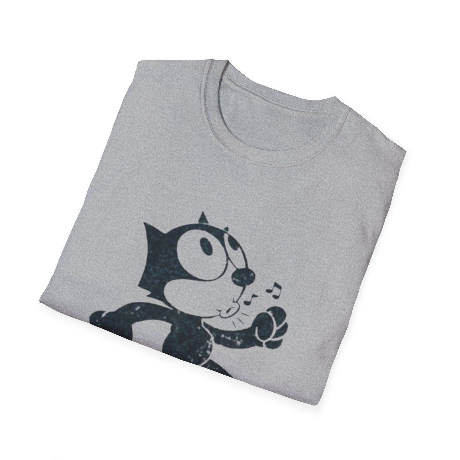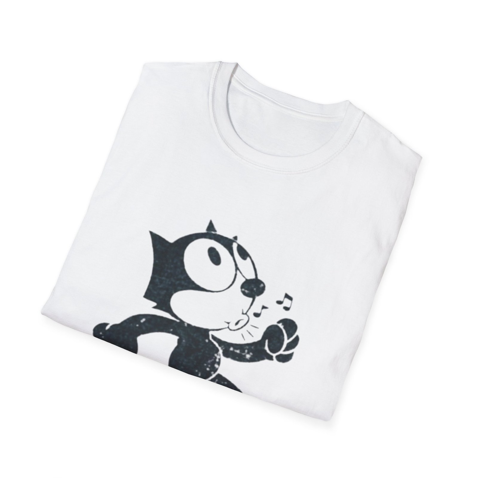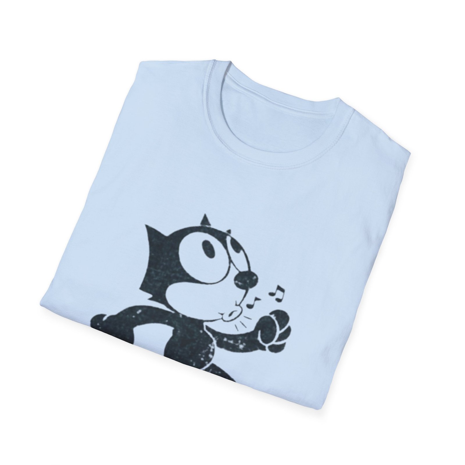 This lightweight cotton tee carries a playful, vintage cartoon at its center — a mischievous, retro-style cat mid-stride, whistling like it owns the block. The worn, slightly distressed print gives the design an authentic, lived-in feel that pairs perfectly with faded jeans, sketchbooks full of inked ideas, or an afternoon coffee at the corner café. It’s a quiet statement for people who love analogue charm, hand-drawn lines, and a touch of nostalgia in everyday wear. Wear it to unleash a grin, start a conversation, or simply channel that easygoing, creative energy wherever you go.