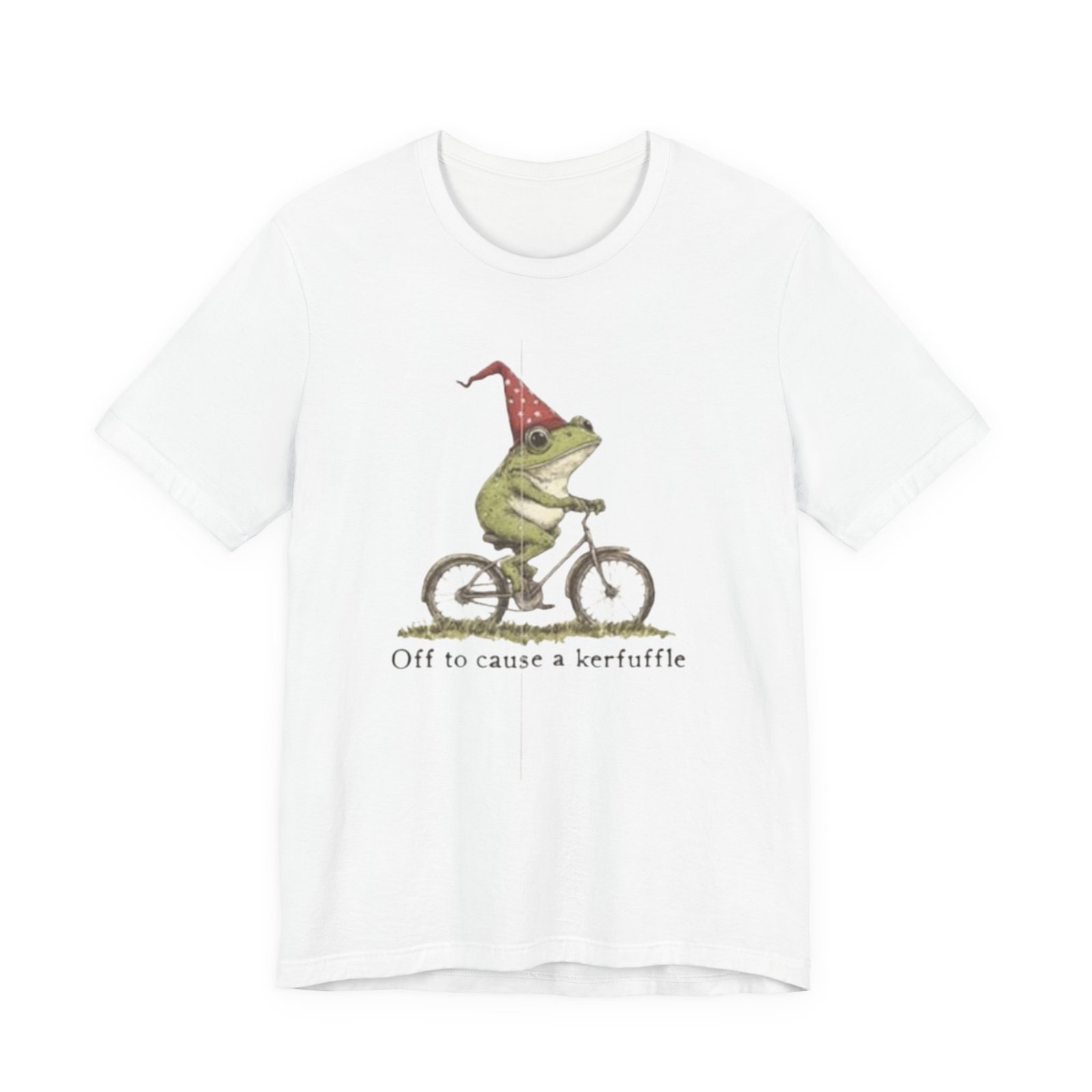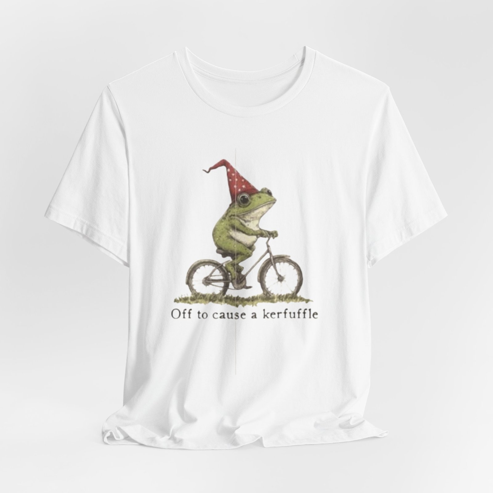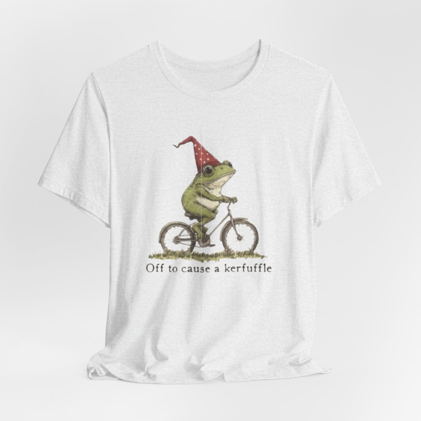 Whimsical Frog Tee – Off to Cause a Kerfuffle, Fun Summer Shirt, Gift for Nature Lovers, Casual Everyday Wear, Eco-Friendly Tee