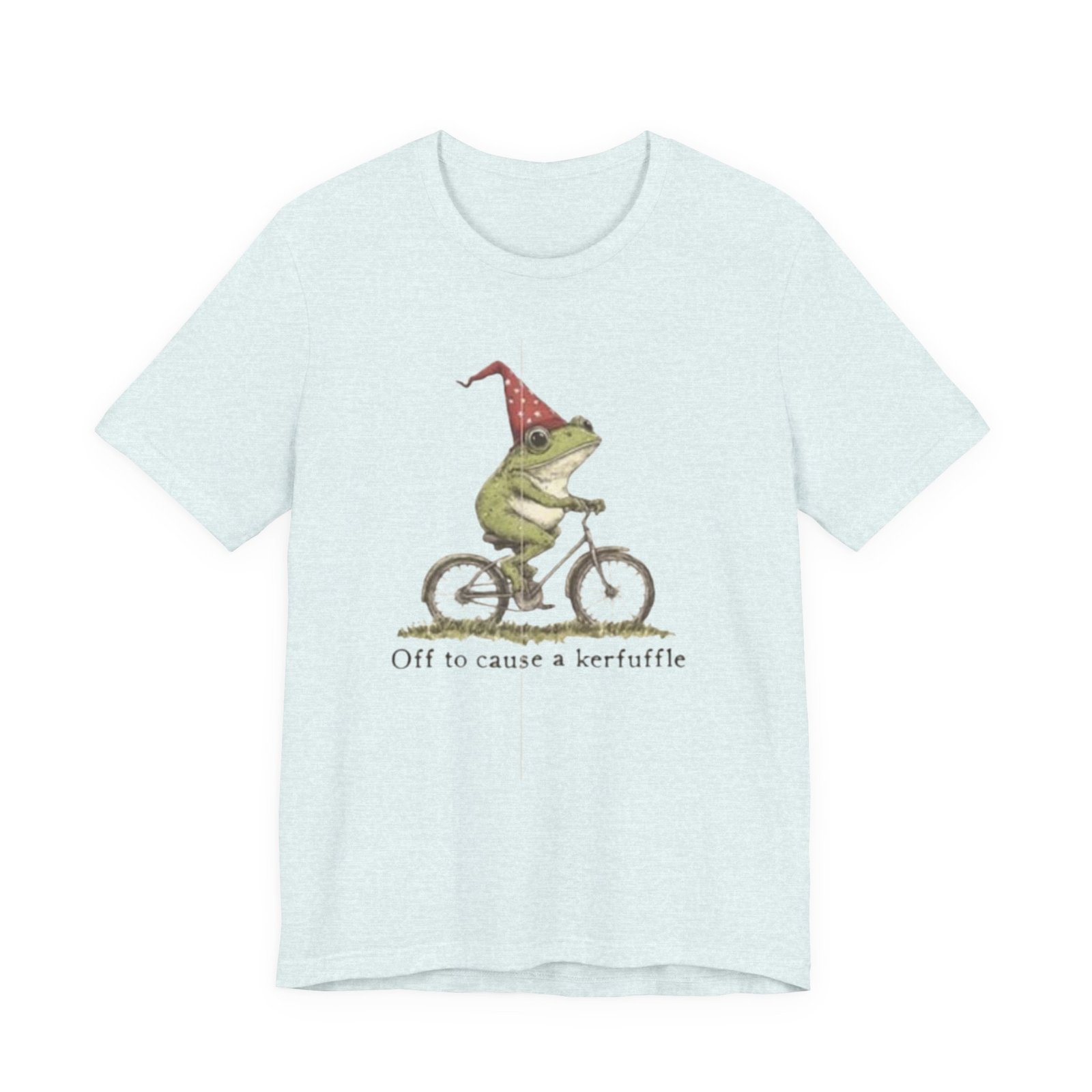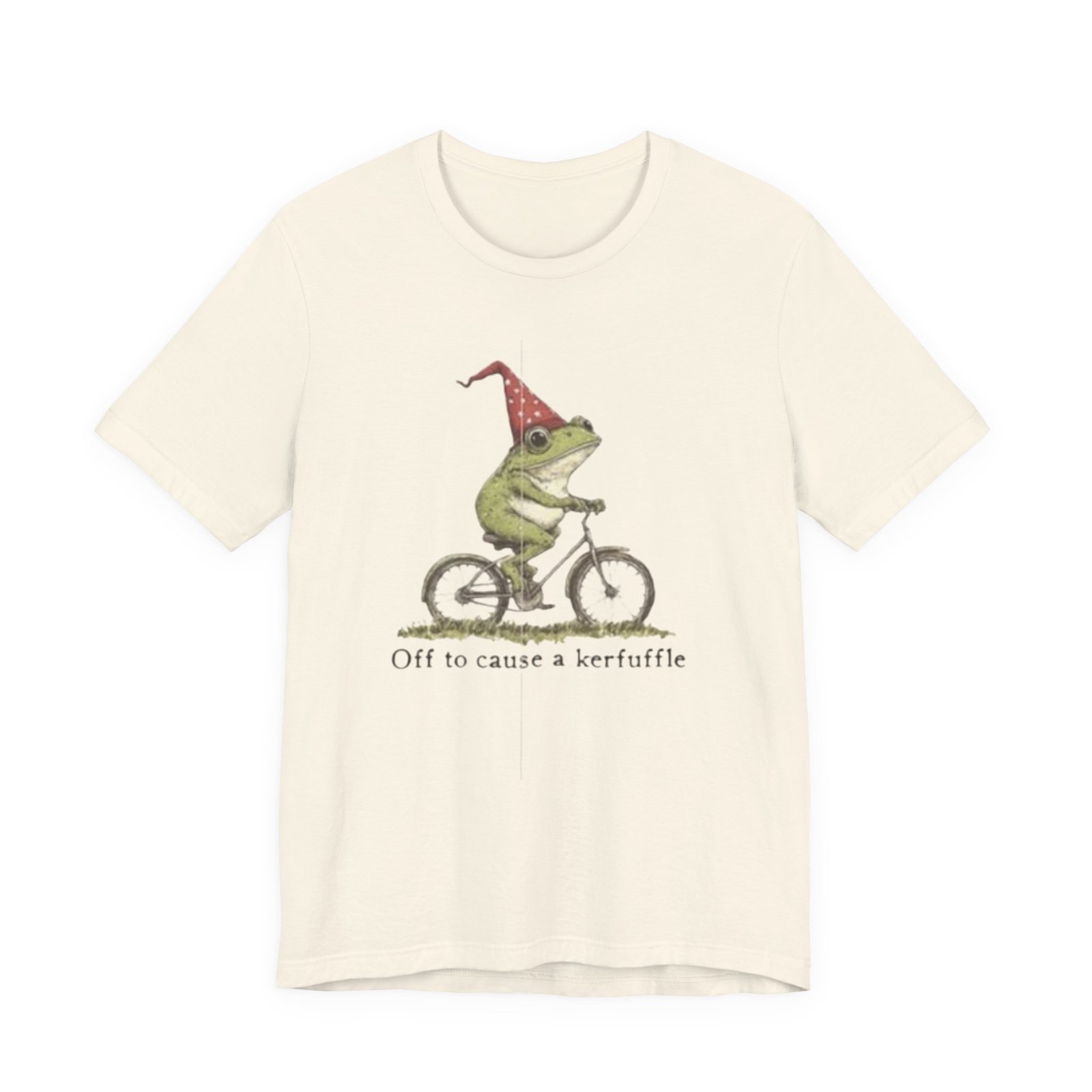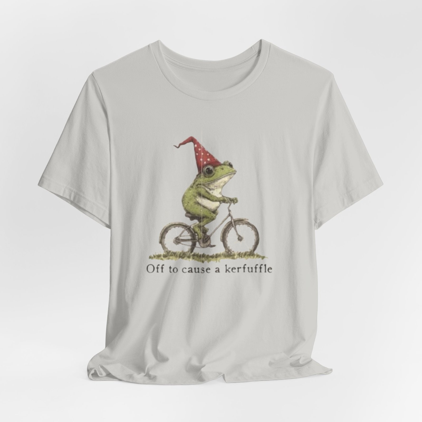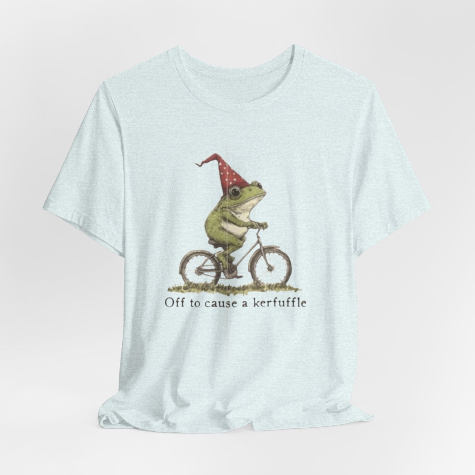 Whimsical Frog Tee – Off to Cause a Kerfuffle, Fun Summer Shirt, Gift for Nature Lovers, Casual Everyday Wear, Eco-Friendly Tee