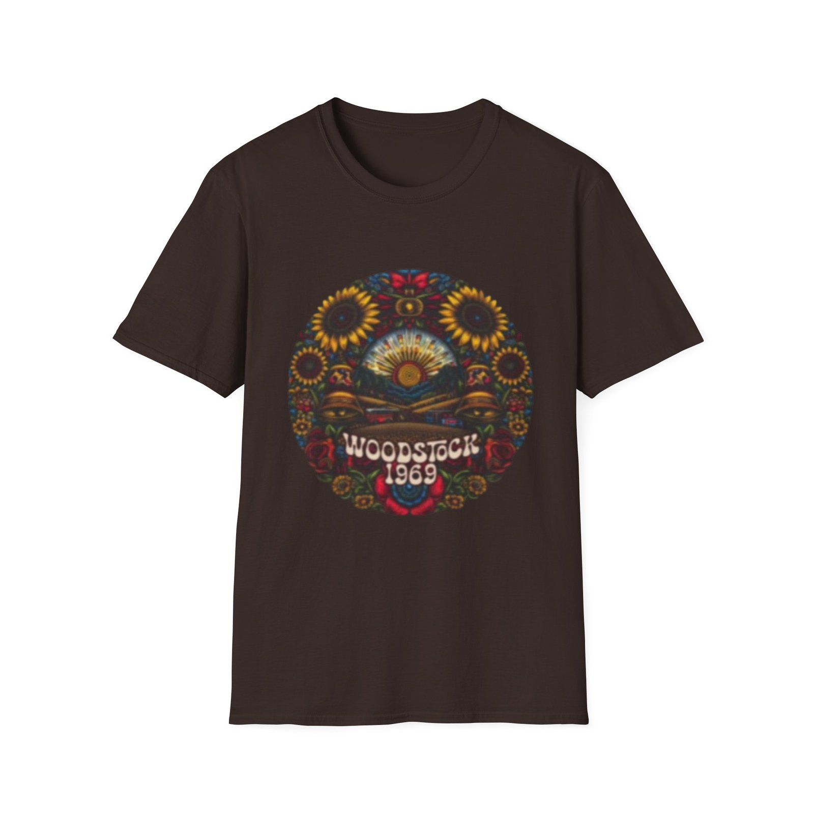 Be the first to review “Woodstock 1969 Hippie Sunflower Art T-Shirt | Retro Festival Vibes”