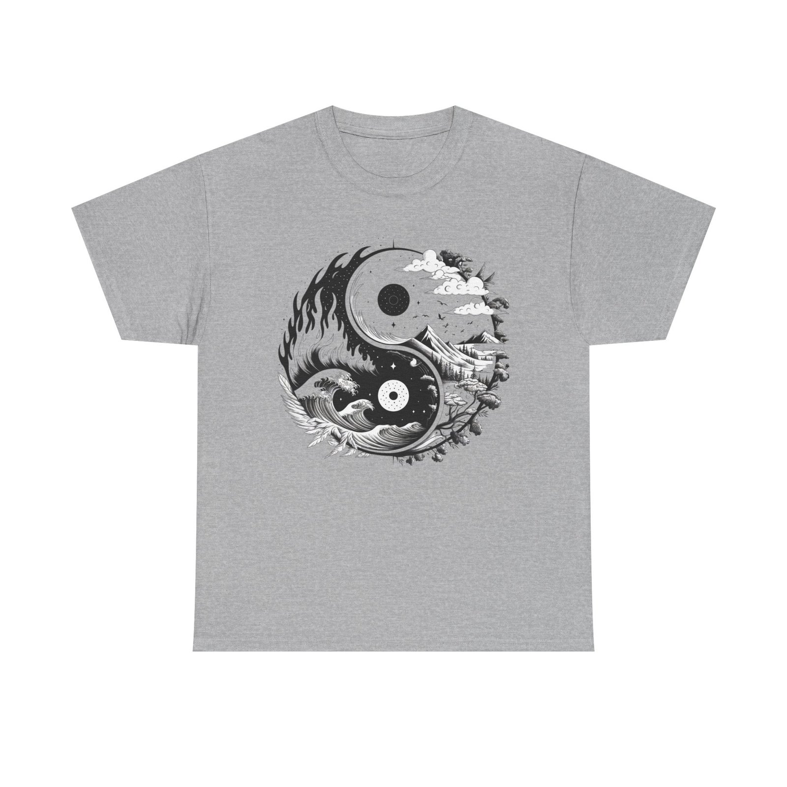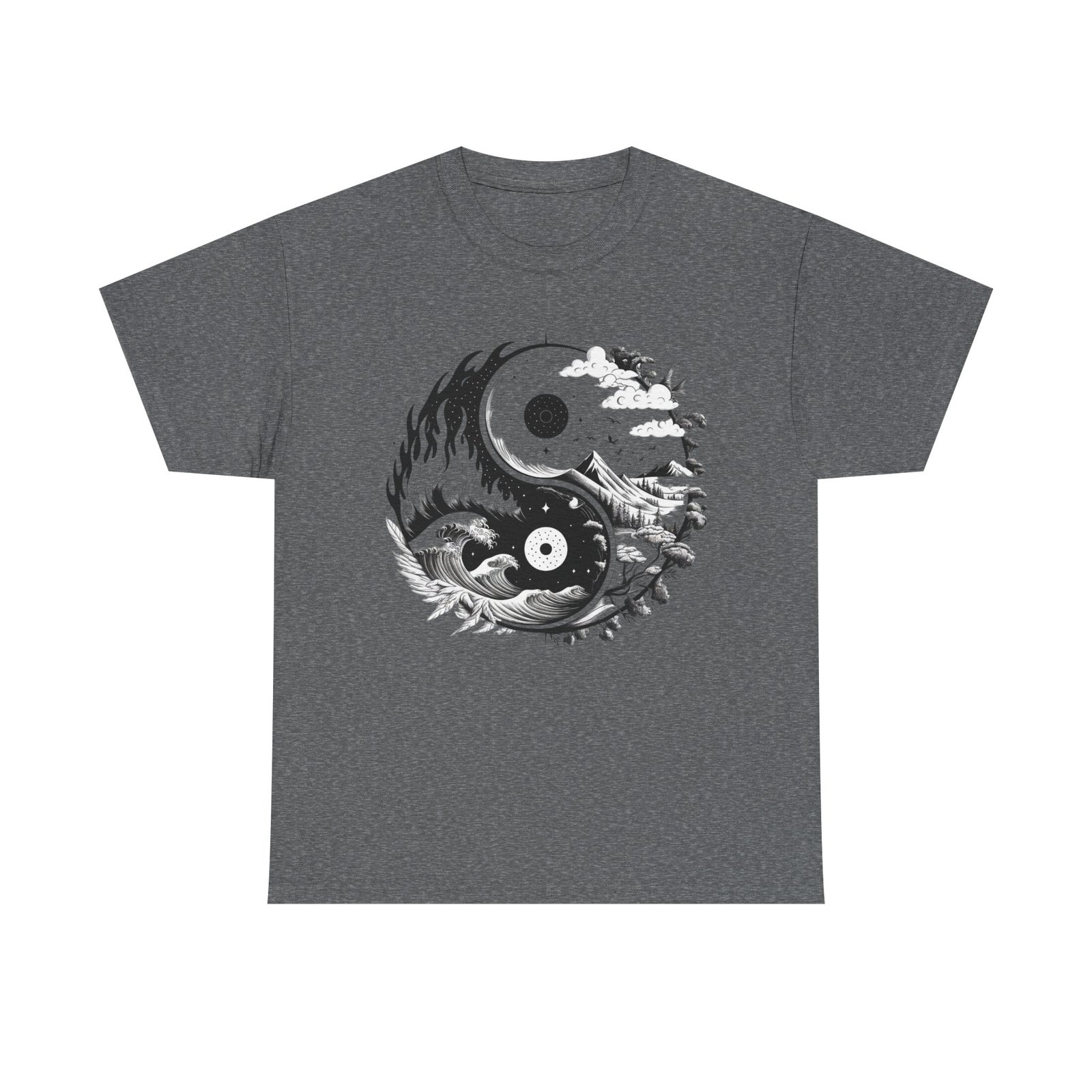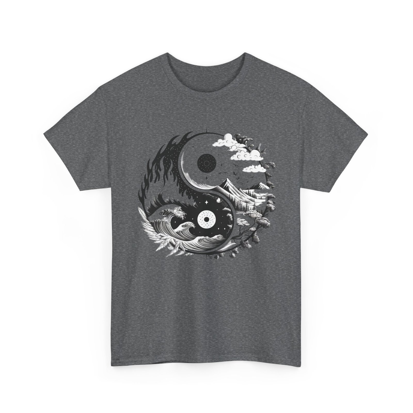 This Yin and yang tshirt is perfect for those seeking inspiration and focusing on meditation or yoga. It exudes a calming and balanced vibe, making it ideal for daily wear or as part of a mindful practice. This unisex heavy cotton tee is relevant to adults looking for comfort and style while embracing wellness activities.