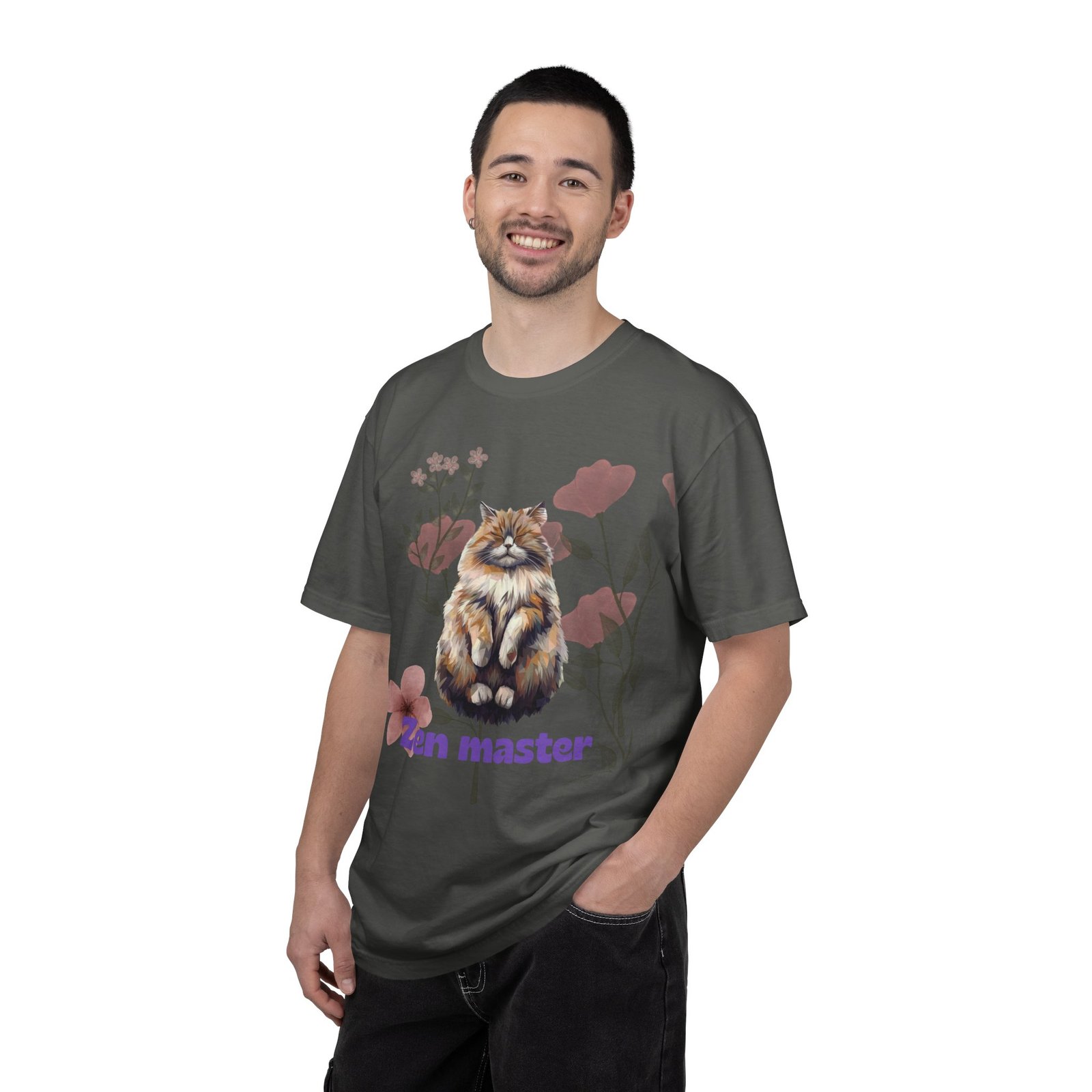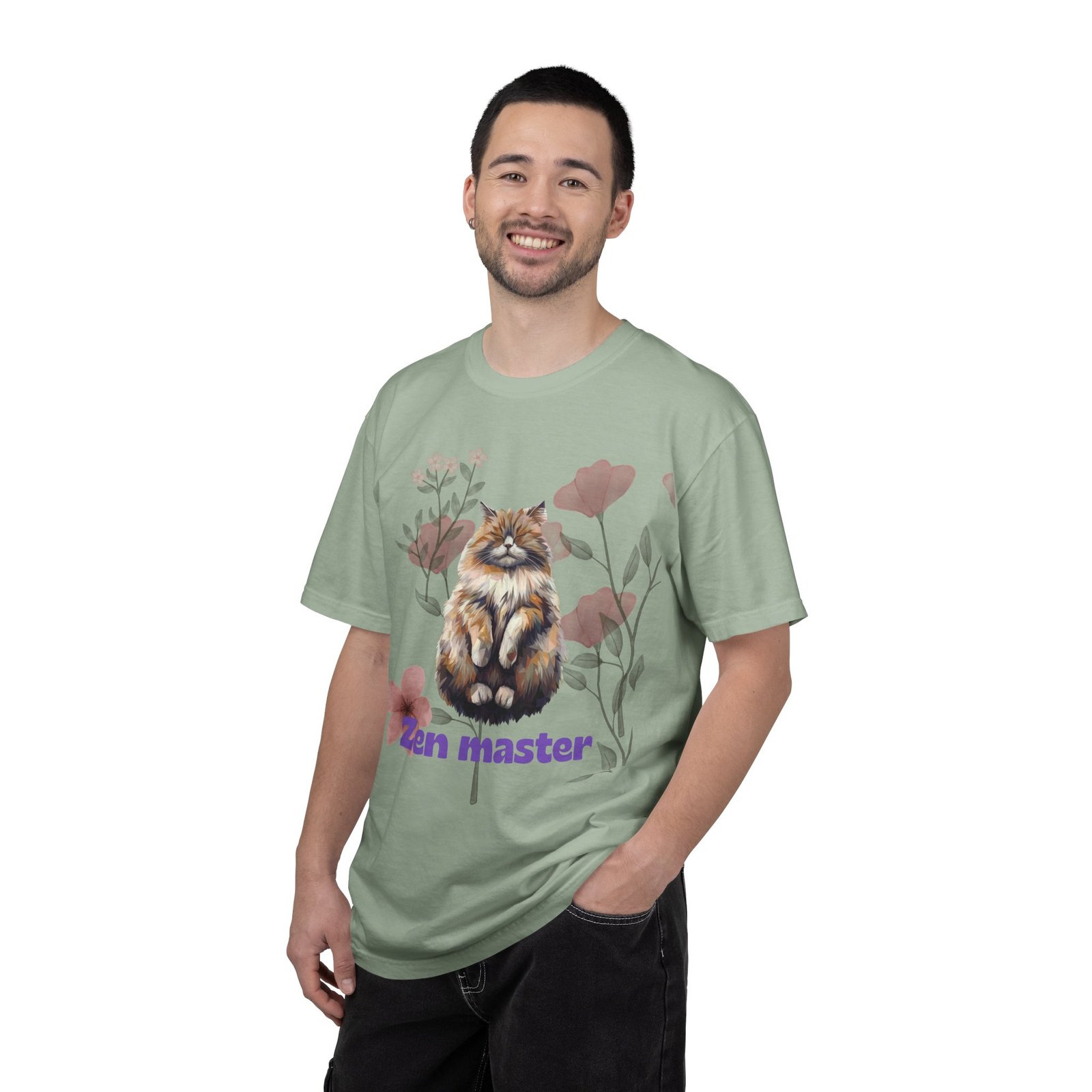 This relaxed, garment-dyed tee brings a quiet, whimsical vibe to everyday wear. A fluffy, meditative cat sits amid soft botanical blooms, the words “Zen master” grounding the art in gentle humor. The heavyweight, ring-spun cotton feels substantial yet broken-in thanks to the post-construction dyeing — colors settle into the fabric for a lived-in look. Wear it layered over leggings for slow mornings, or loose with jeans for a calm, playful statement. It’s the kind of shirt that sparks a smile during a coffee break, a walk in the park, or a cozy at-home stretch session.