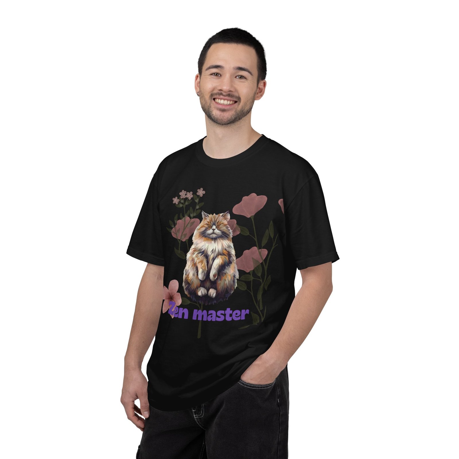 This relaxed, garment-dyed tee brings a quiet, whimsical vibe to everyday wear. A fluffy, meditative cat sits amid soft botanical blooms, the words “Zen master” grounding the art in gentle humor. The heavyweight, ring-spun cotton feels substantial yet broken-in thanks to the post-construction dyeing — colors settle into the fabric for a lived-in look. Wear it layered over leggings for slow mornings, or loose with jeans for a calm, playful statement. It’s the kind of shirt that sparks a smile during a coffee break, a walk in the park, or a cozy at-home stretch session.